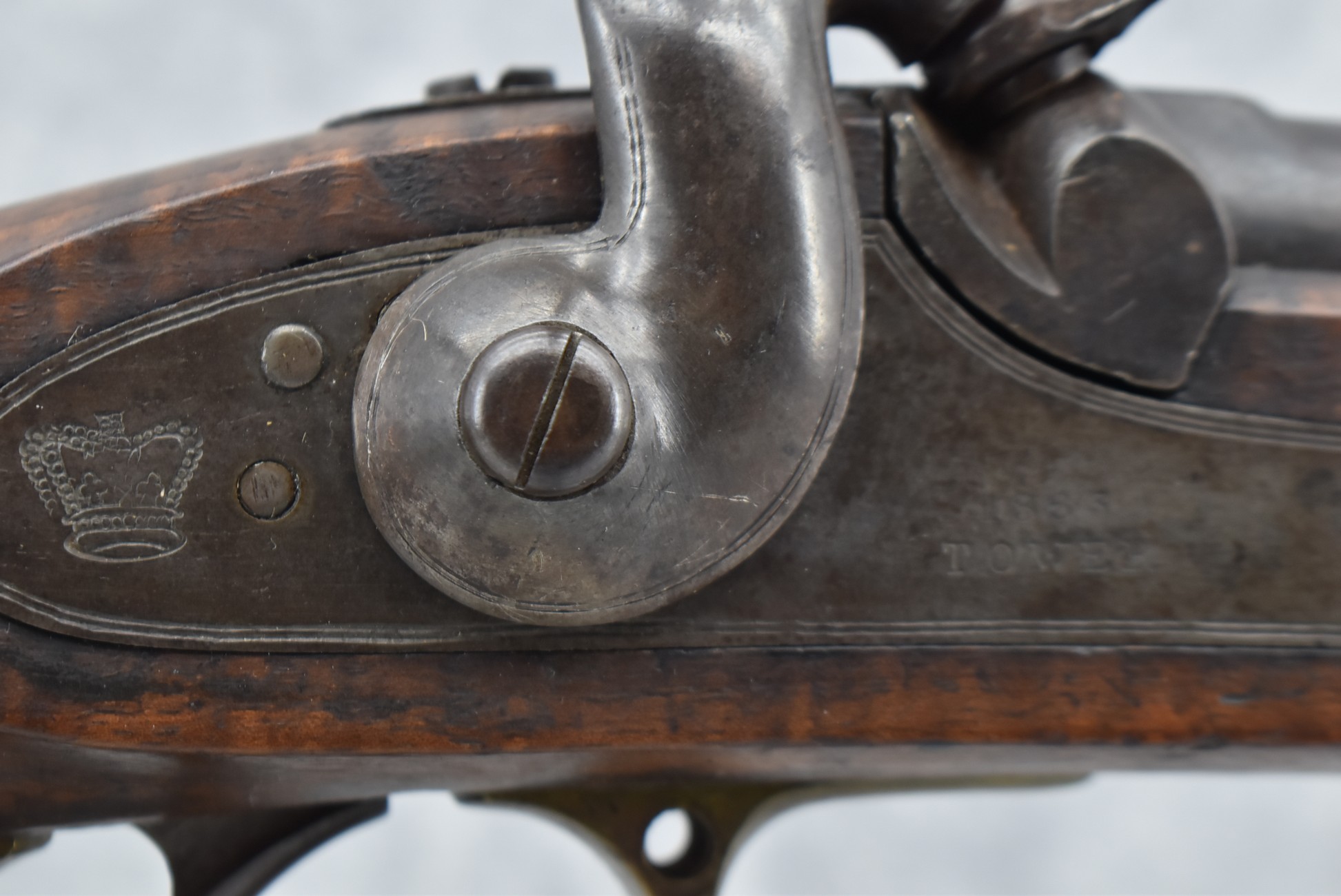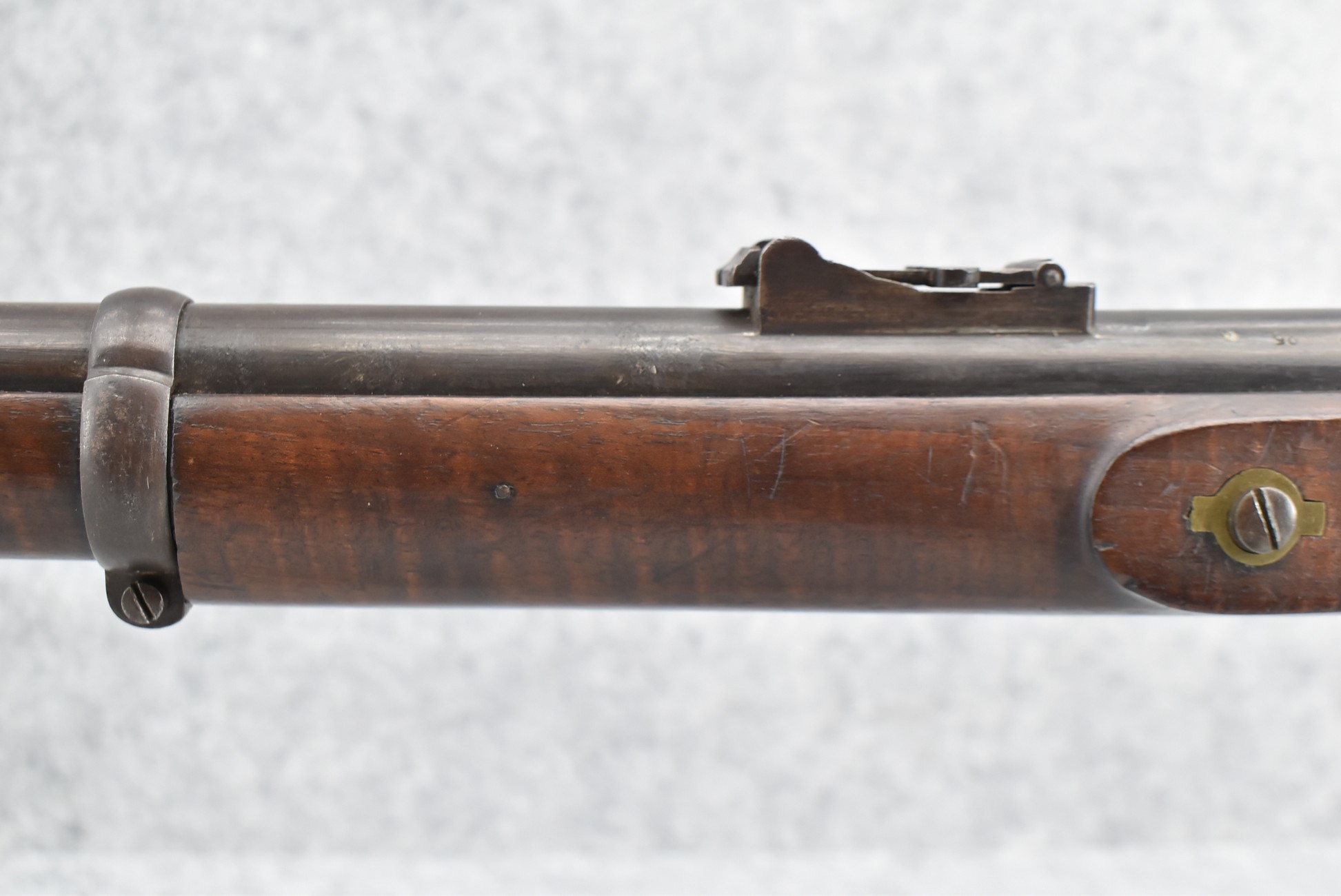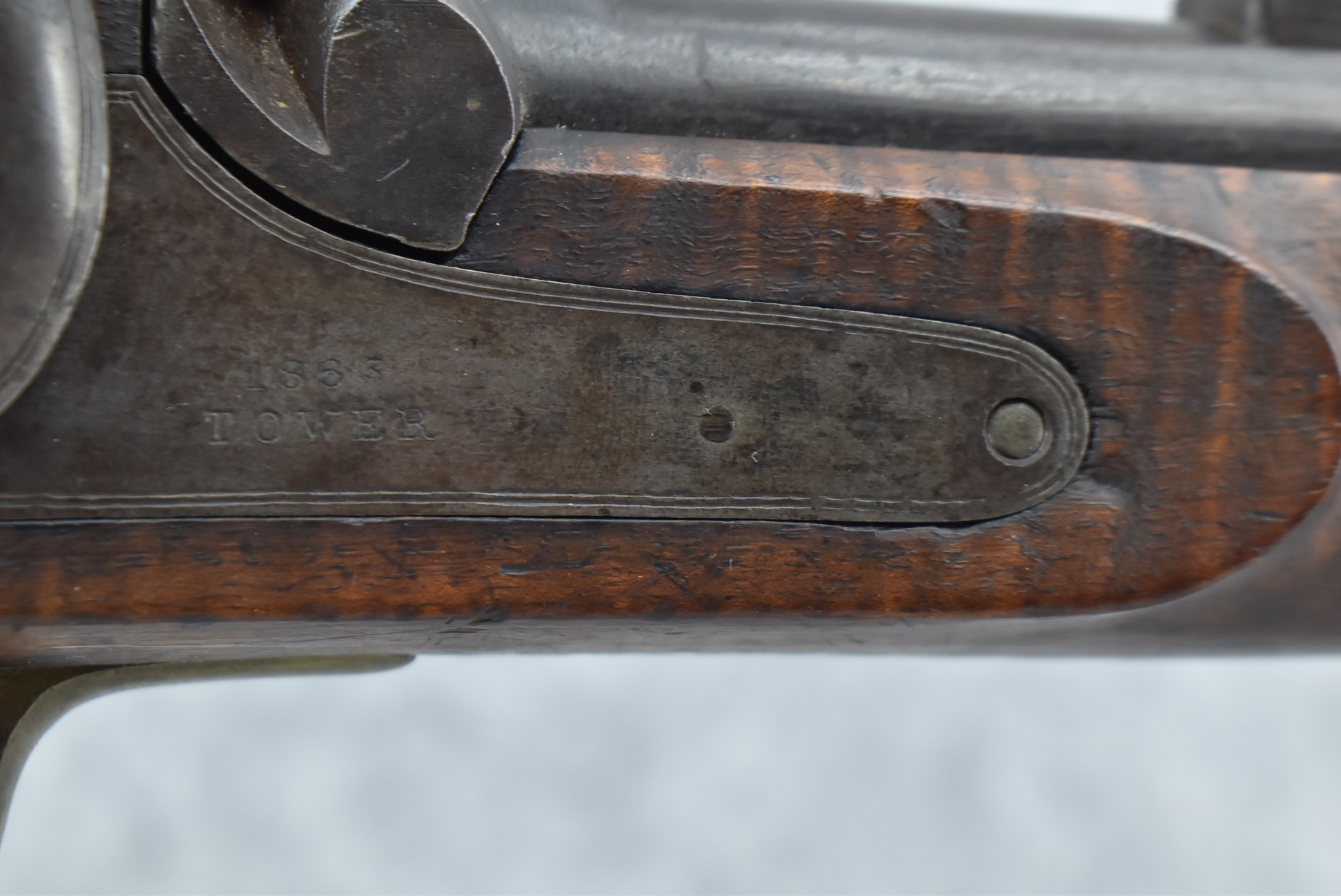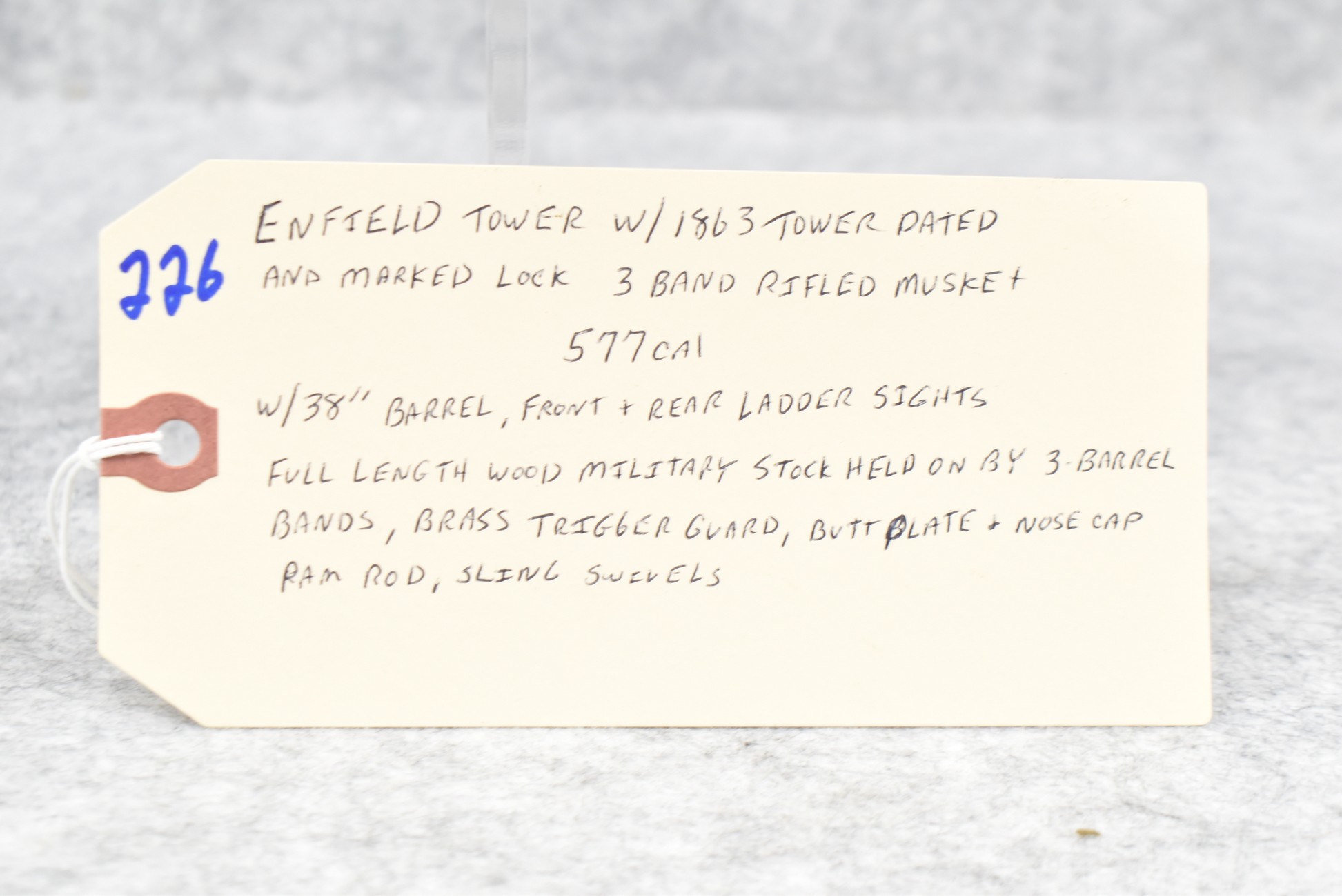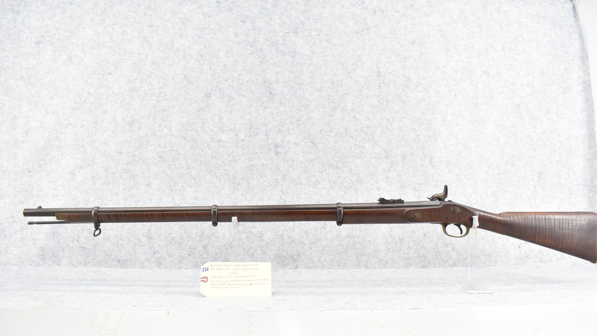 226. Enfield Tower w/1863 Tower Dated & Marked Lock, 3 Band Rifled Musket – 577 Cal. – w/38” Barrel w/Front & Rear Ladder Sights – w/Full Length Wood Military Stock Held on by 3 Barrel Bands w/Brass Trigger Guard, Butt Plate & Nose Cap – w/Sling Swivels – w/Ram Rod