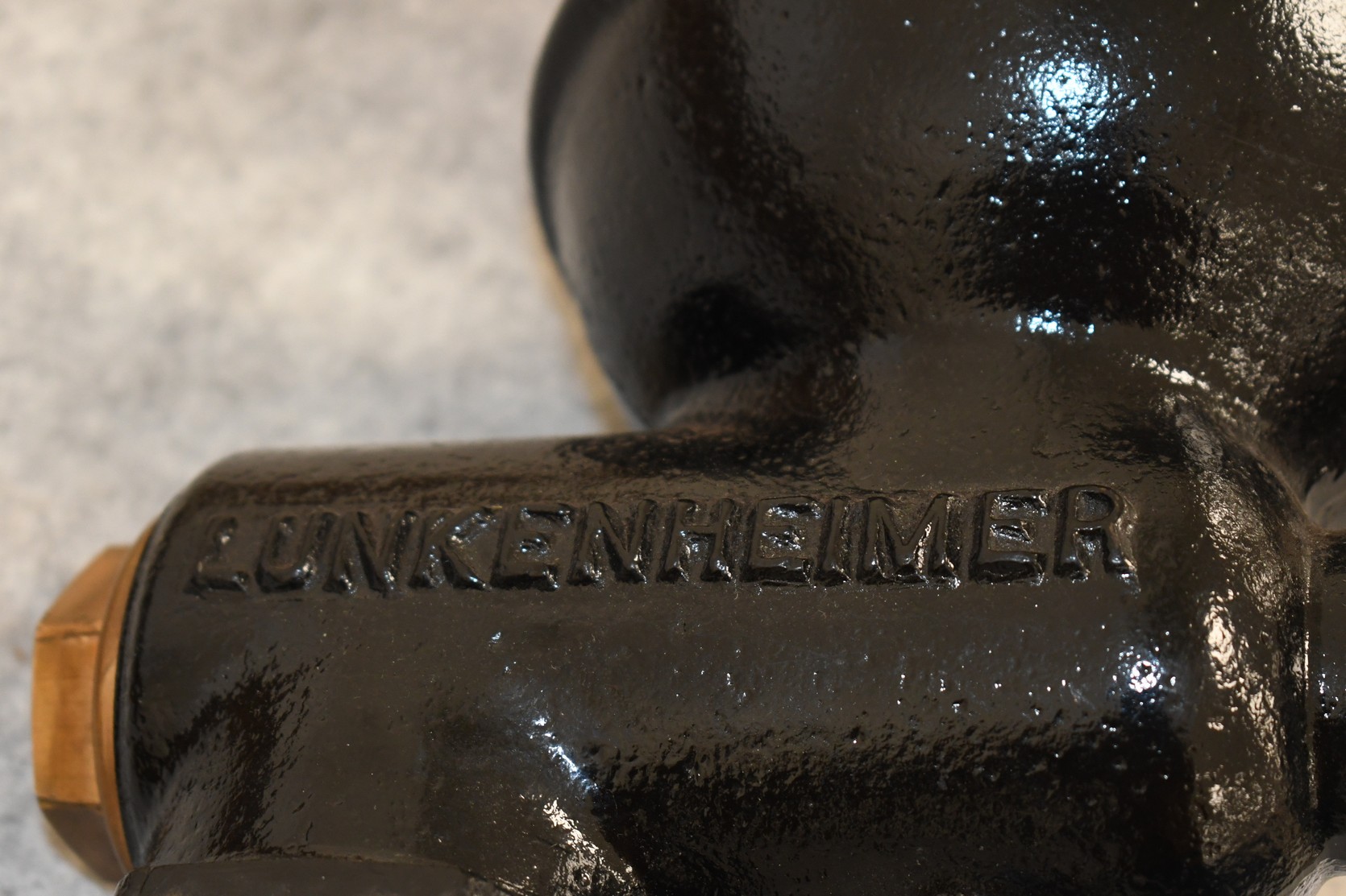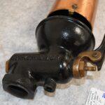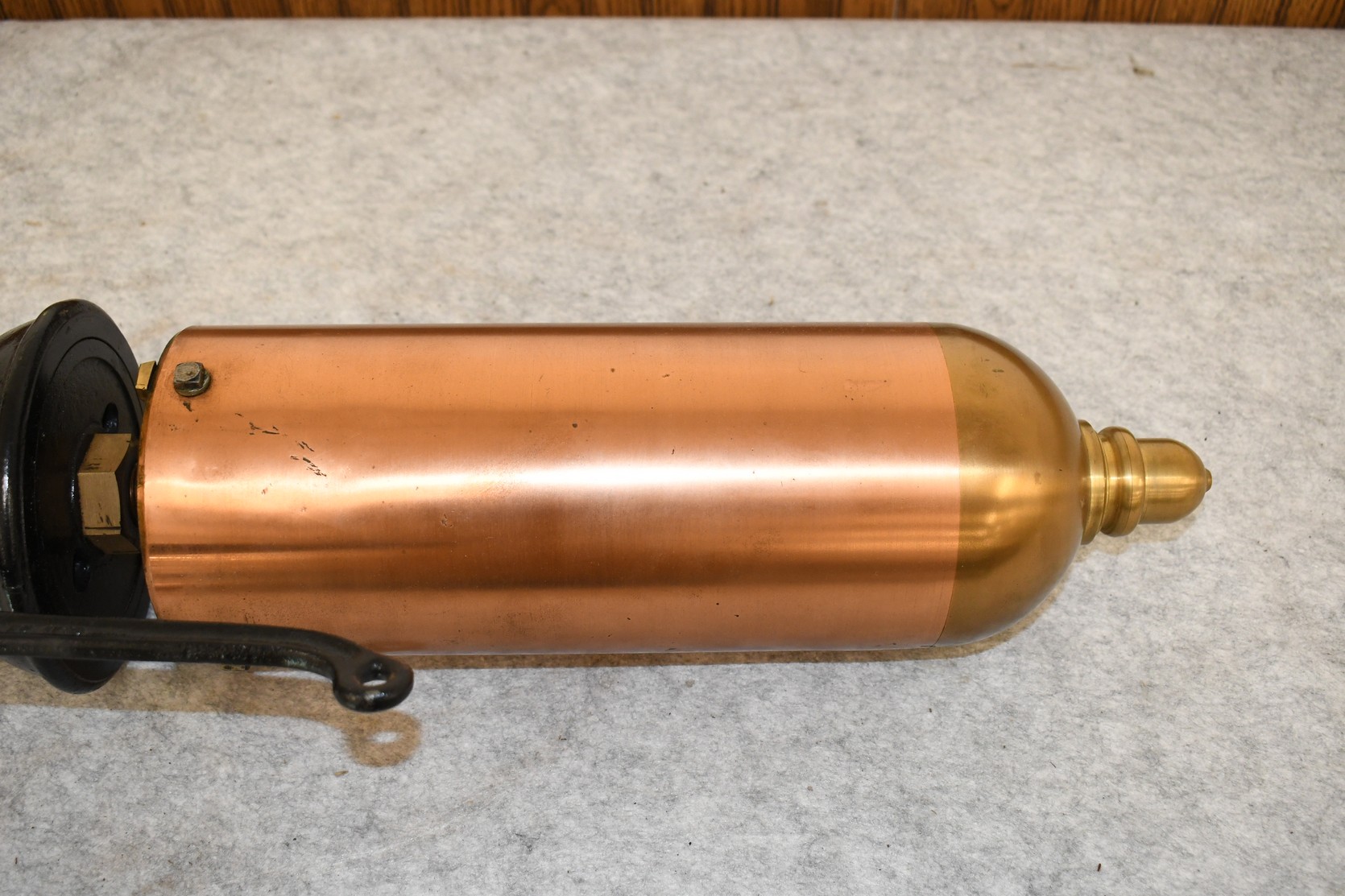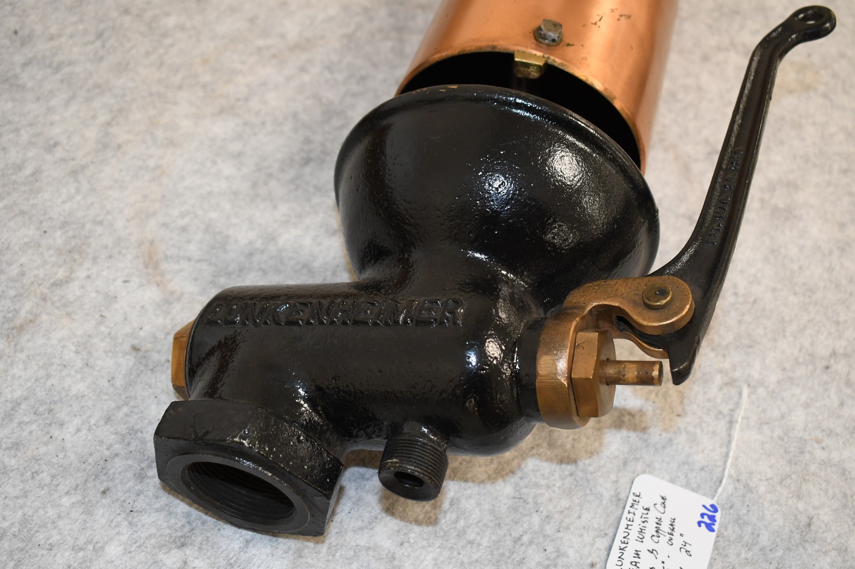 226. Lunkenheimer Steam Whistle w/Cast Iron Base – The Brass and Copper Cone is 15½” x 5” – Whistle Appears to be Polished and Restored – Overall Length is 24”