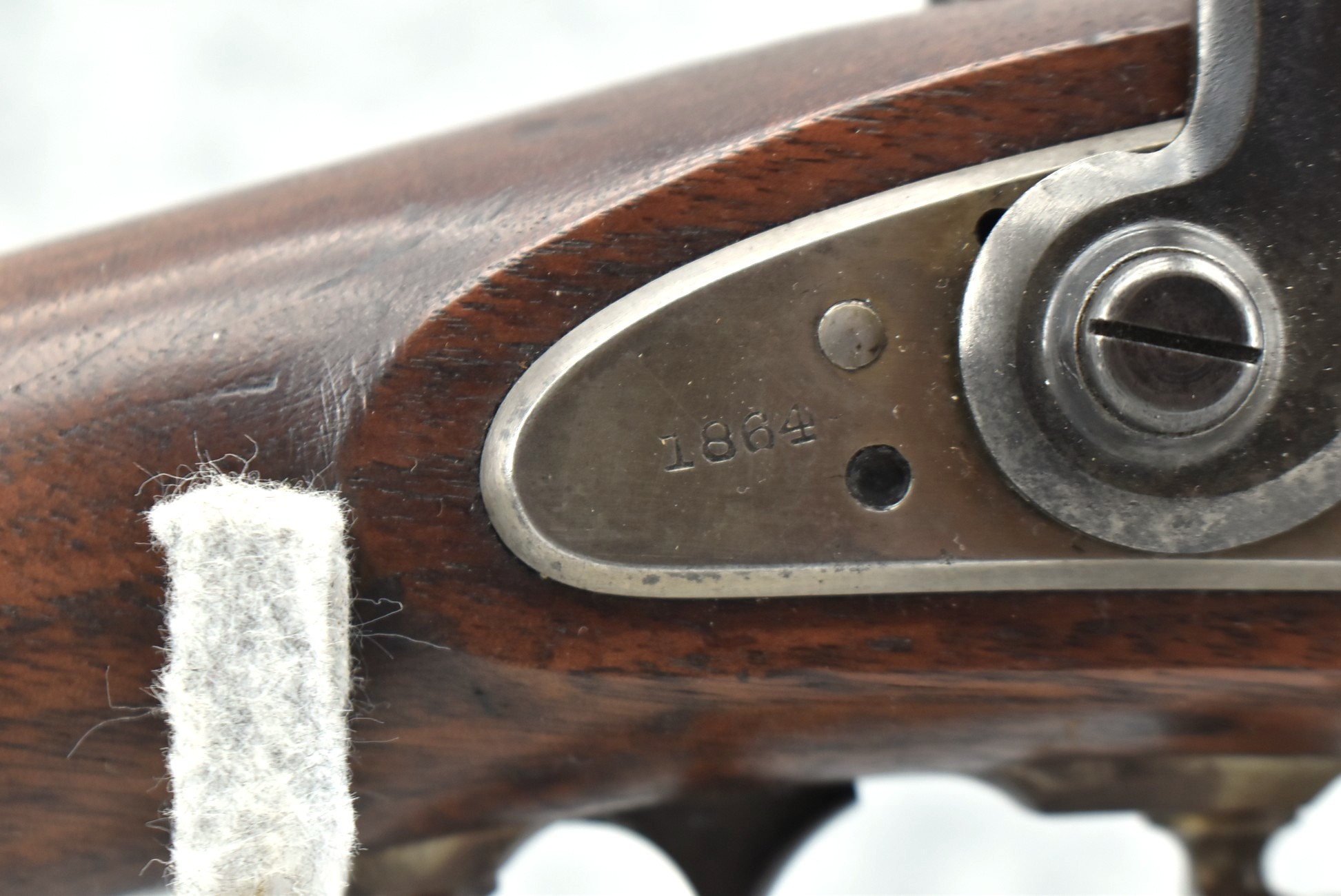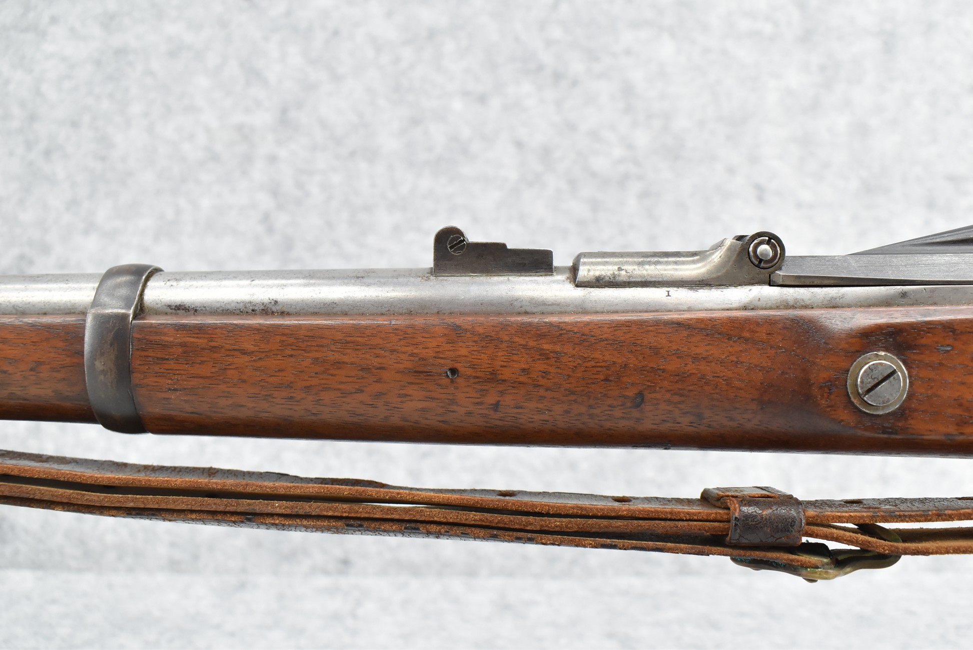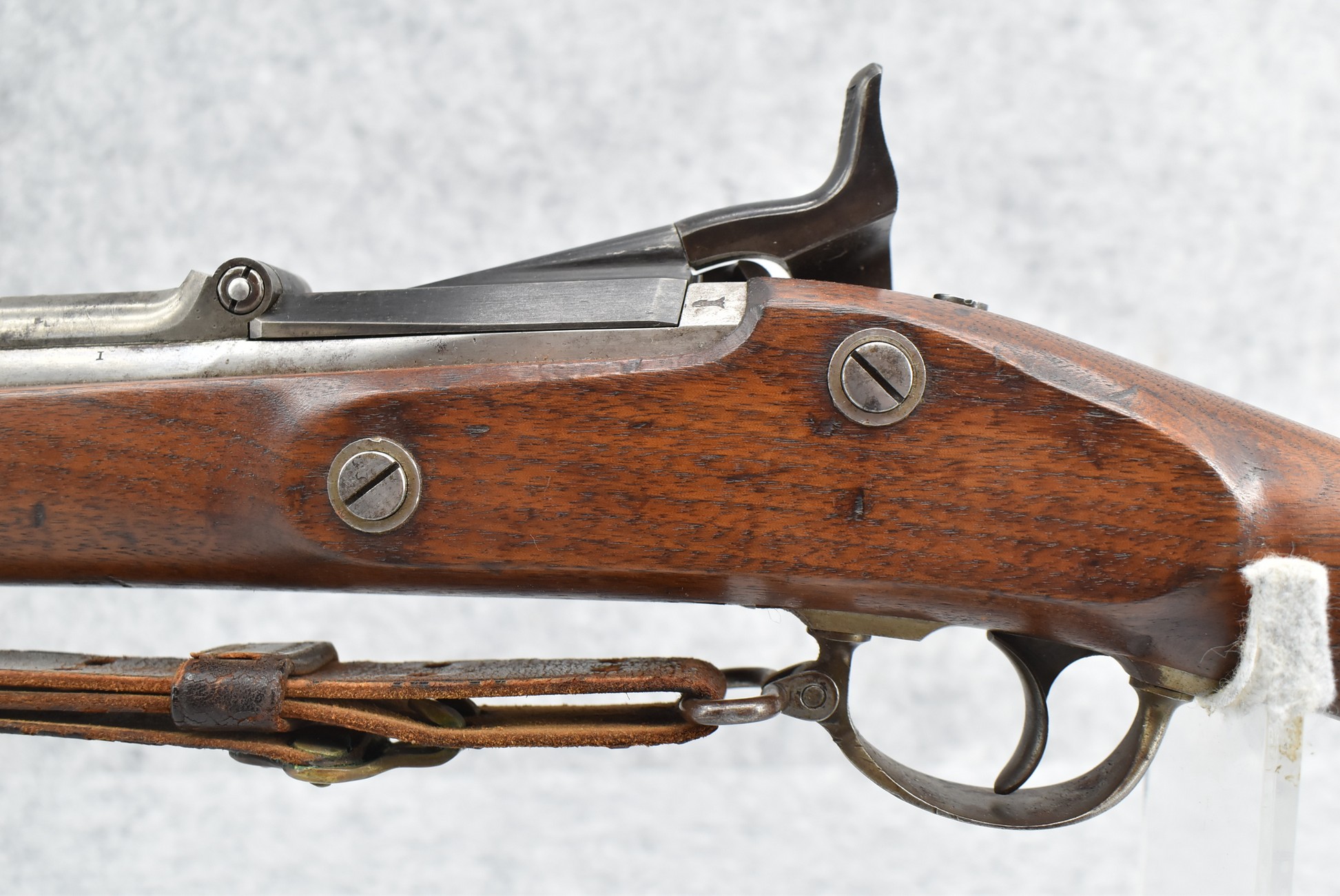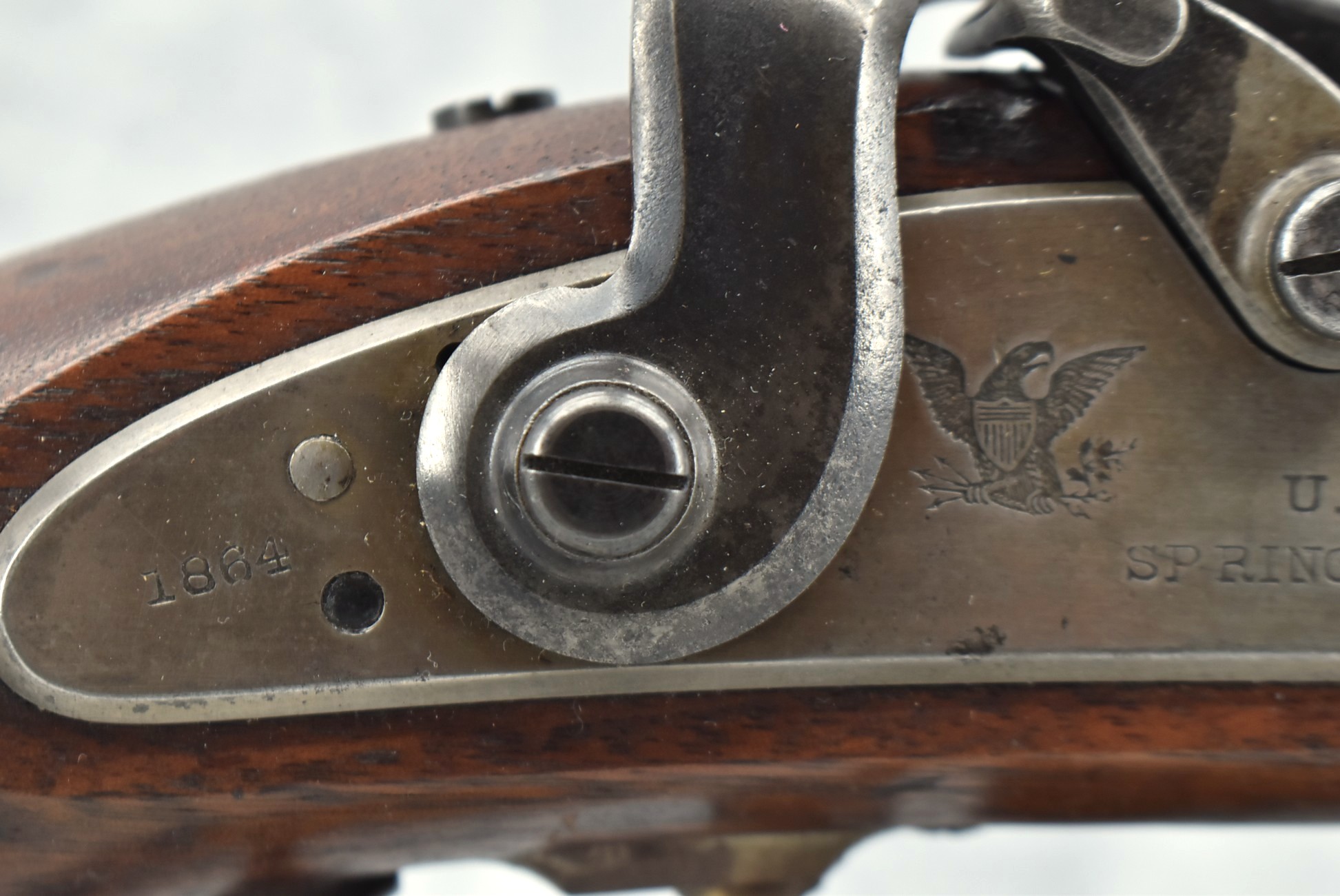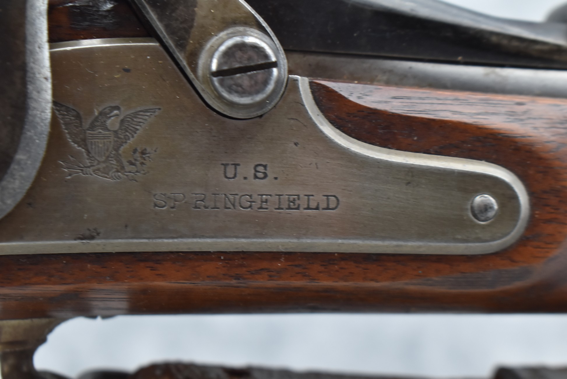 227. U.S. Springfield – Mod. 1866 Allin Conversion Rifle – 50-70 Cal. Single Shot Rifle – w/36 5/8” Round Barrel w/Blade Front & 2-Leaf Rear Sights w/3 Barrel Bands – Bright Finish – w/Wood Stock Marked #12706 – w/Sling – w/Ram Rod – Breech Block Marked 1866 – Lock Plate Dated 1864