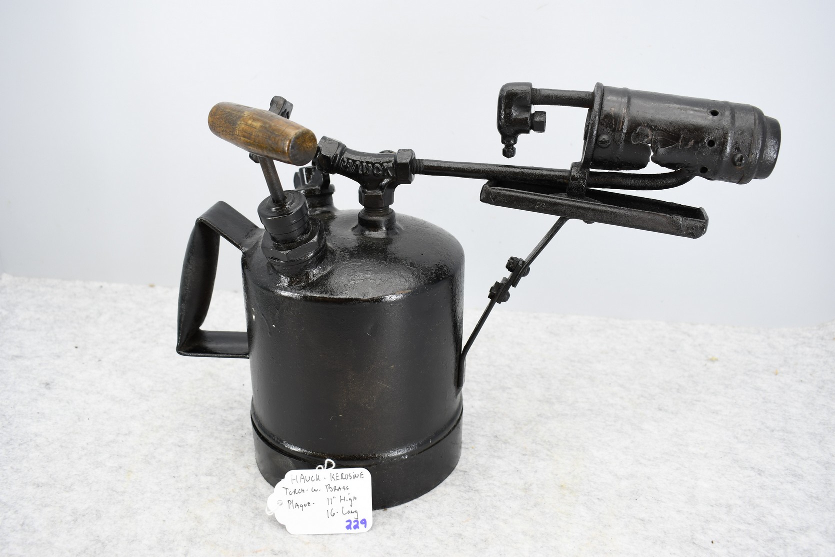 229. Hauck Kerosine Blow Torch – Torch has Brass Plaque – 11” High x 16” Long