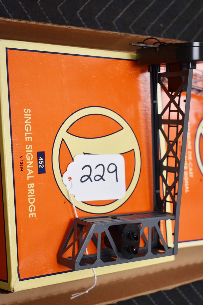 229. Pair of Lionel Prop Pieces – Including Single Signal Bridge 6-12894 and Mainline Die-Cast Walkout Cantilever Signal 6-22934 – Both w/Boxes