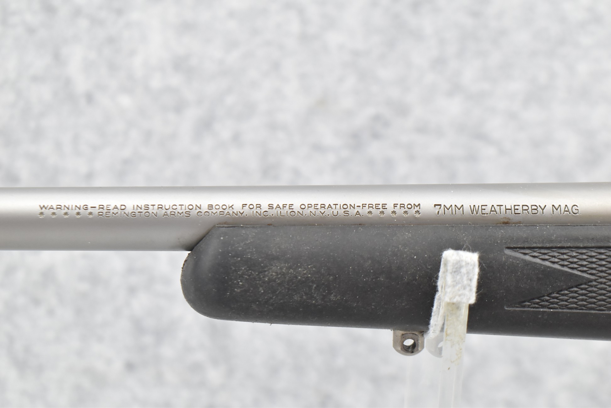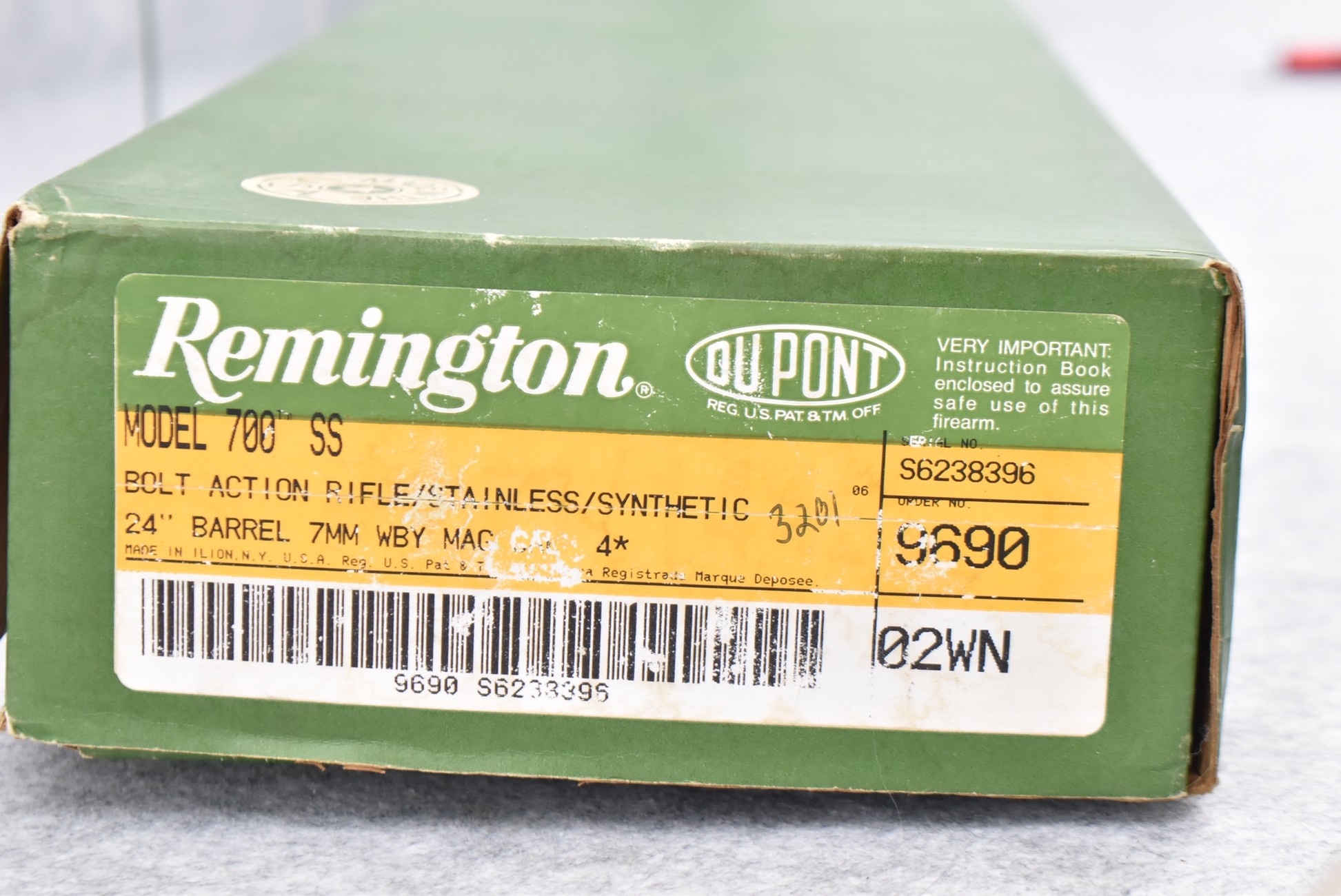 22R. Remington – Mod. 700 BDL SS – 7mm Wby. Mag. Cal. Bolt Action Rifle – w/24” Barrel – Stainless Finish – w/Factory Checkered Capped Pistol Grip Black Synthetic Stock w/Factory Recoil Pad – w/Factory Box & Manual