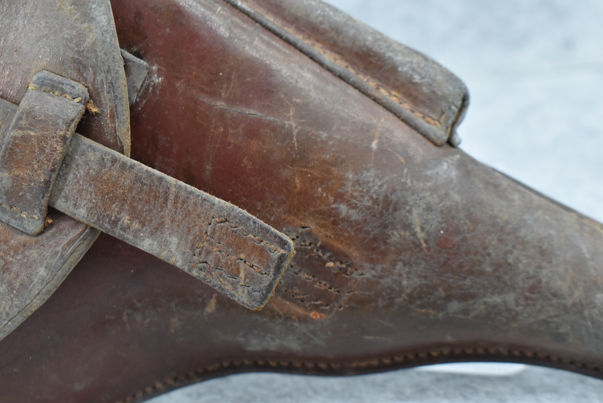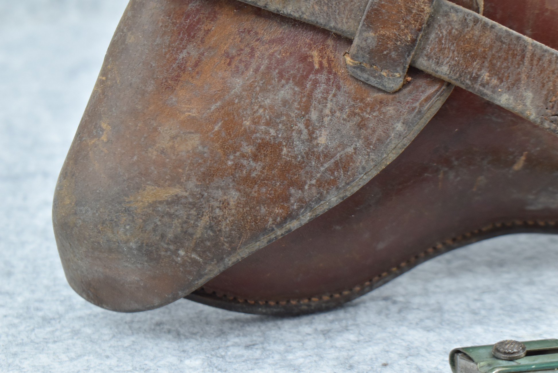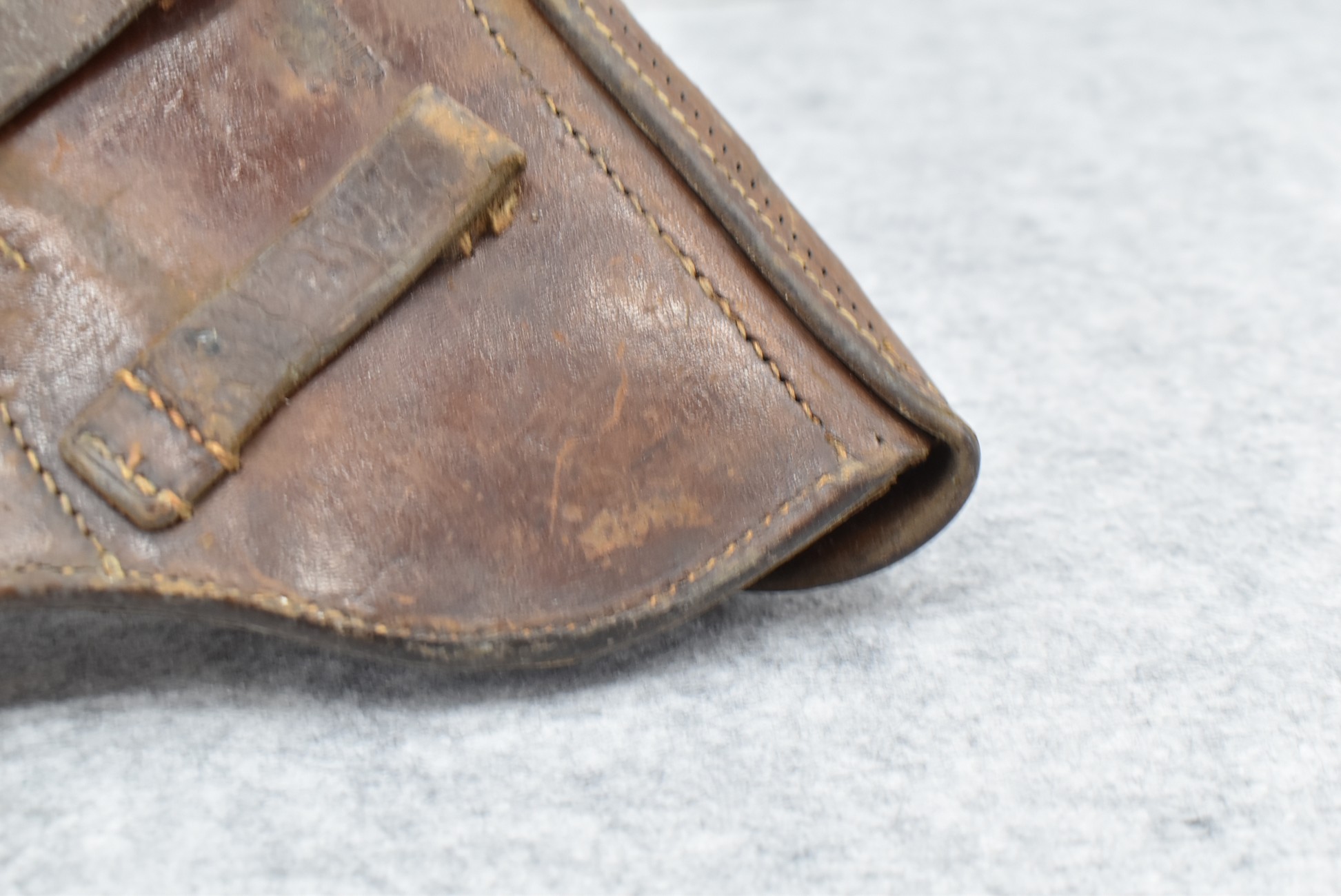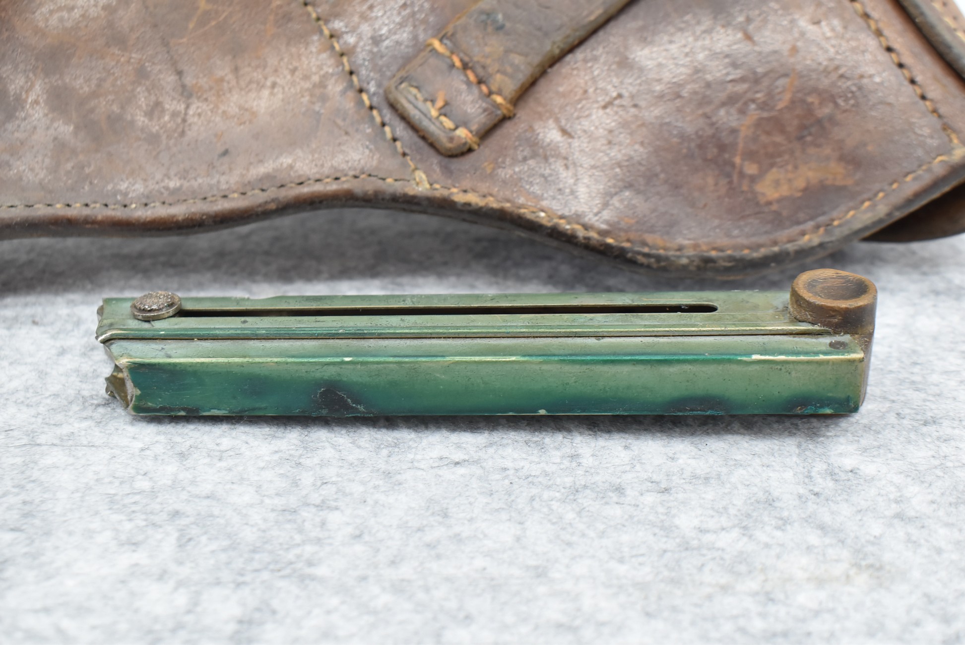 23. A. Fischer – German Leather P.08 Luger Holster & Wooden Base Luger Mag – w/Luger Tool – Dated 1929