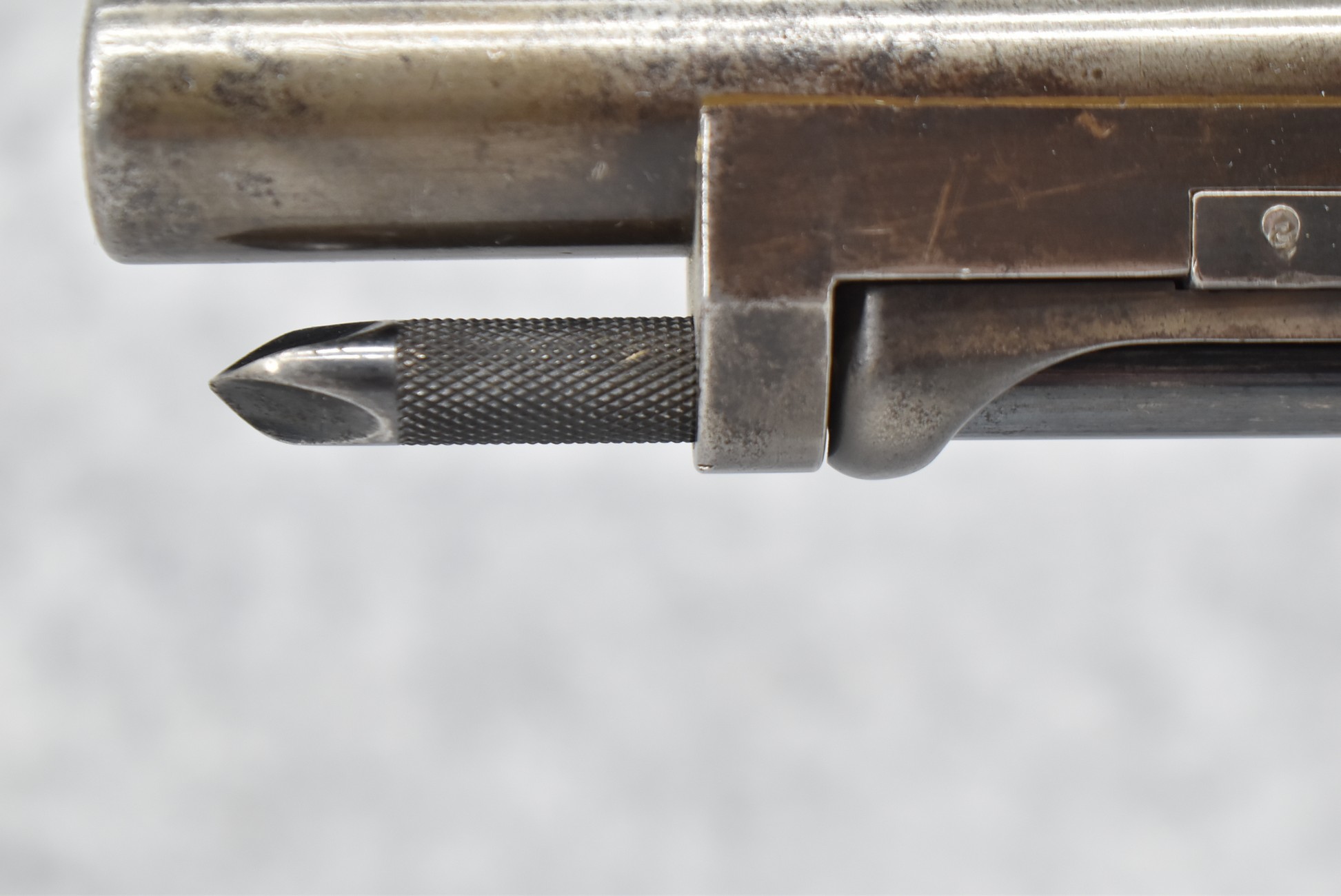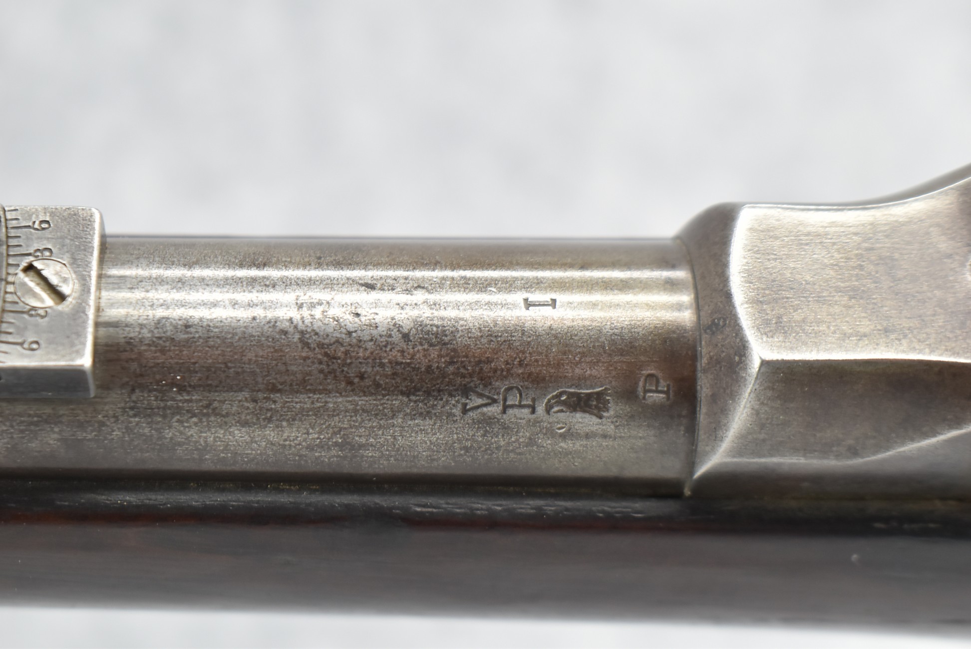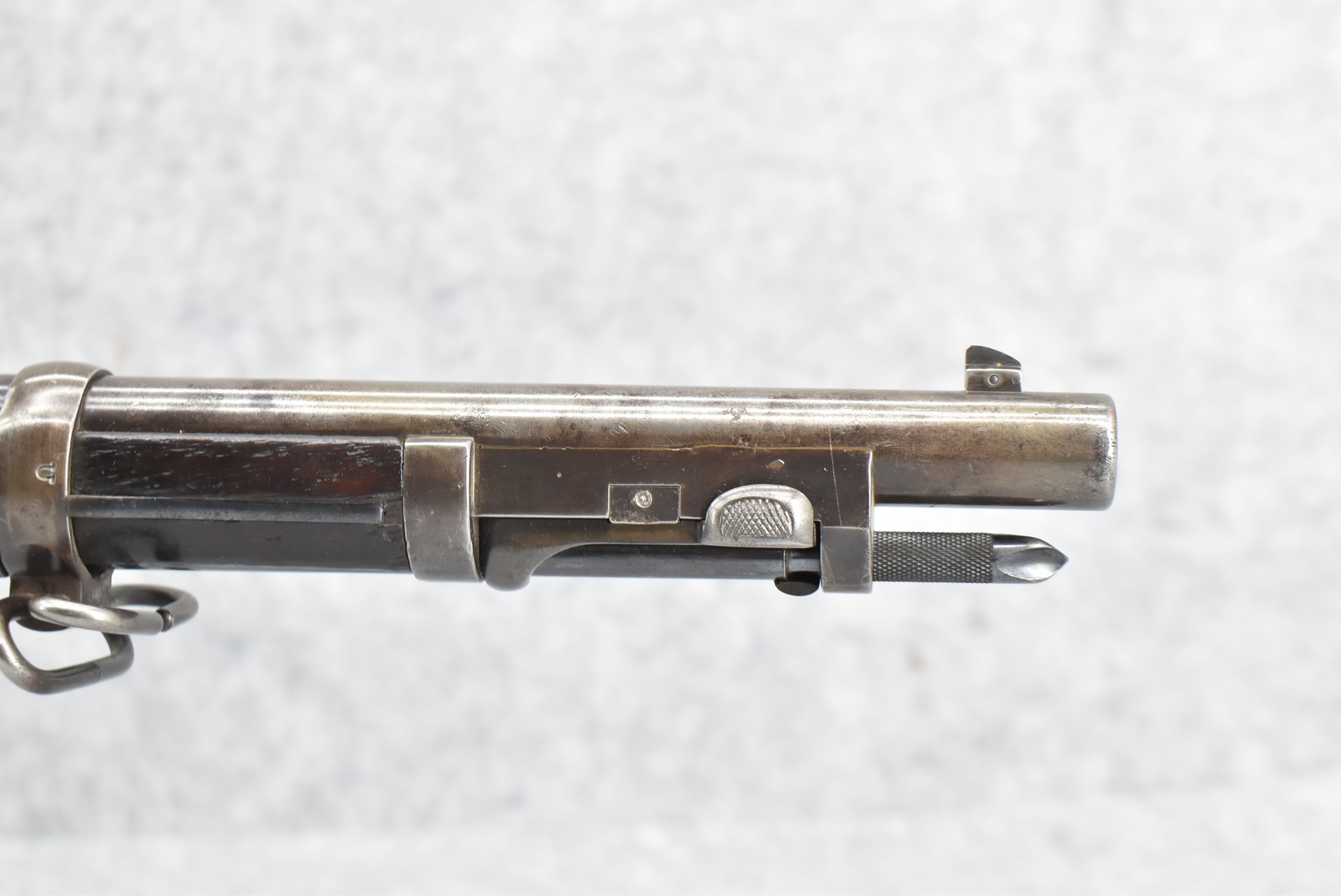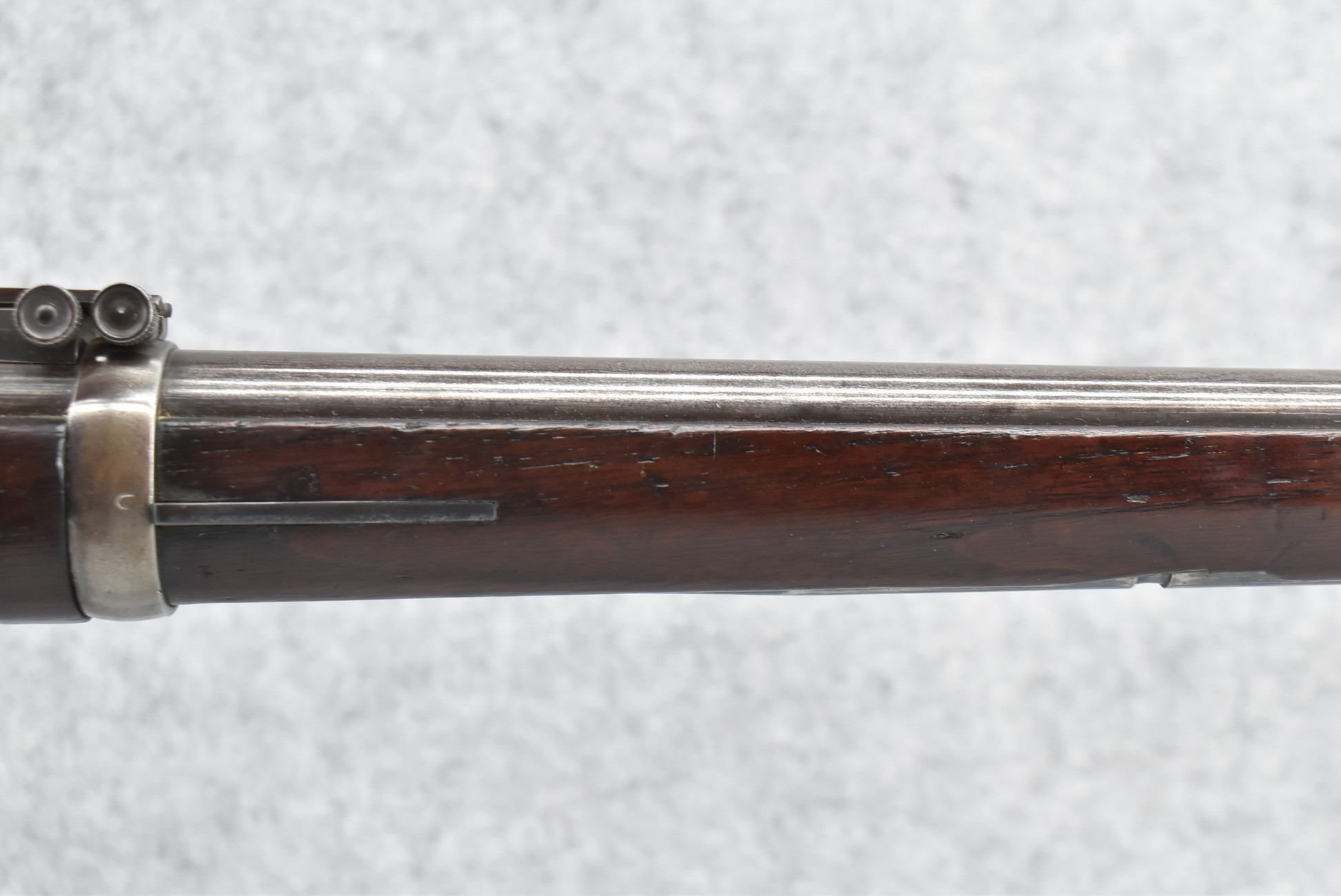 230. U.S. Springfield – Mod. 1884 – 45-70 Gov’t Cal. Trapdoor Rifle – w/32 ½” Barrel w/Blade Front & Adj. Rear Buffington Sights – Military Finish – w/Full Length Straight Grip Wood Stock w/Metal Butt Plate – w/1890 Inspectors Stamp on Left Side of Stock – w/Sling Loops – w/Ram Rod Bayonet