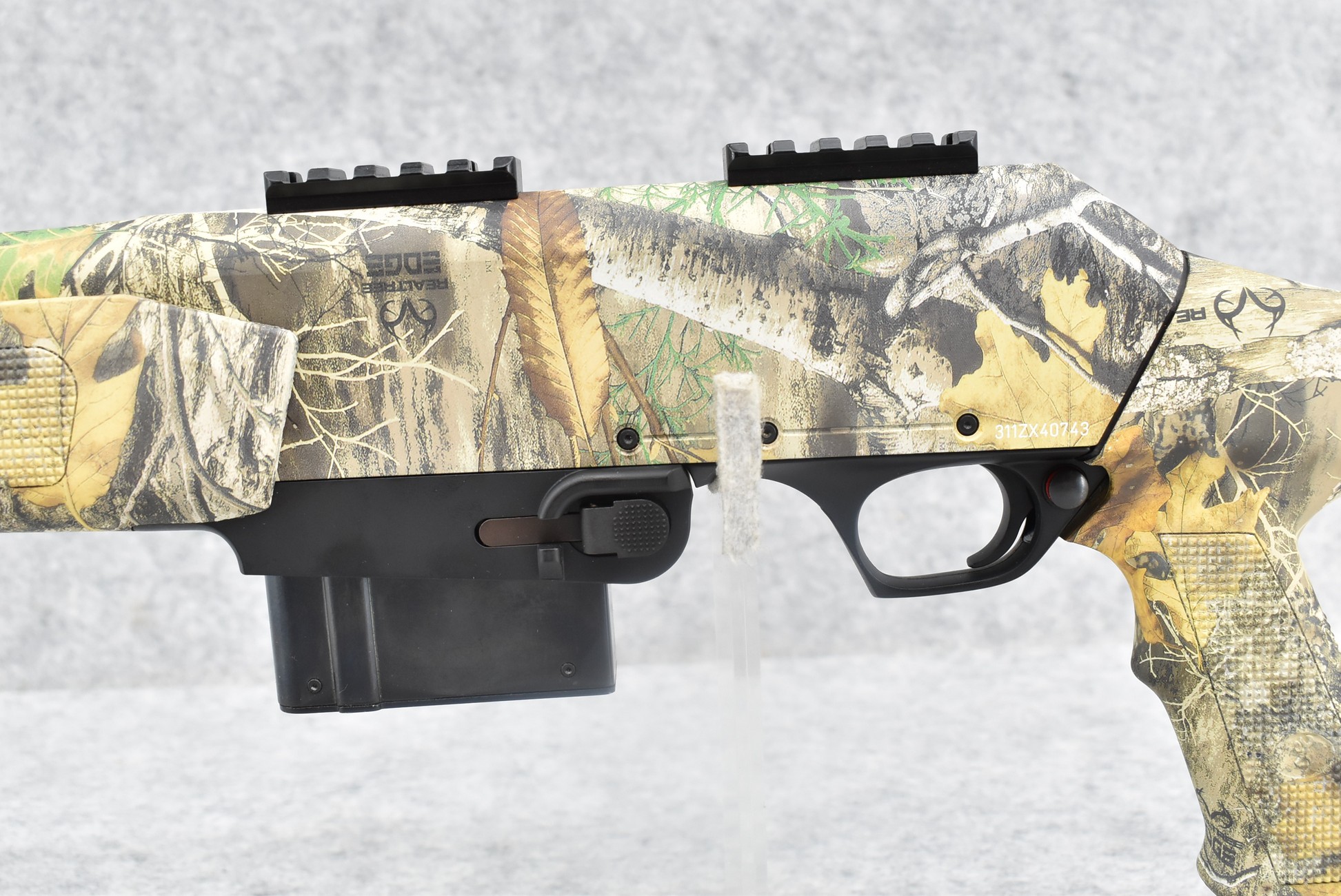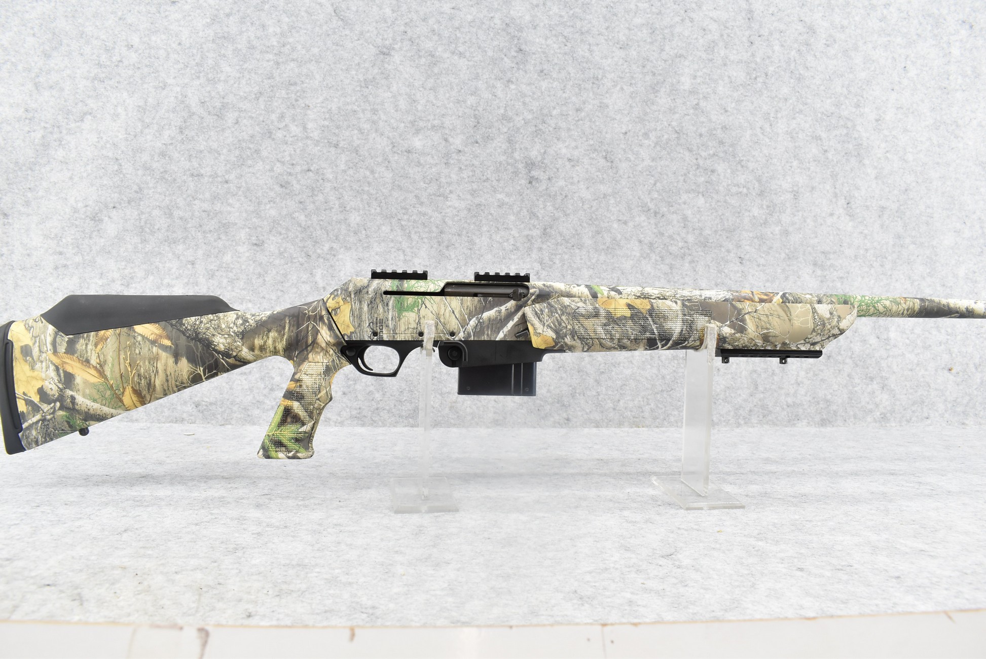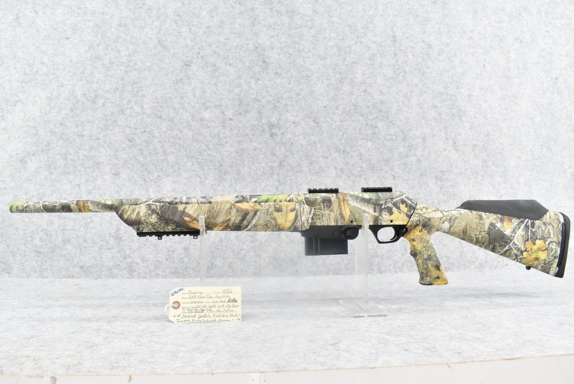 230R. Browning – Mod. BAR-Short Trac-Hog Stalker – 308 Win. Cal. Semi-Auto Rifle – w/20” Barrel – Full Realtree Edge HD Camo Coverage – w/Checkered Pistol Grip Camo Stocks w/Factory Butt Pad – w/Factory Detachable Magazine – w/Scope Bases – w/Hard Case, Manual, Accessories & Extra Mag