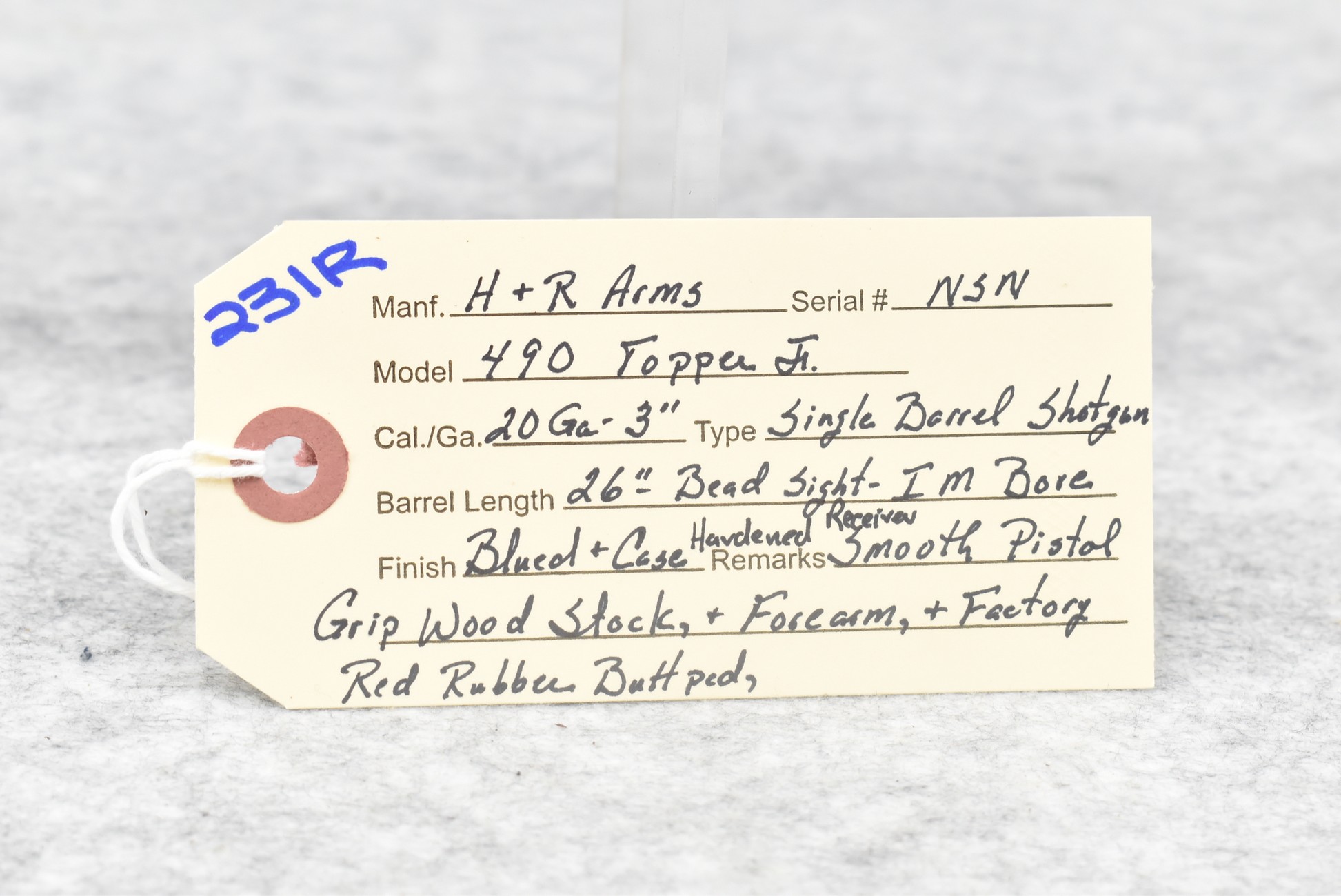 231R. H. & R. Arms – Mod. 490 Topper Jr. – 20ga. 3” Single Barrel Shotgun – w/26” IM Choked Barrel w/Bead Sight – Blued Finish w/Case Hardened Receiver – w/Smooth Pistol Grip Wood Stocks w/Factory Butt Pad