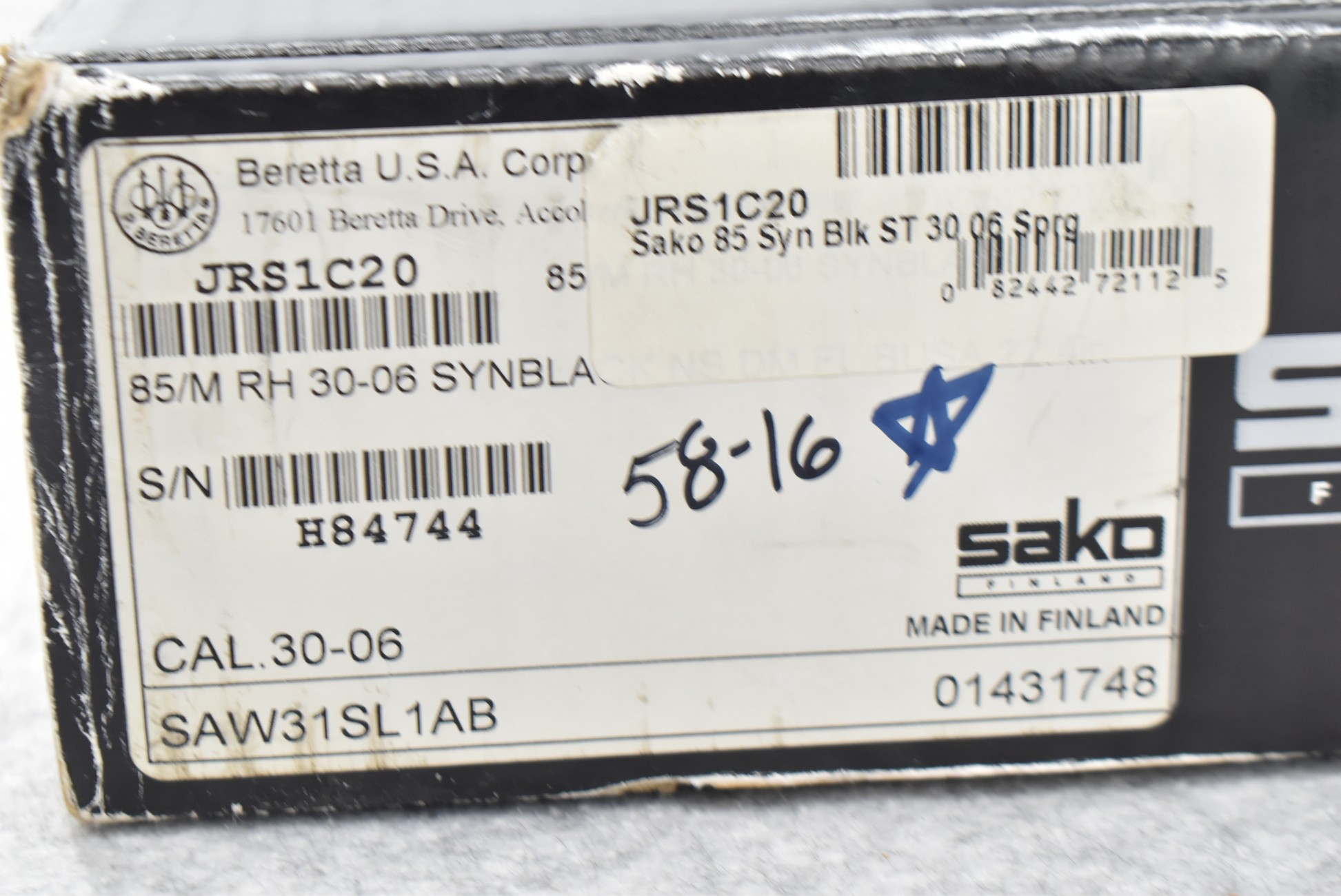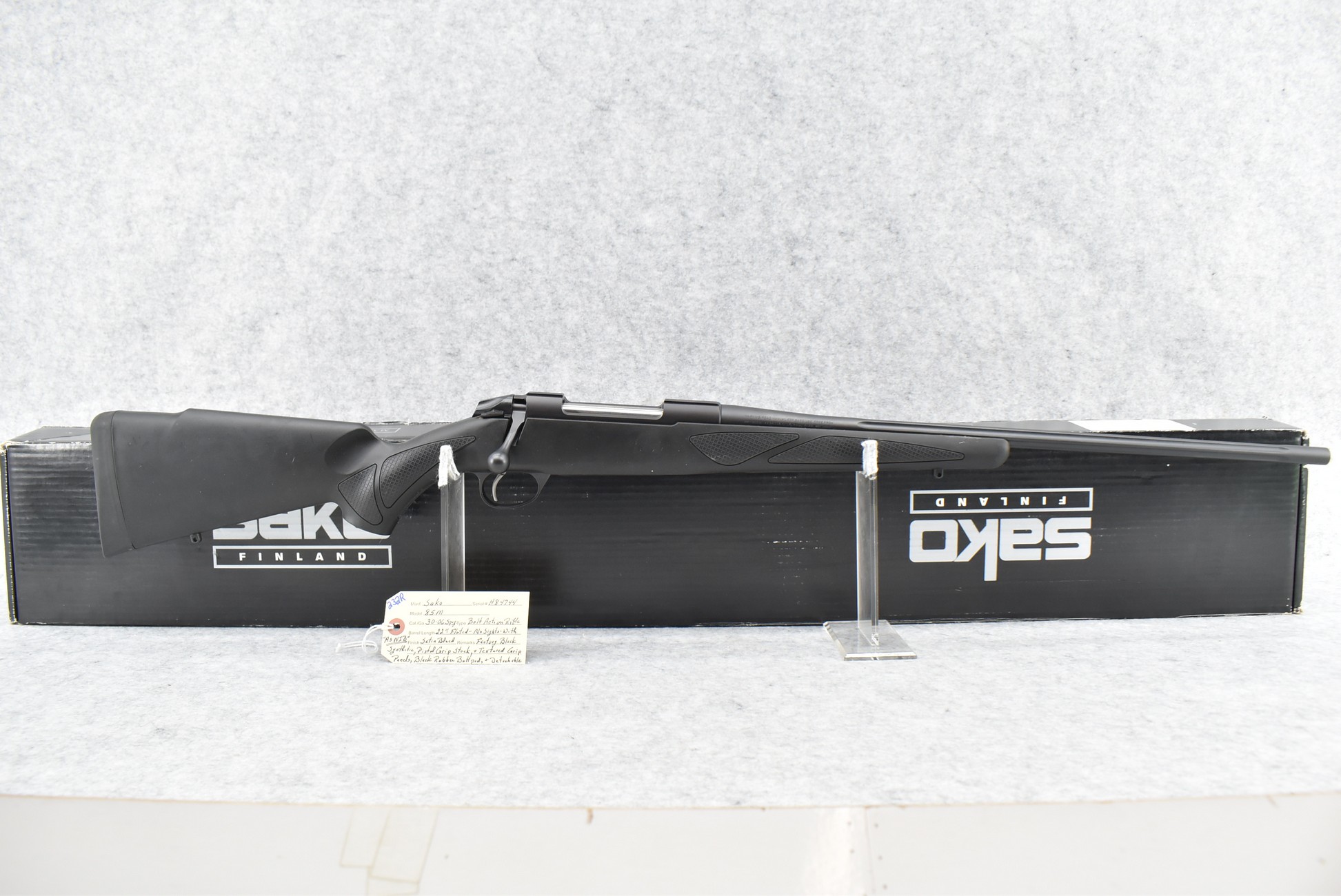 232R. Sako – Mod. 85M – 30-06 Sprg. Cal. Bolt Action Rifle – w/22” Fluted Barrel – Satin Blued Finish – w/Factory Black Synthetic Pistol Grip Stock w/Factory Butt Pad, and Textured Grip Panels – w/Detachable Magazine – New in Factory Box w/Manual and Accessories