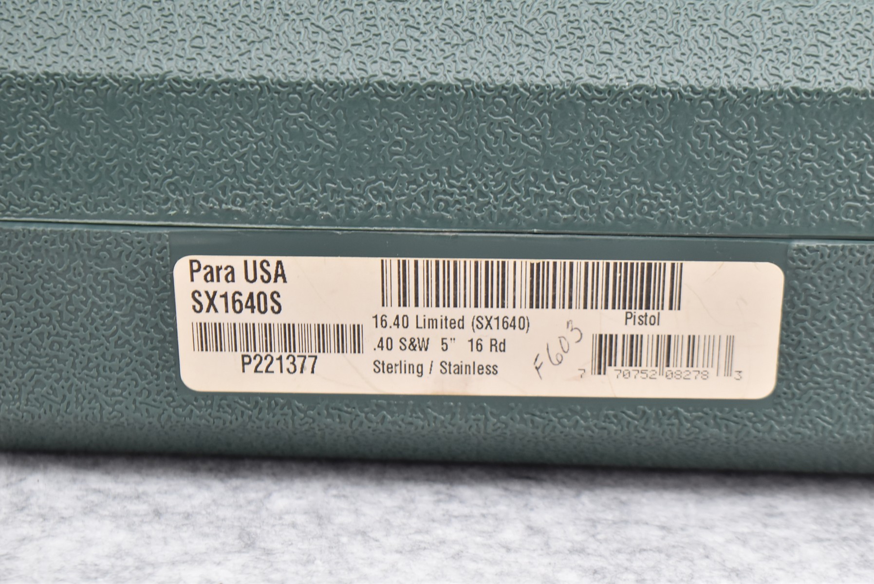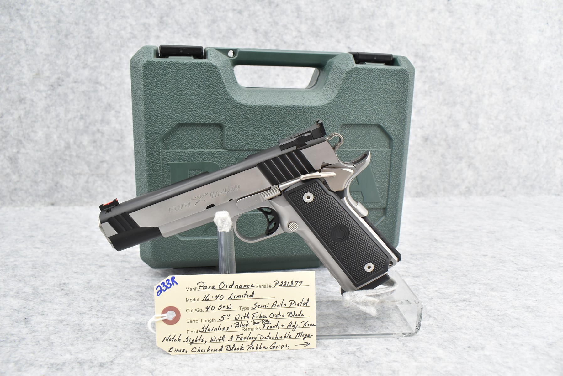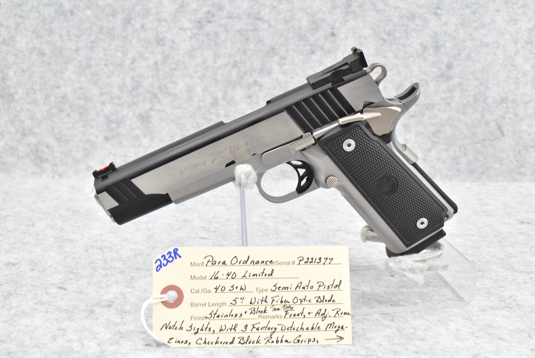 233R. Para Ordnance – Mod. 16-40 Limited – 40 S&W Cal. Semi-Auto Pistol – w/5” Barrel w/Fiber Optic Blade Front & Adj. Rear Notch Sights – Stainless/Black Two-Tone Finish – w/Checkered Black Rubber Grips – w/3 Factory Detachable Magazines – w/Factory Hard Case & Accessories