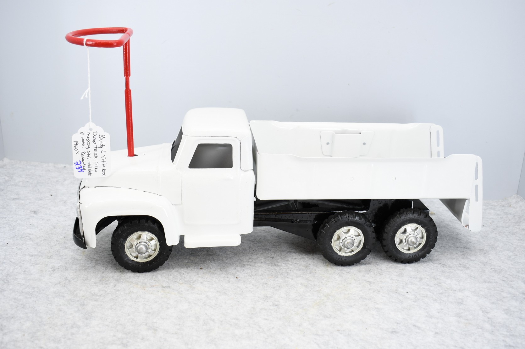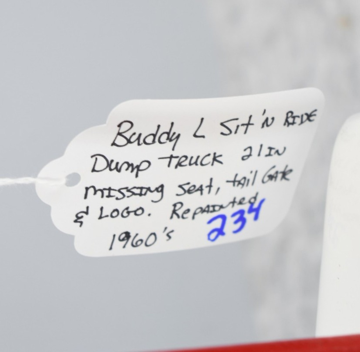 234. Buddy L. Sit-N-Ride Dump Truck – Missing Seat Rail and End Gate – Repainted – 21” Long