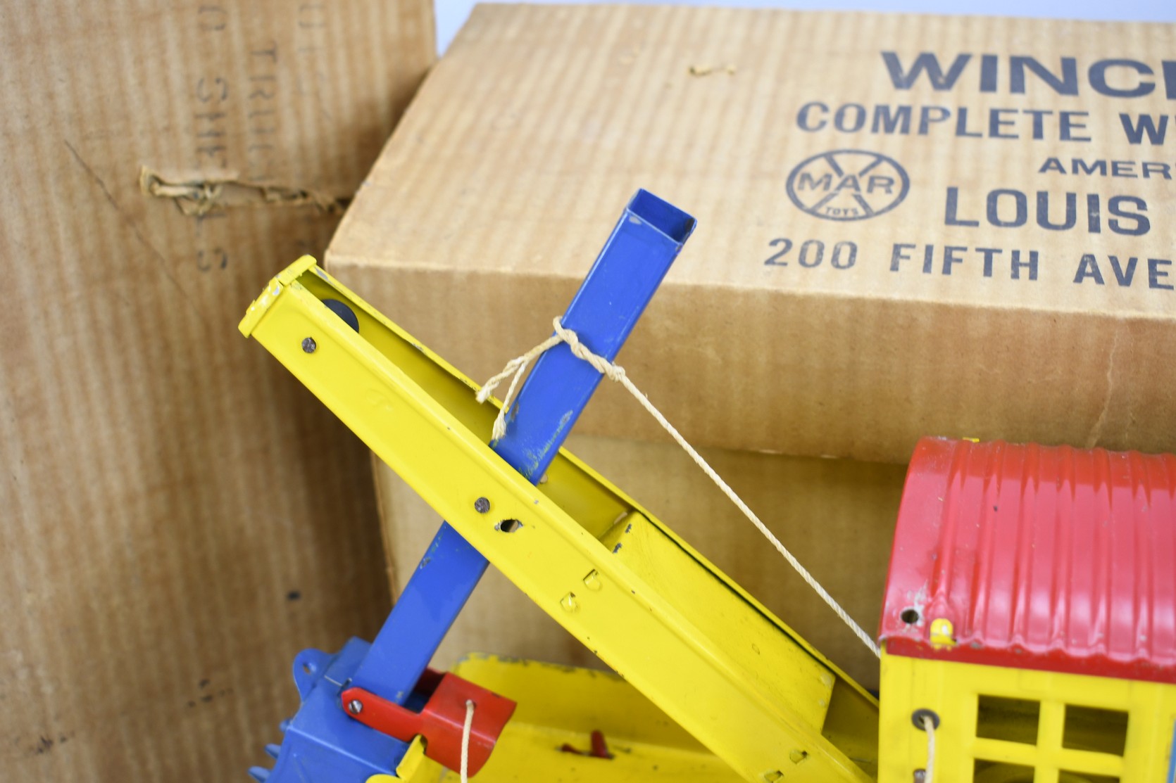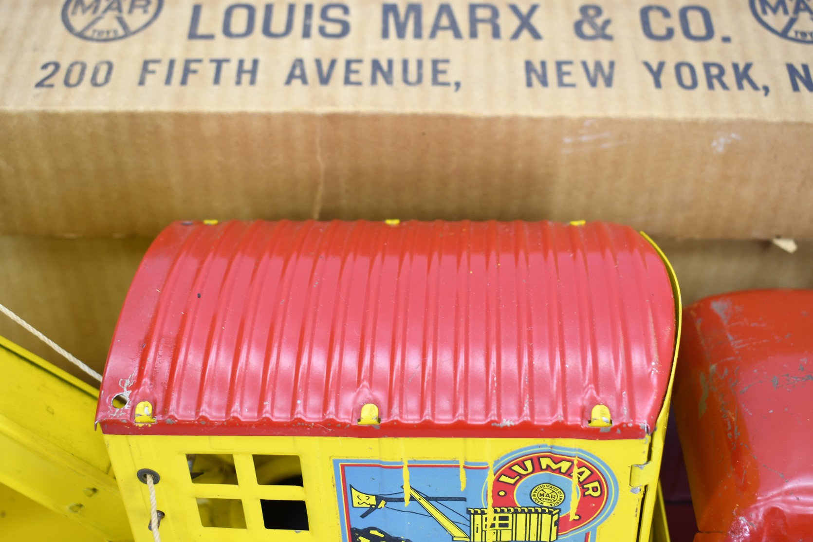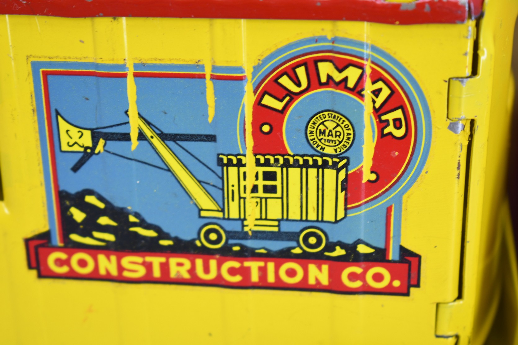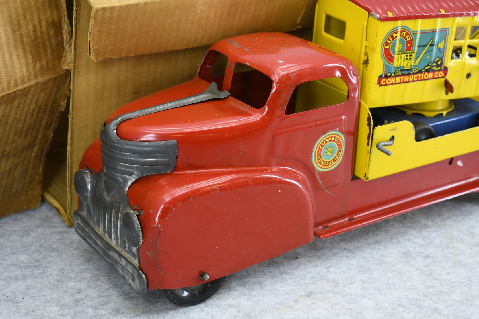 235. Louis Mar-X Company Original Lumar Contractors Winch Truck – Complete w/ Lumar Construction Co. Steam Shovel – Toy is in Original Box in Excellent Condition