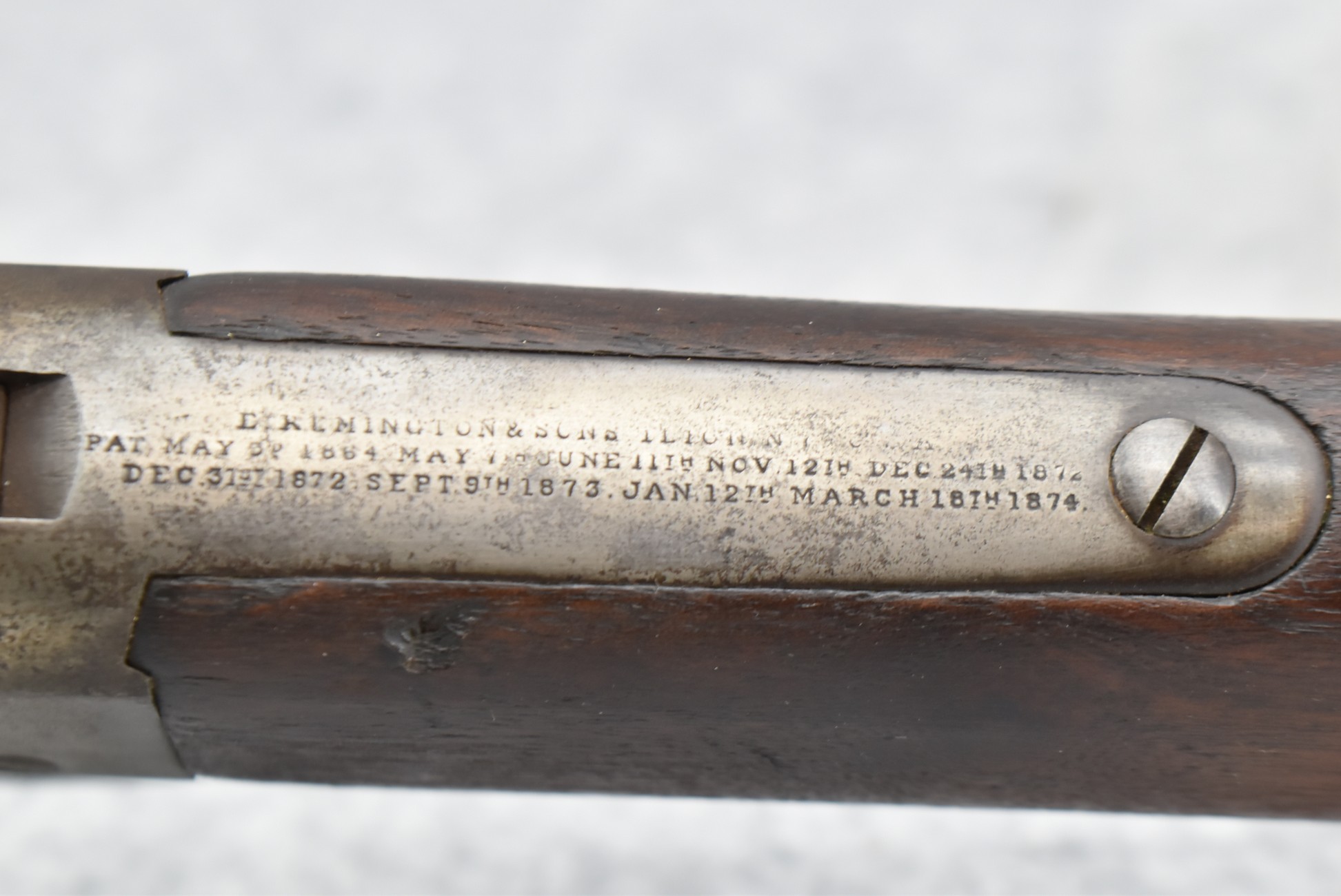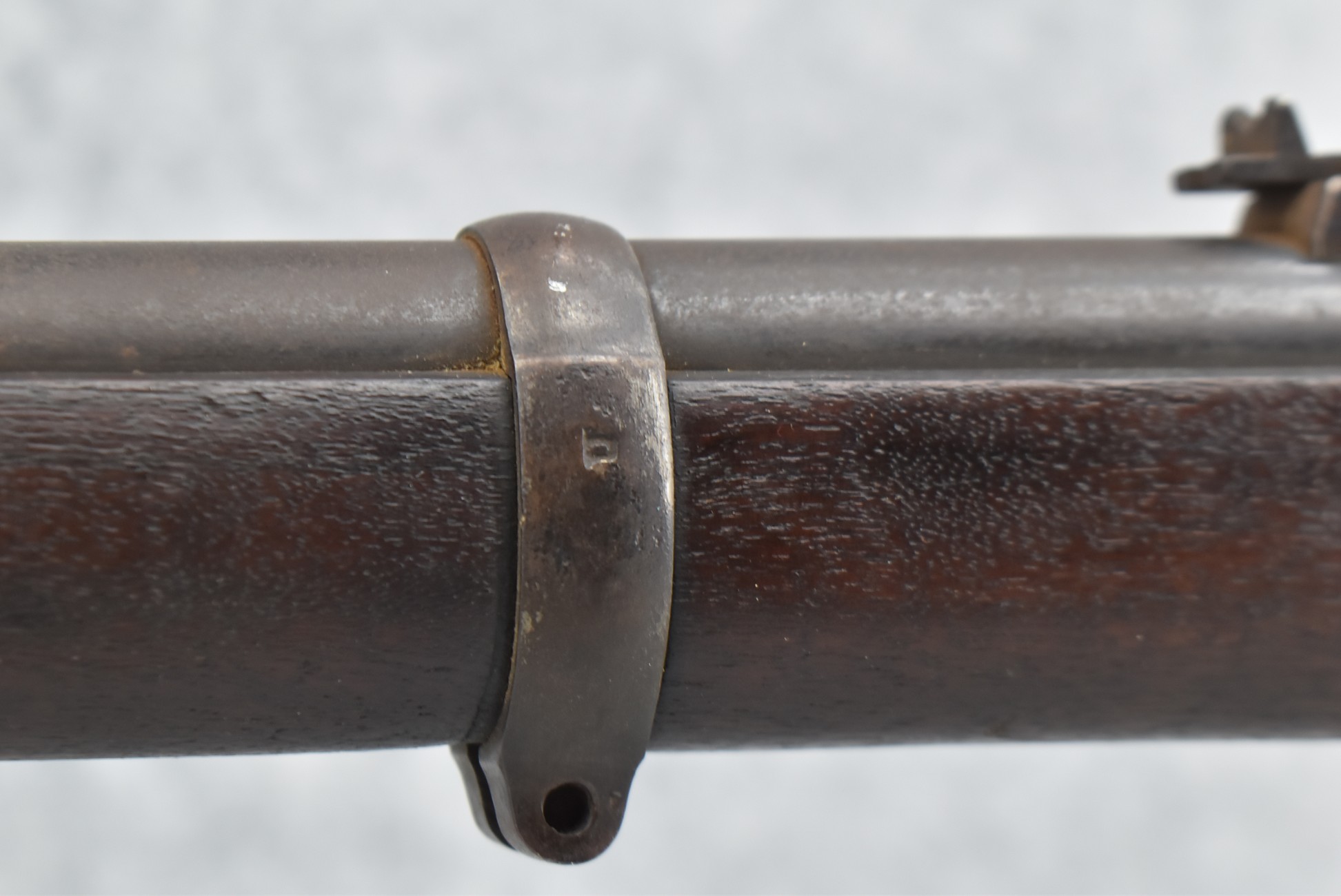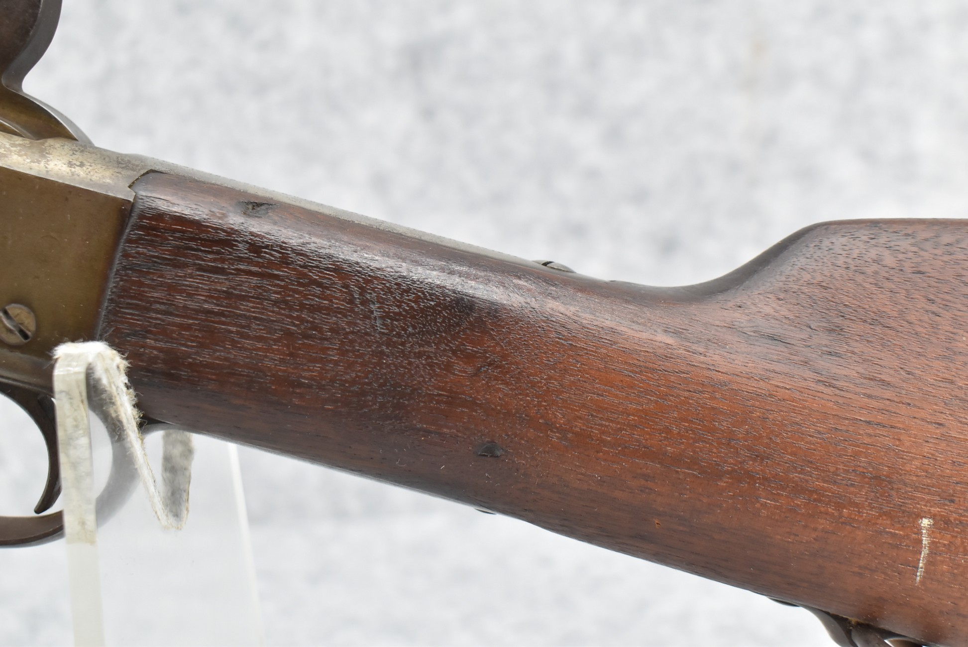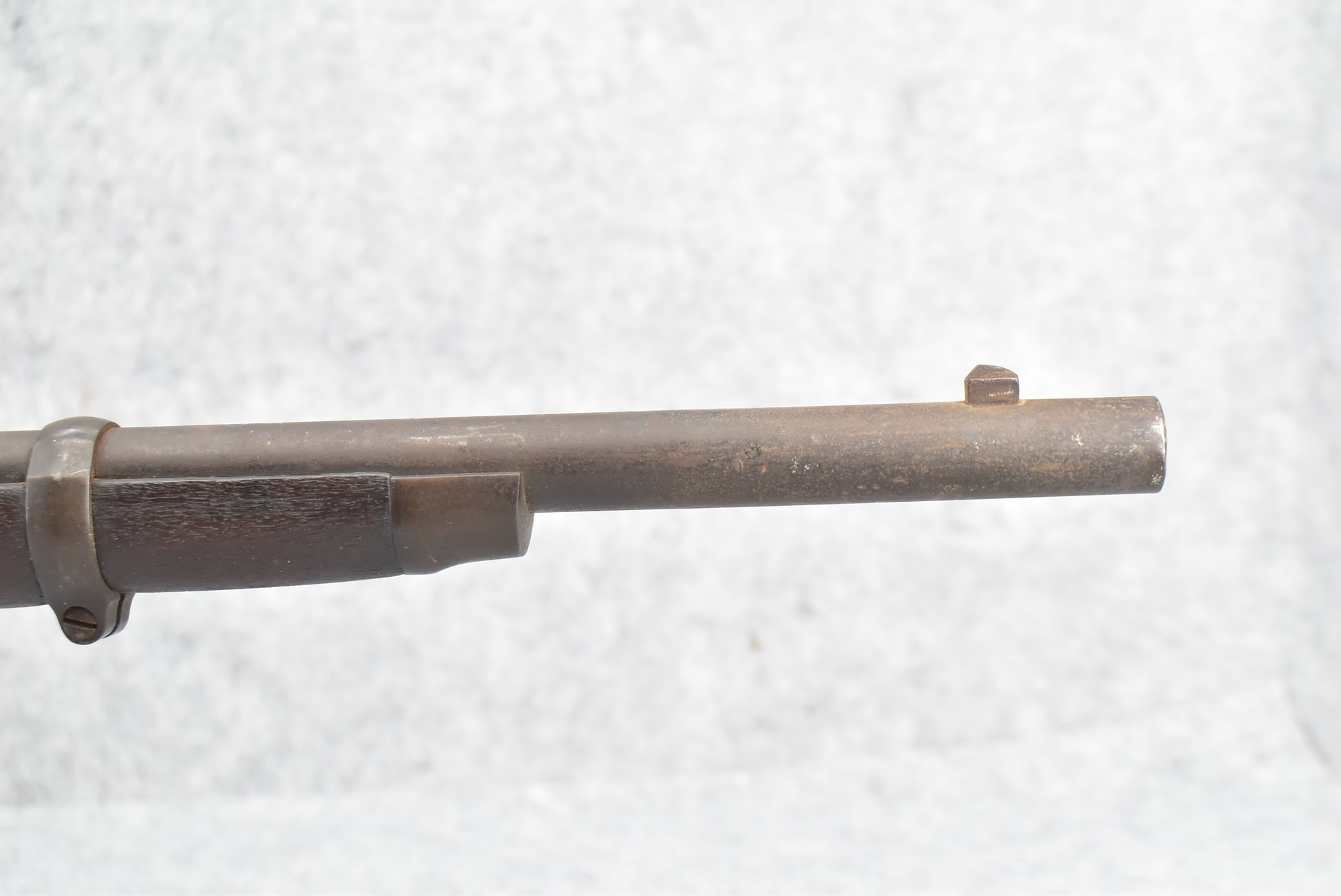 235. Remington – Mod. Rolling Block – 43 Spanish Cal. Single Shot Rifle – w/35 1/8” Barrel w/Front & Ladder Adj. Rear Sights – Gray Finish – w/Straight Grip Full Wood Military Stock Held on by 3 Barrel Bands w/Factory Metal Butt Plate – w/Sling Swivels – No Cleaning Rod