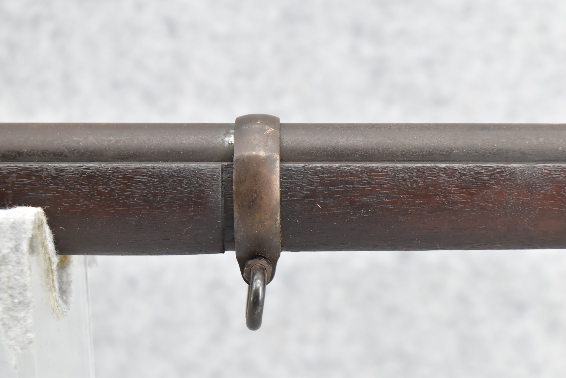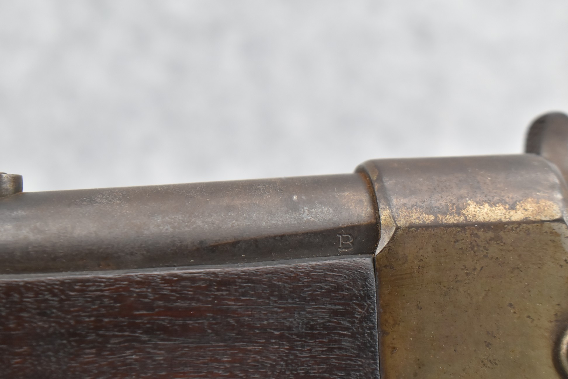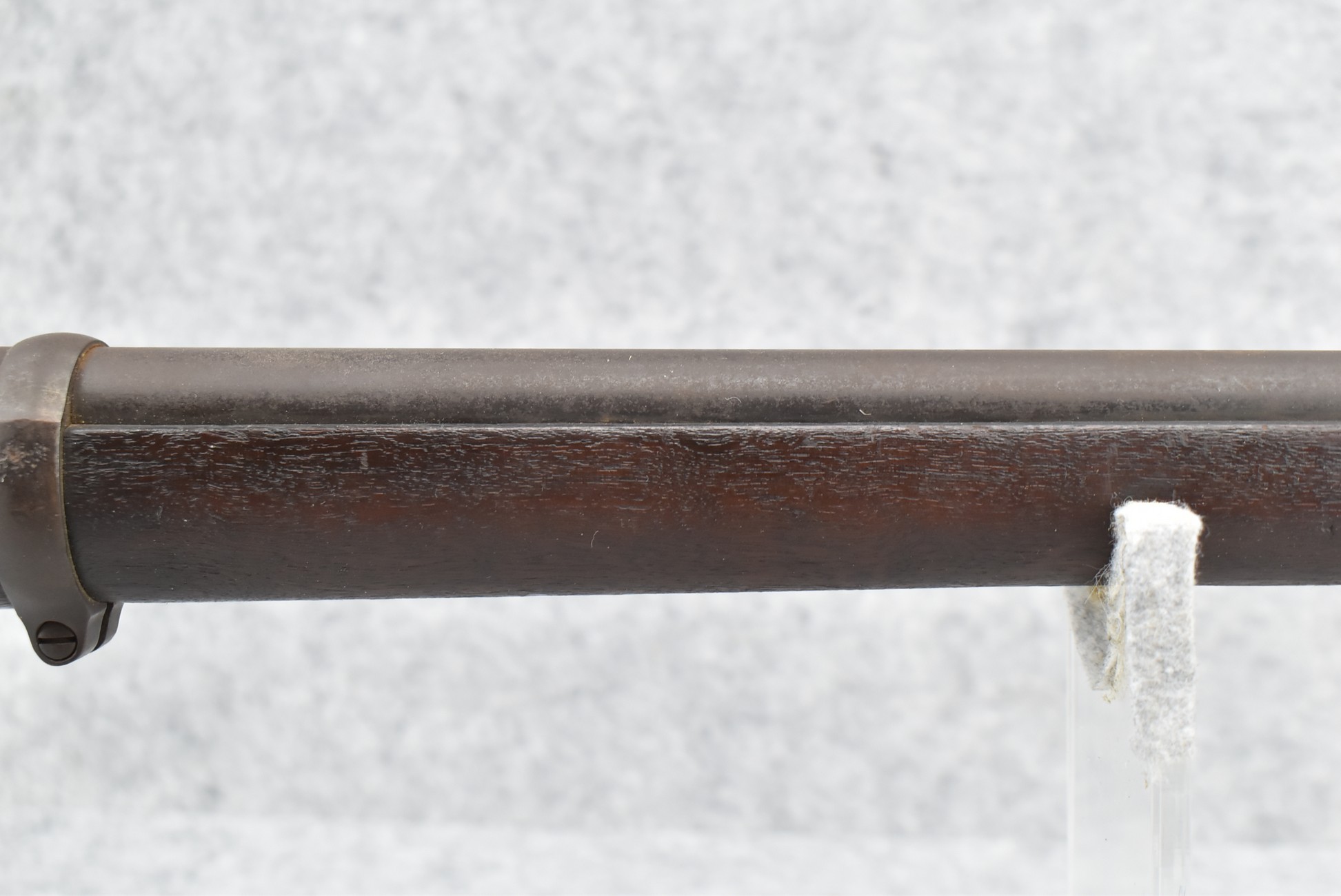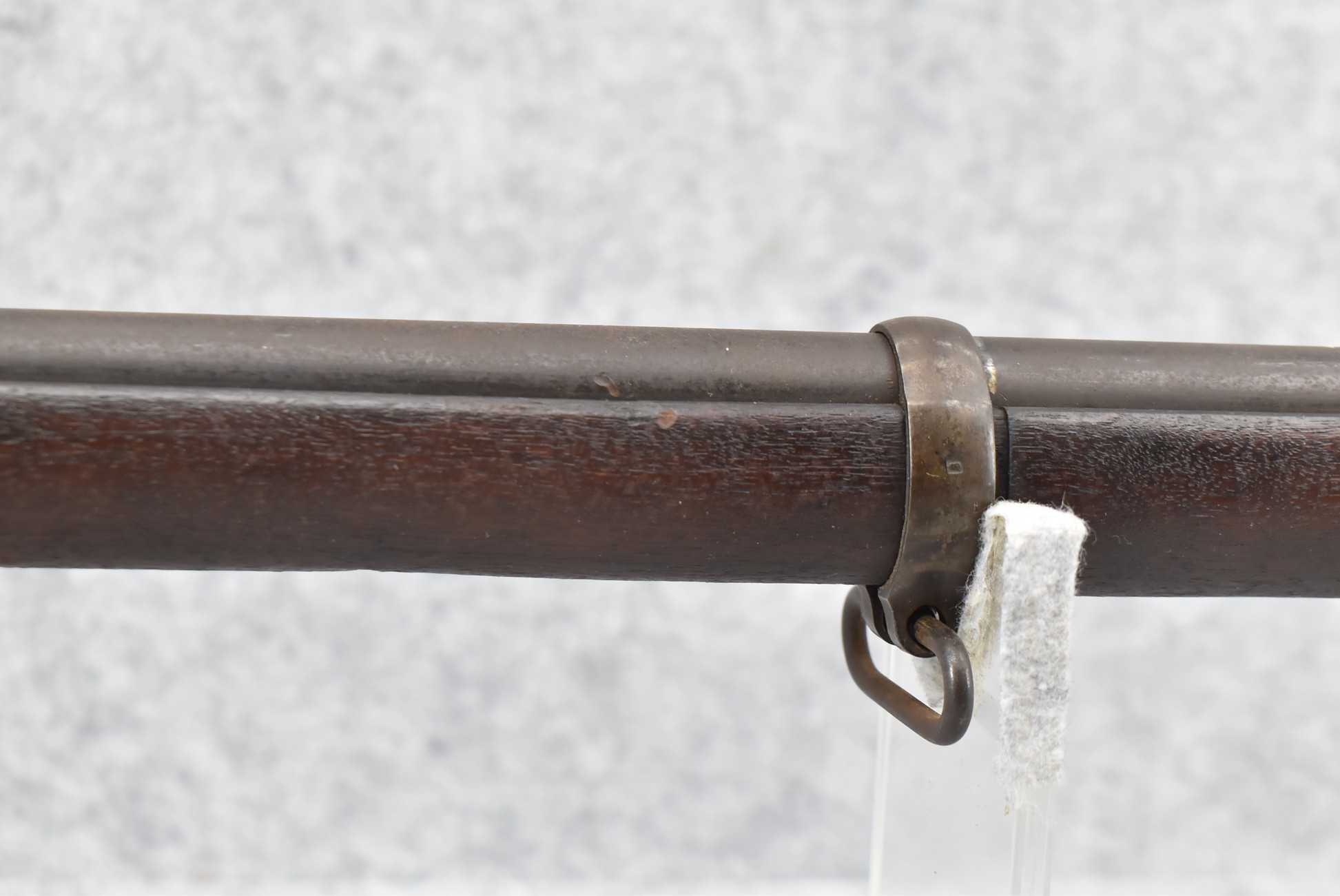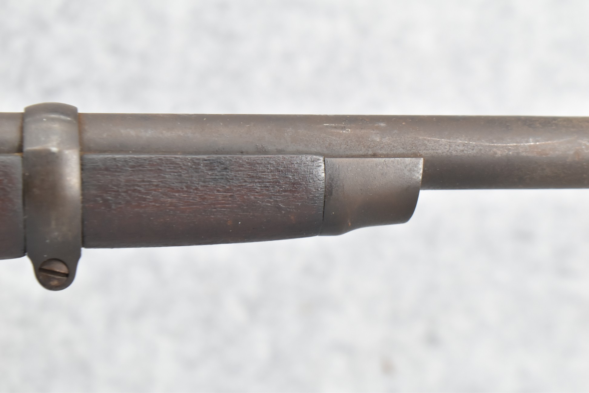 235. Remington – Mod. Rolling Block – 43 Spanish Cal. Single Shot Rifle – w/35 1/8” Barrel w/Front & Ladder Adj. Rear Sights – Gray Finish – w/Straight Grip Full Wood Military Stock Held on by 3 Barrel Bands w/Factory Metal Butt Plate – w/Sling Swivels – No Cleaning Rod