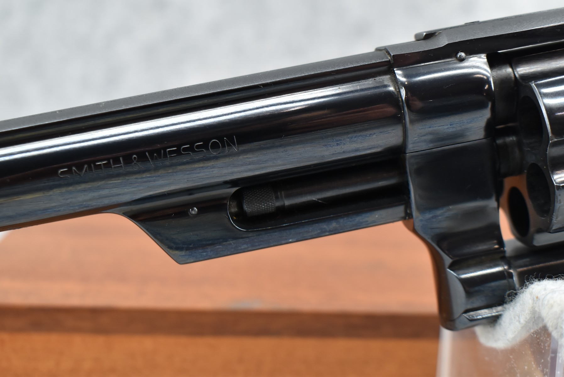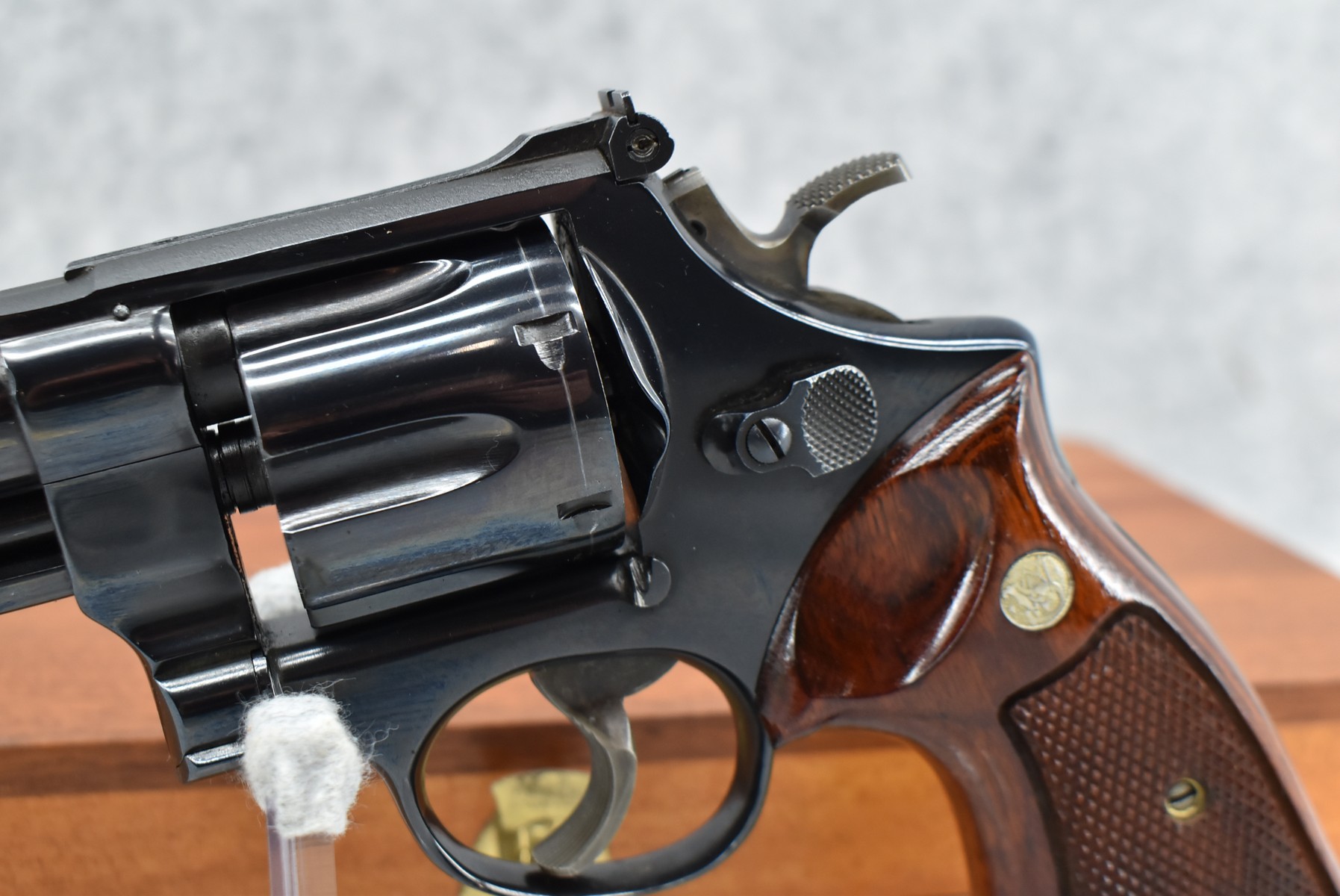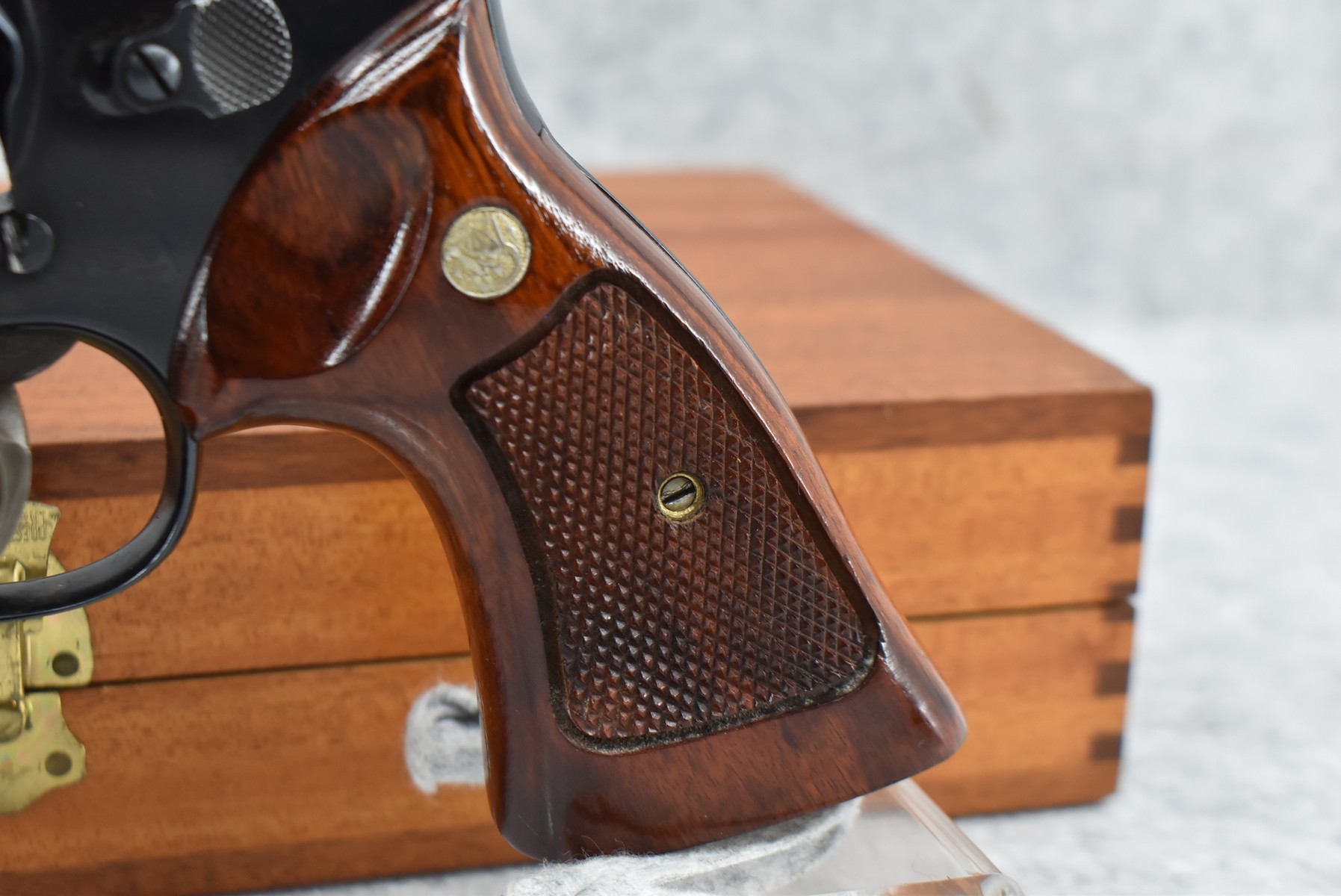 236R. Smith & Wesson – Mod. 25-2 Model 1955-Early Model – 45 ACP Cal. Double Action Revolver – w/6” Barrel w/Front Blade Sight & Rear Adj. Sight – Blued Finish – w/Factory Checkered Target Wood Grip w/S&W Medallion w/Target Trigger & Target Hammer (3T’s) – w/Wood Presentation Box & Cleaning Kit