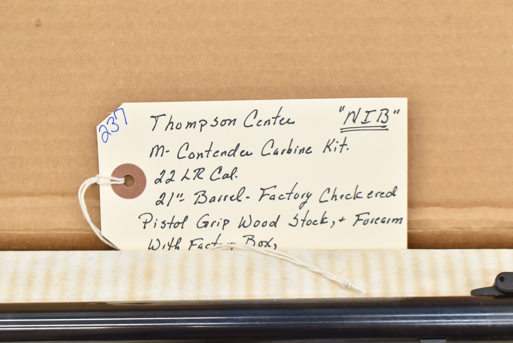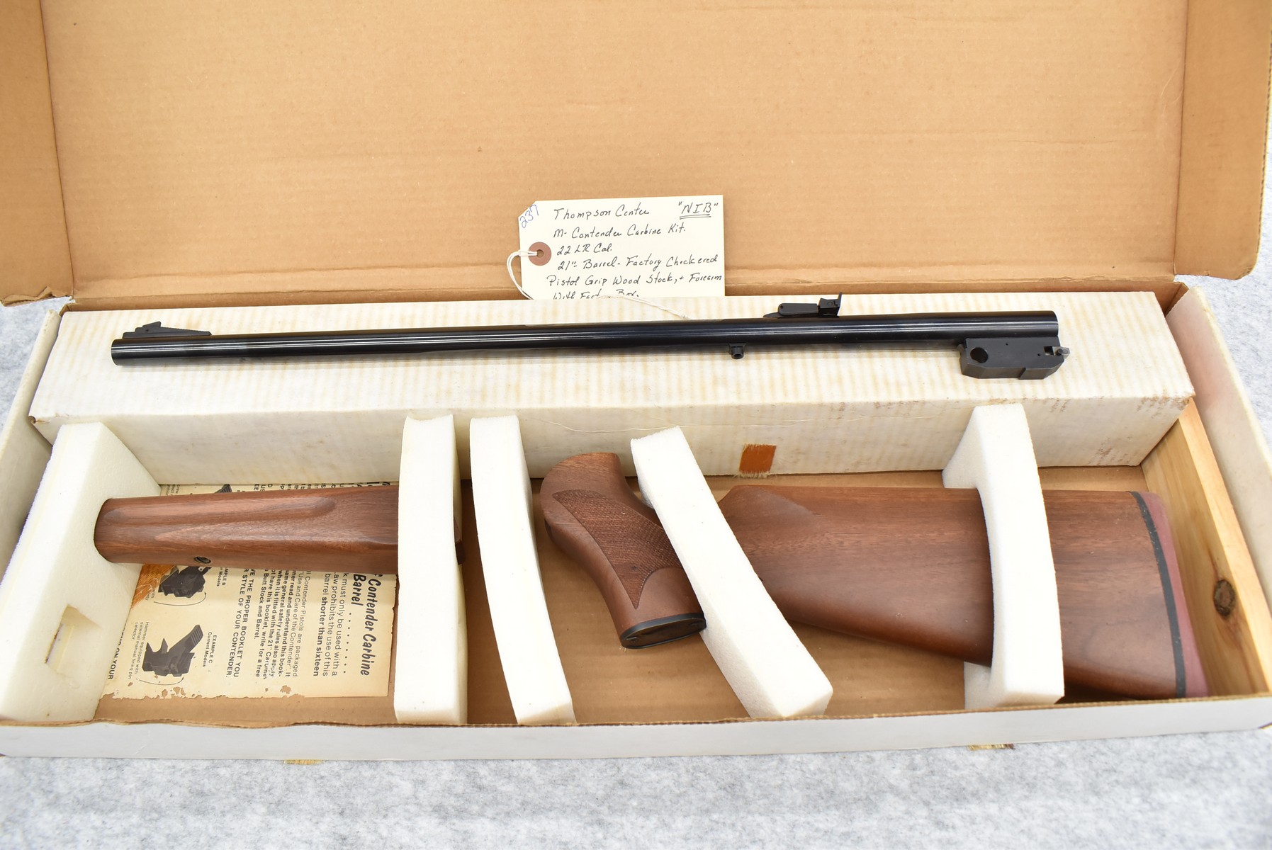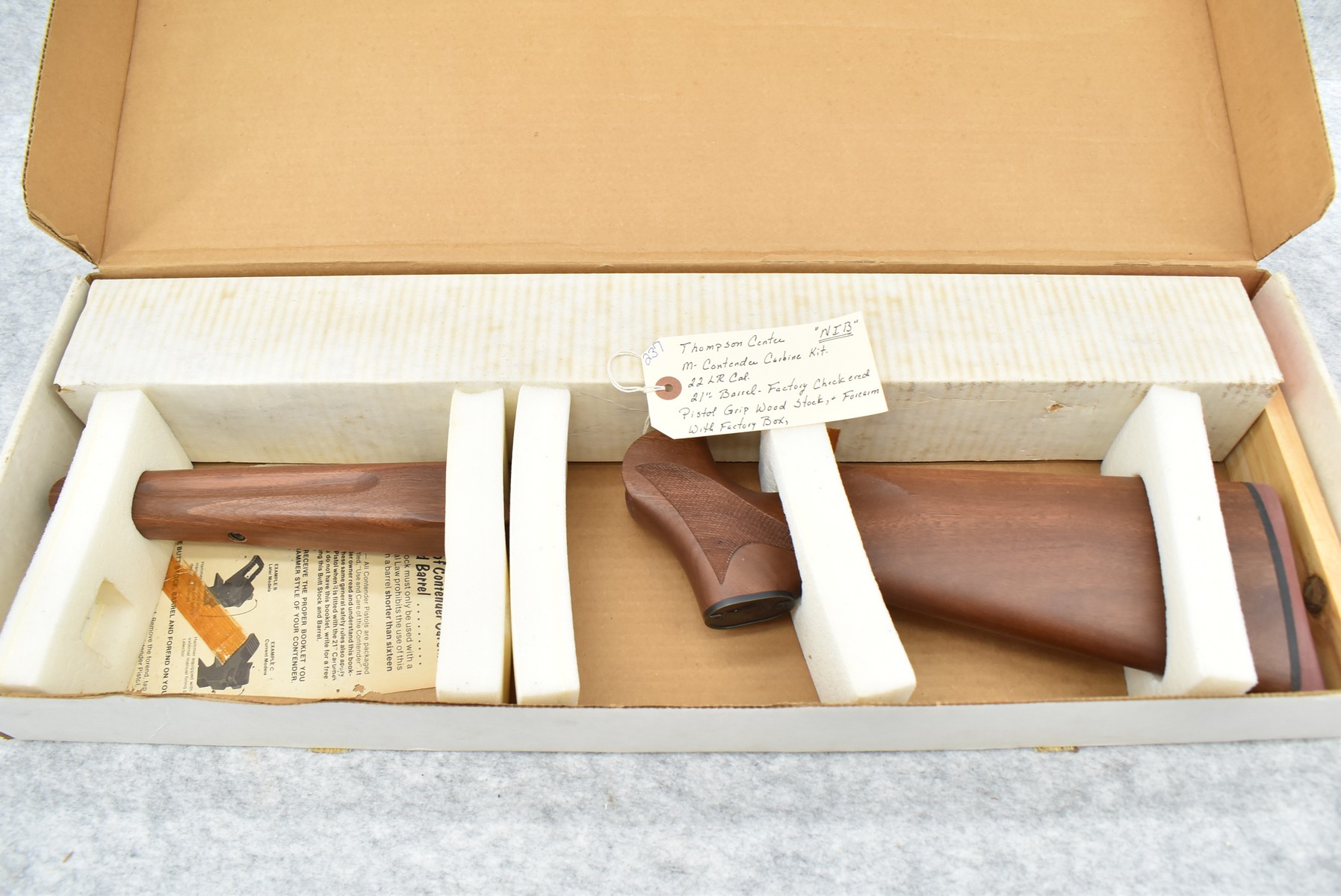 237. Thompson Center – Mod. Contender Carbine w/21” Kit – 22LR Cal. – w/Factory Checkered Pistol Grip Wood Stocks – New w/Factory Box – No Frame!
