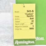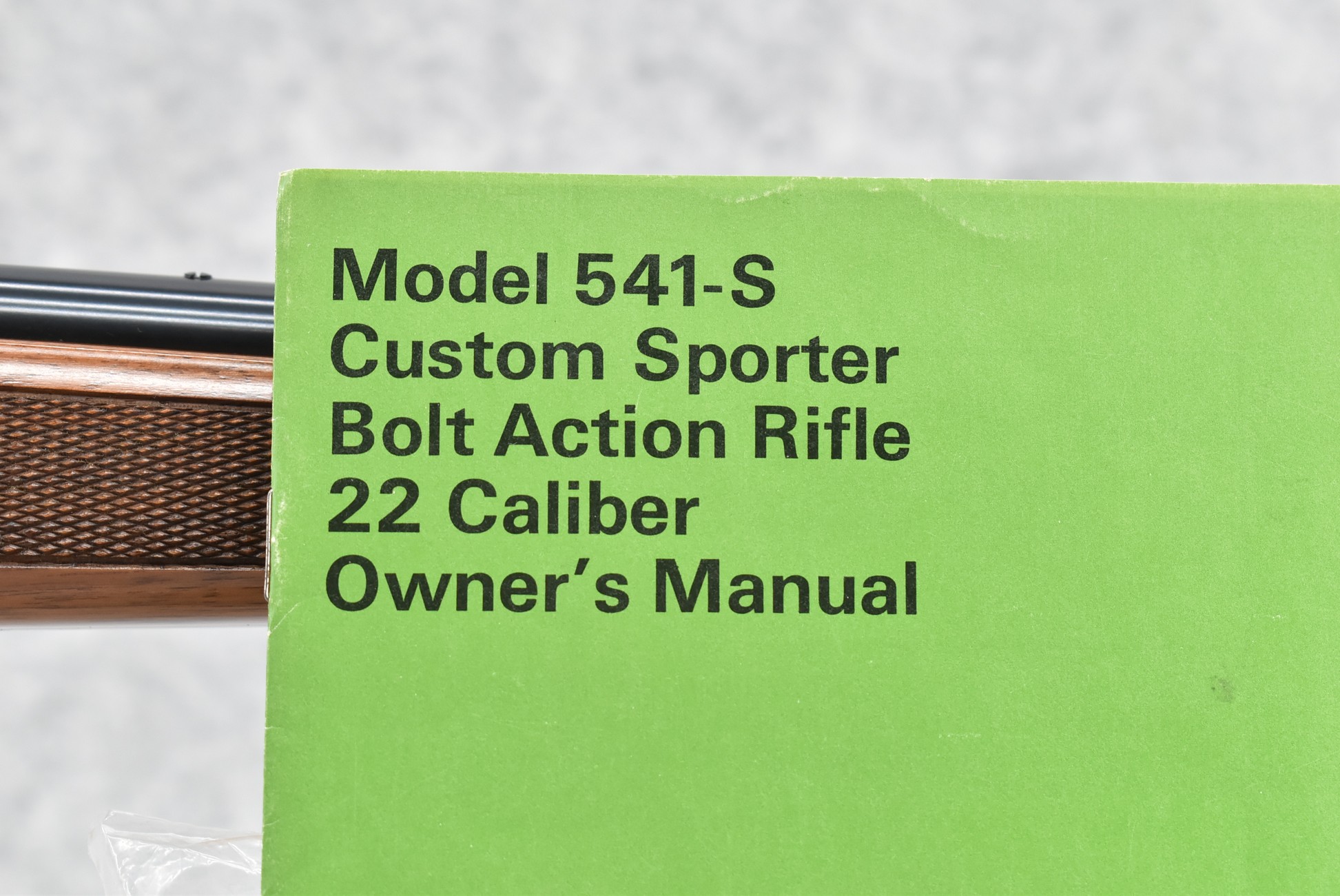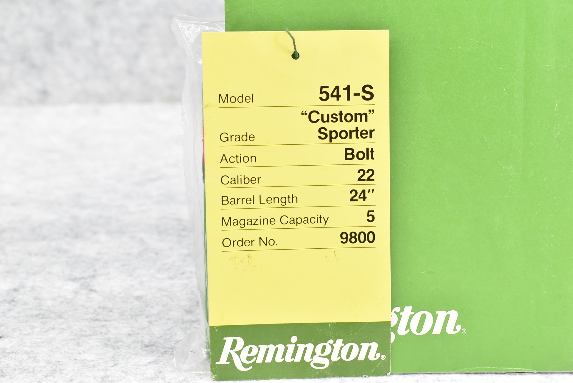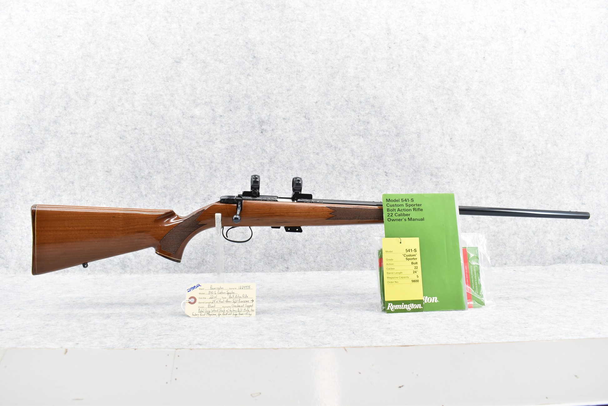 238R. Remington – Mod. 541-S Custom Sporter – 22 Cal. Bolt Action Rifle – w/24” Barrel w/Front and Rear Sight Provisions – Blued Finish – w/Checkered Capped Pistol Grip Wood Stock w/Factory Butt Plate – w/Factory 5-Round Magazine – w/2-Piece Redfield Scope Bases and Rings – w/Factory Manual and Hang Tag