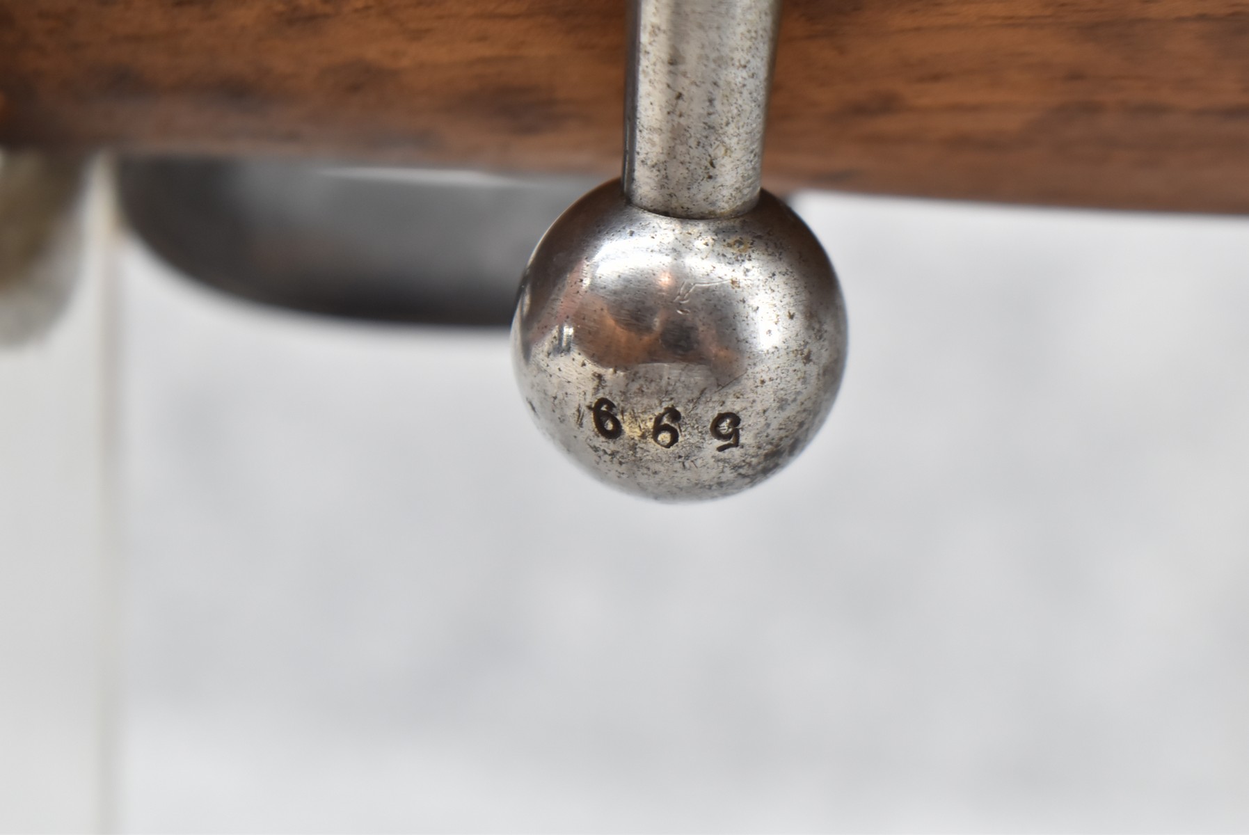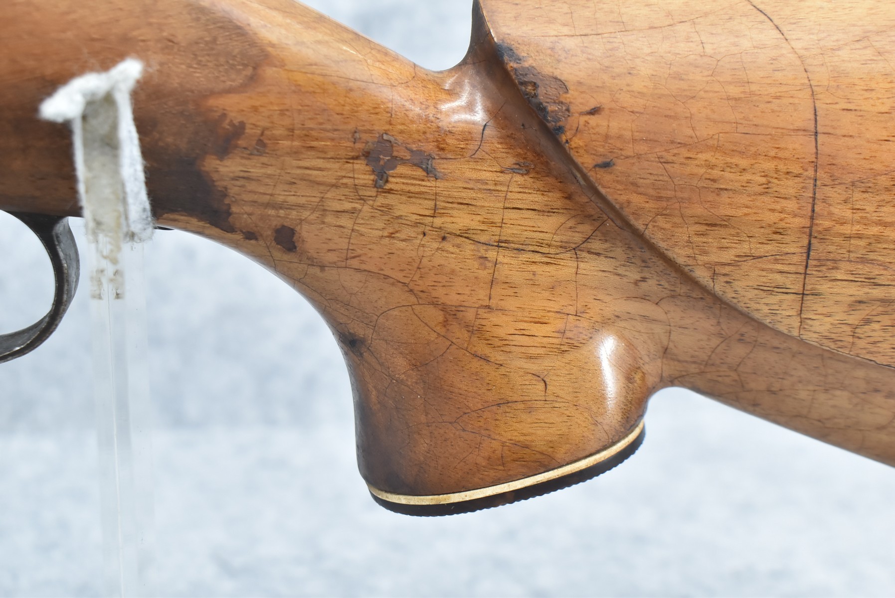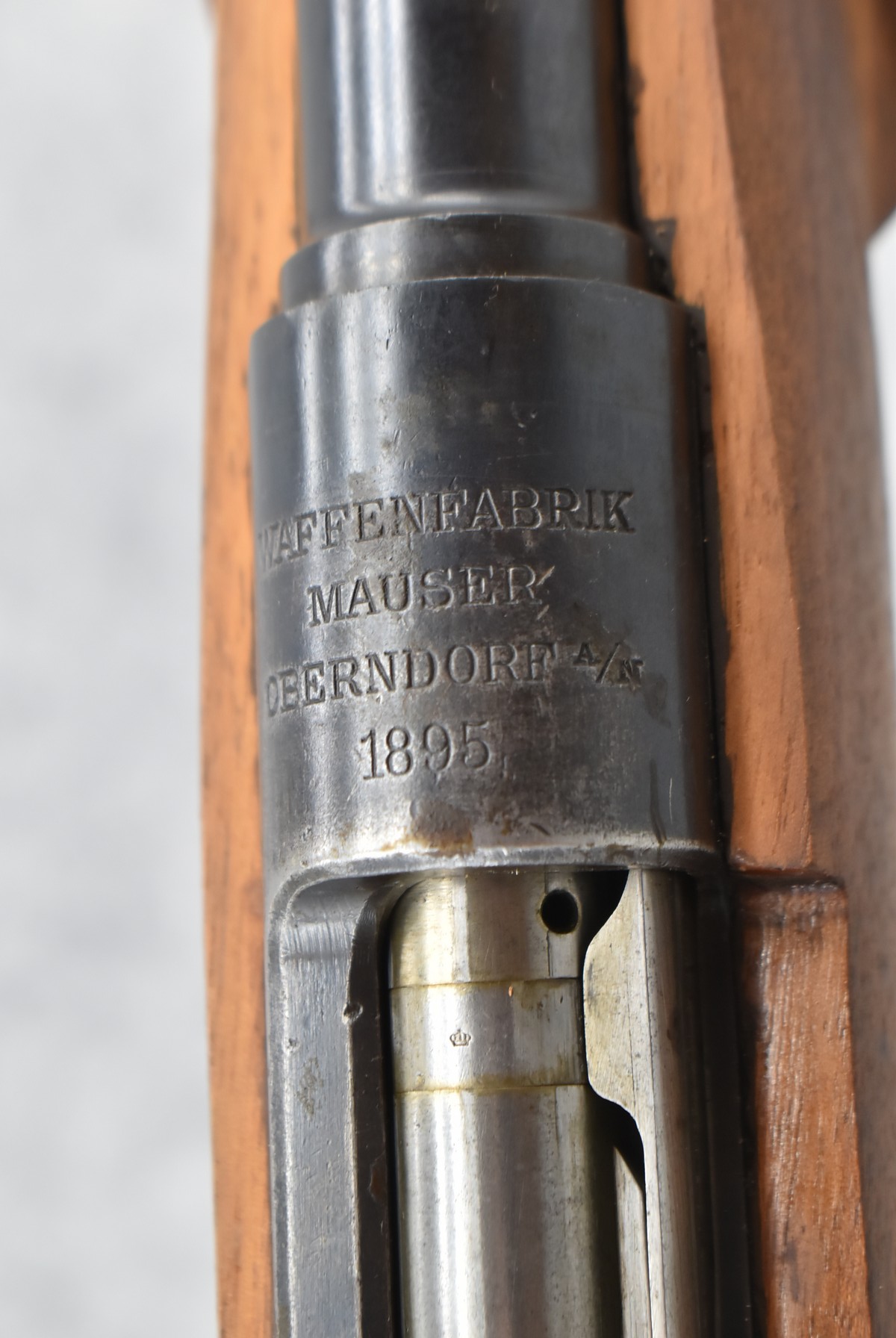 239R. Sporterized Military – Mod. 1895 – 38 Cal. Range Bolt Action Rifle – w/19” Barrel (Missing Sights) – Blued Finish – w/Custom Smooth Wood Pistol Grip Custom Stock w/Raised Cheek Piece – w/Rear Receiver Adj. Peep Sight – Note: Missing Trigger