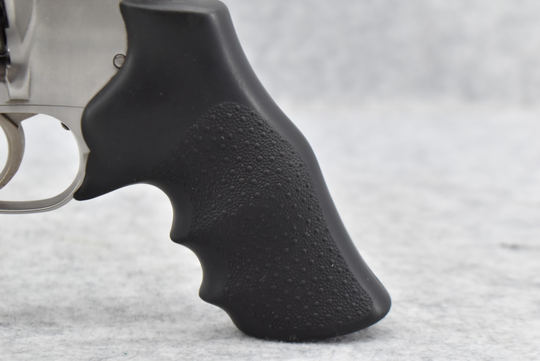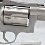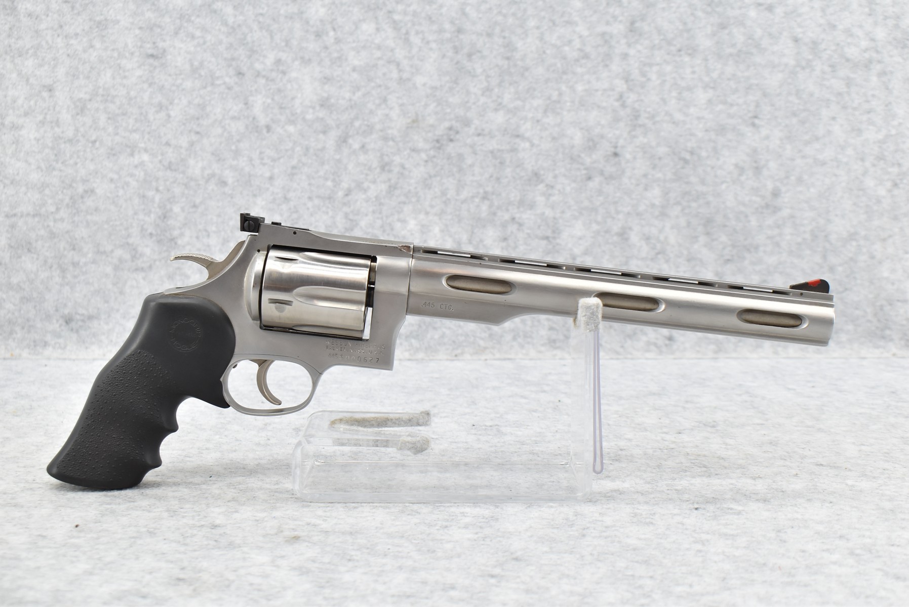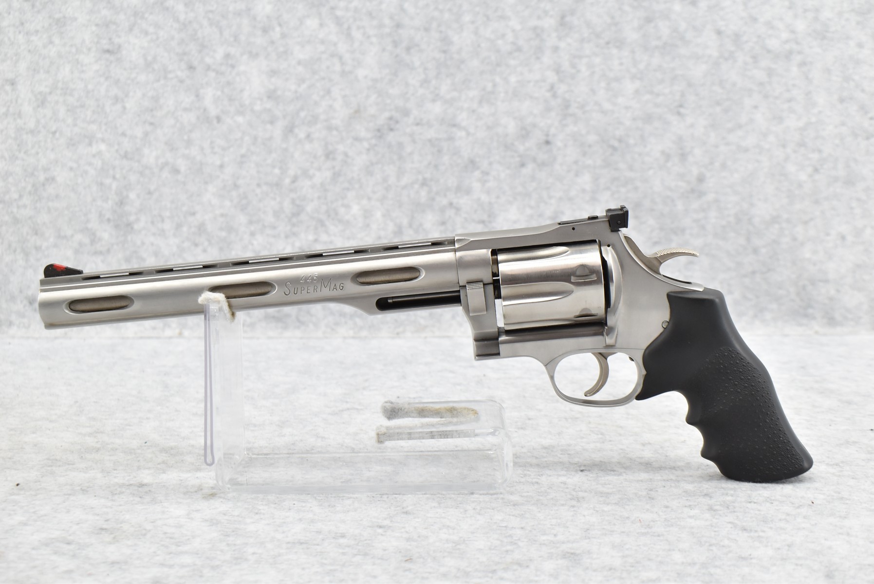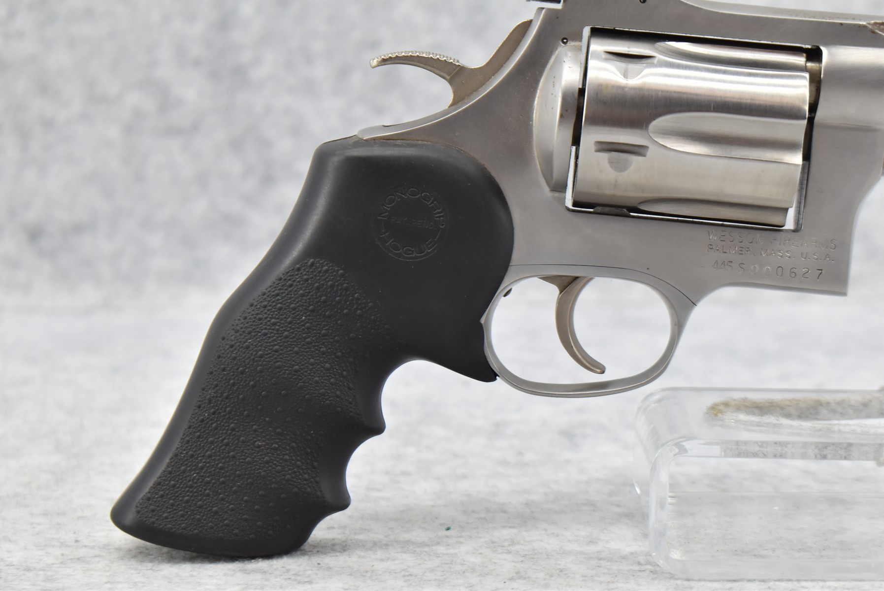 23R. Dan Wesson Arms – Mod. 445 Super Mag – 445 Super Mag. Cal. Double Action Revolver – w/10” Vent Rib Barrel w/Red Ramp Blade Front and Adjustable Rear Notch Sights – Stainless Finish – w/Hogue Monogrip Black Molded Grips – w/Slotted Barrel Shroud – Manufactured Between 1994 and 1995 Only