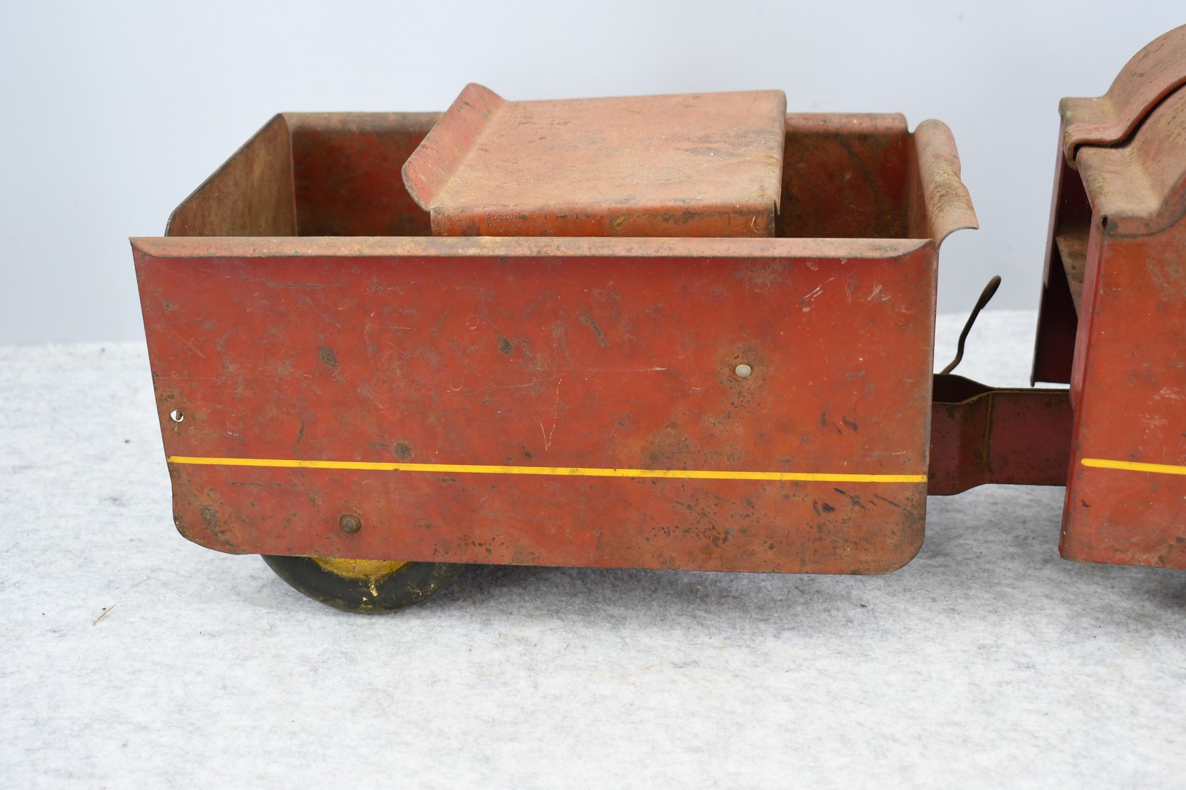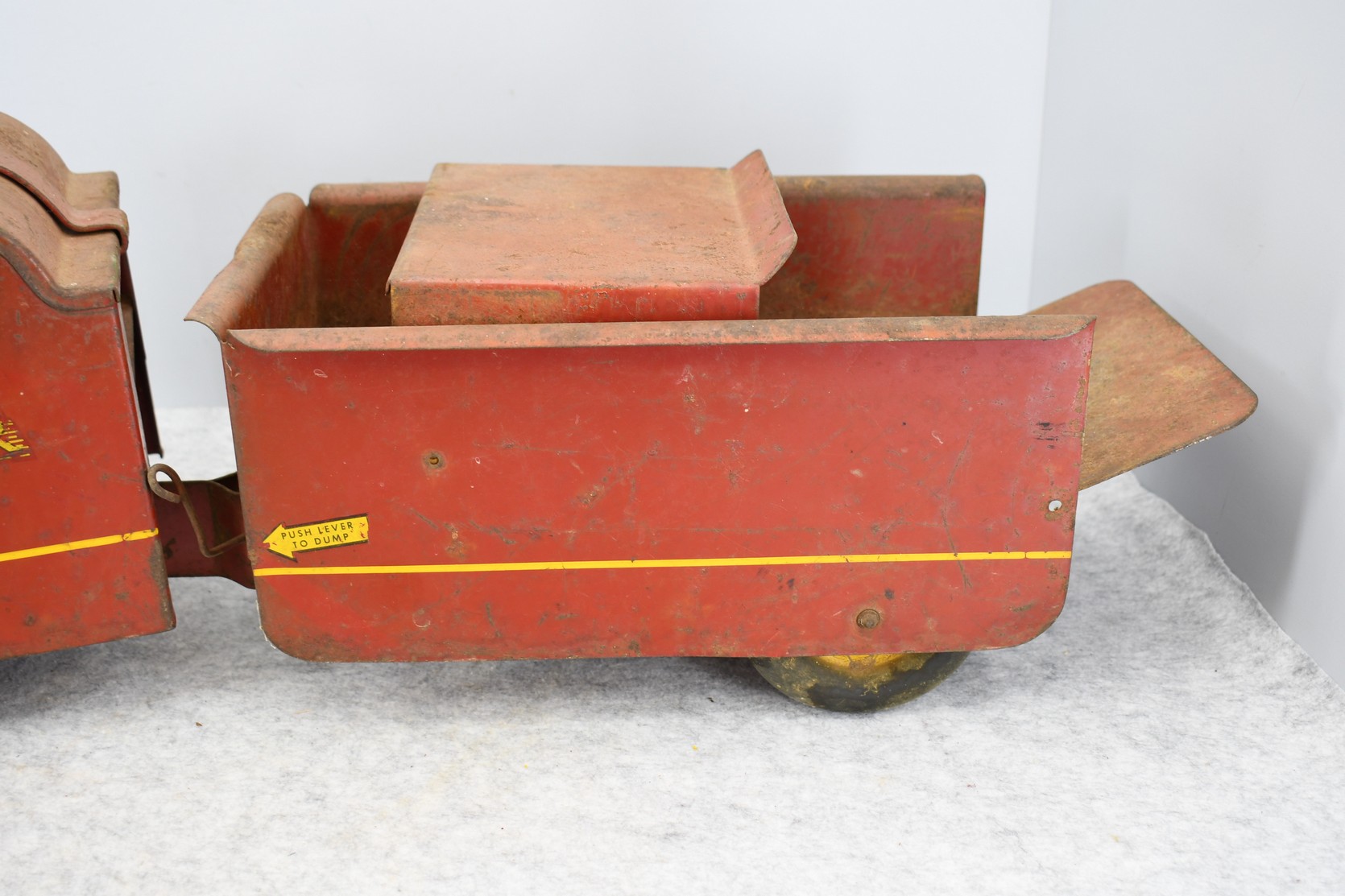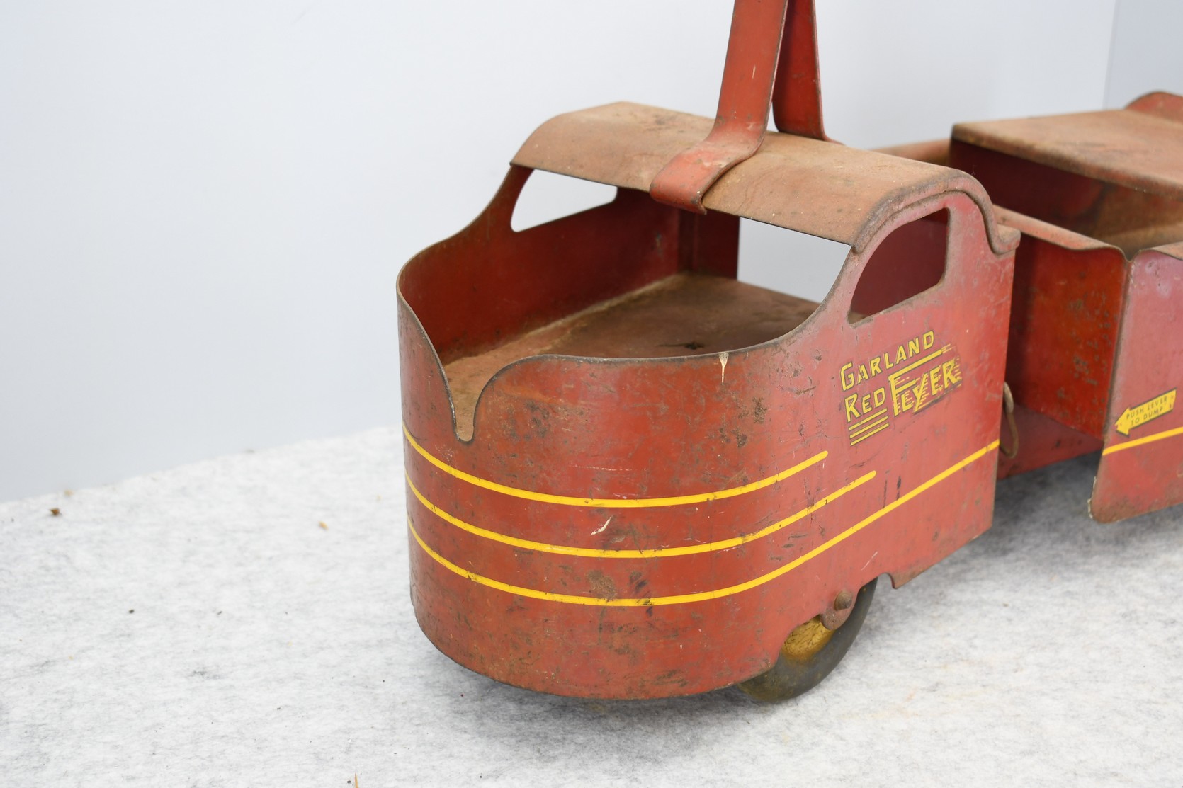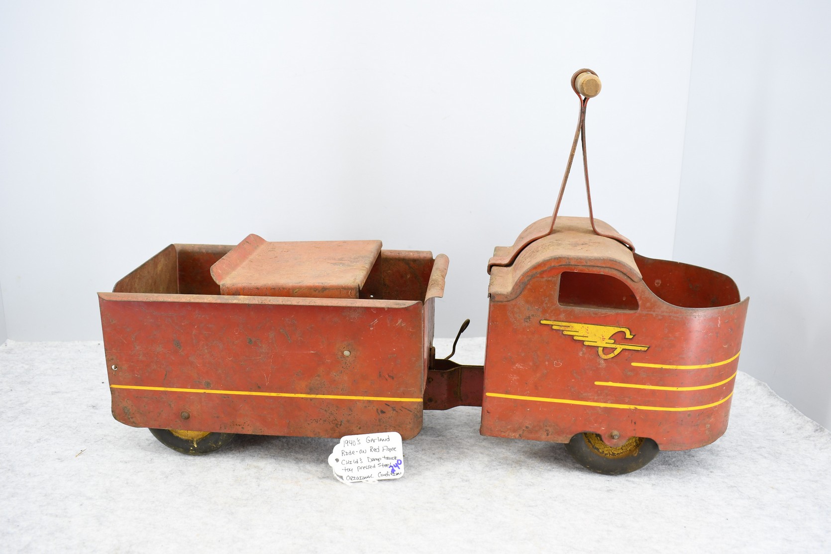 240. 1940 Garland Ride on Red Flyer Child’s Pressed Steel Dump Truck – In Original Condition