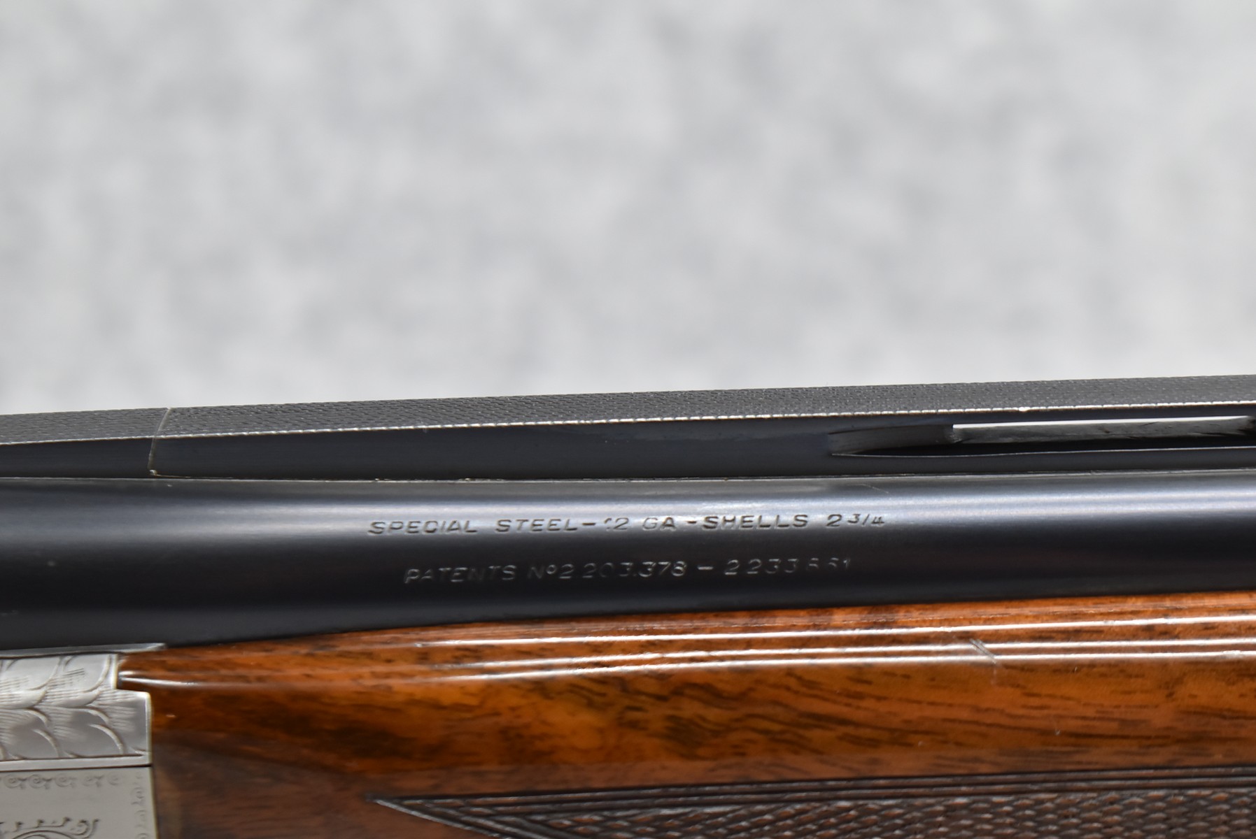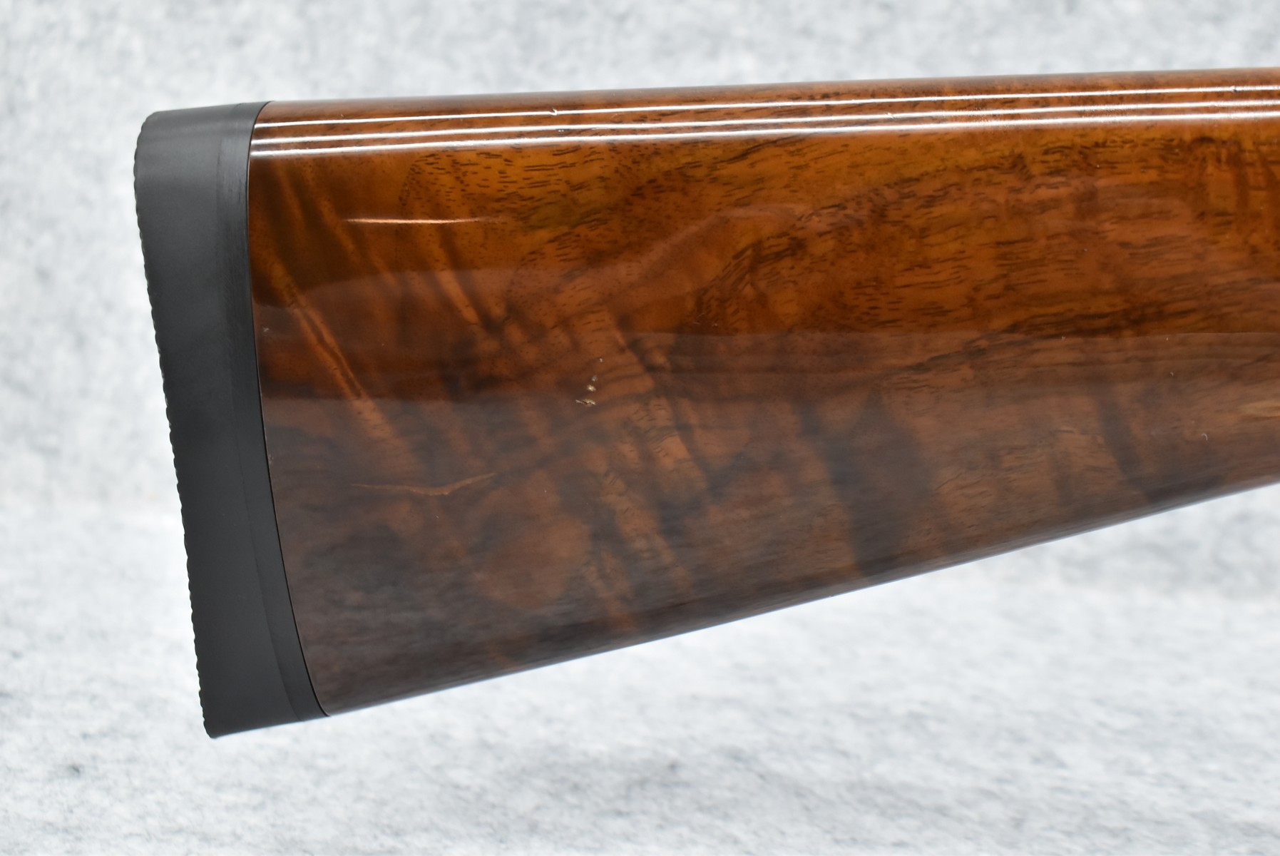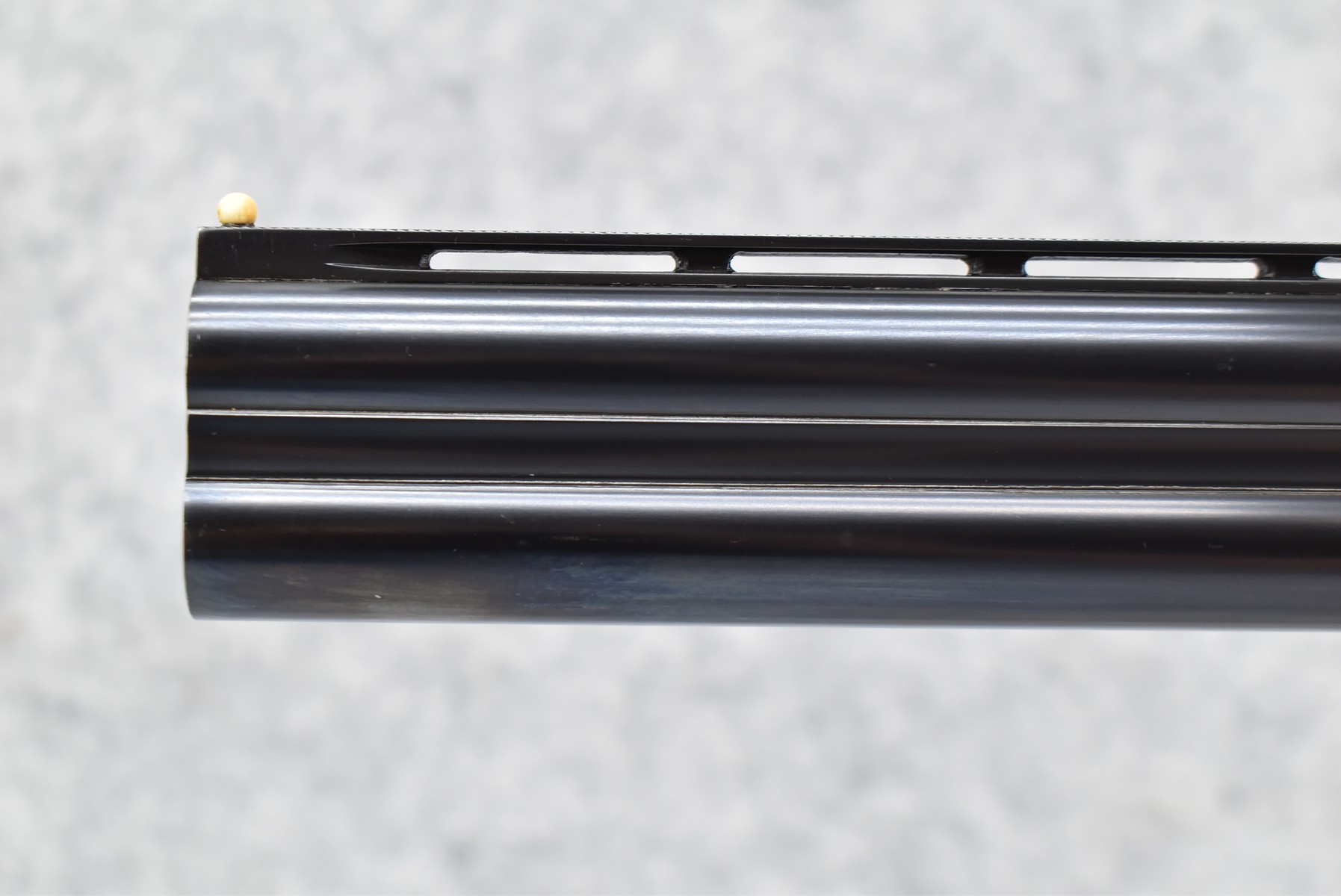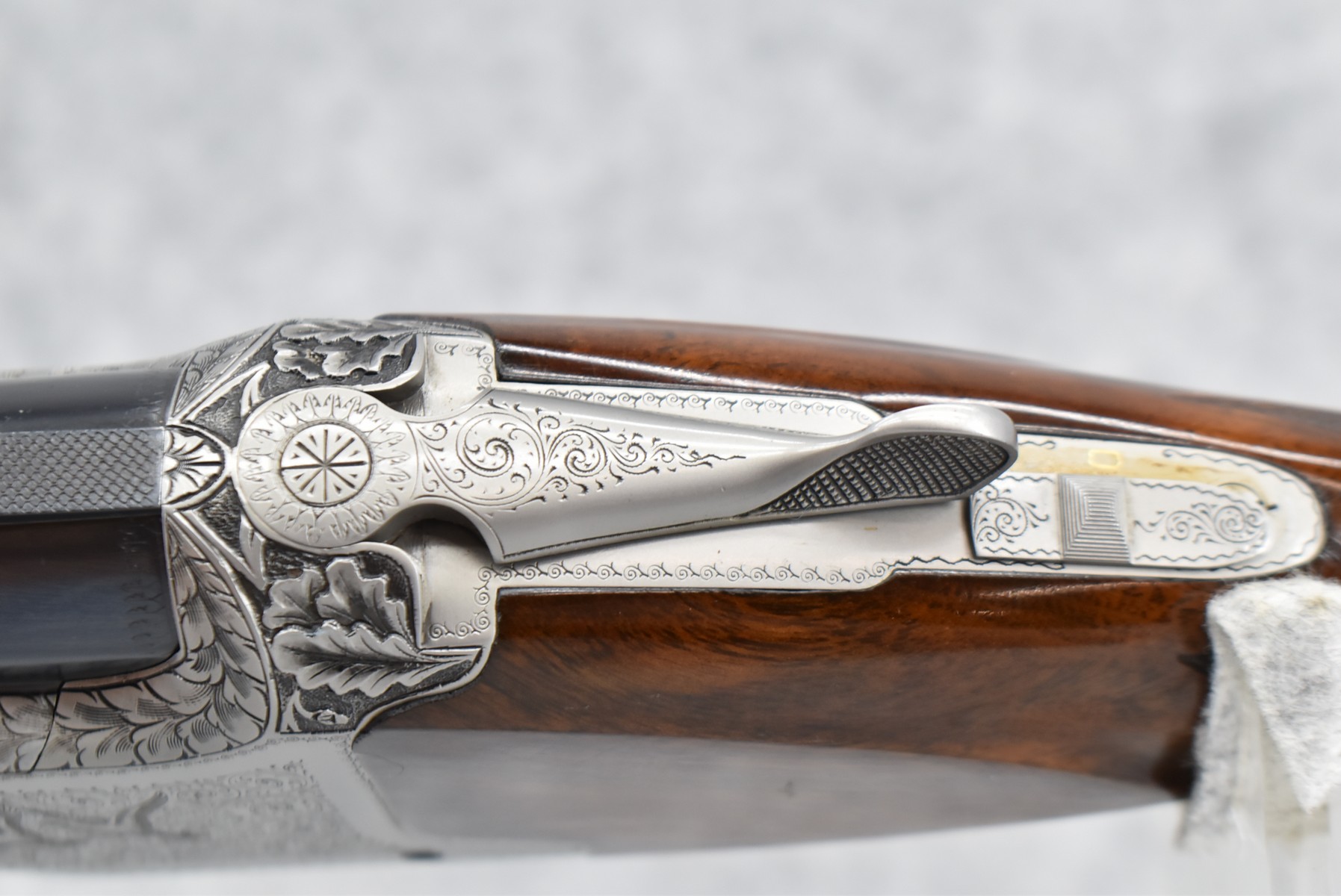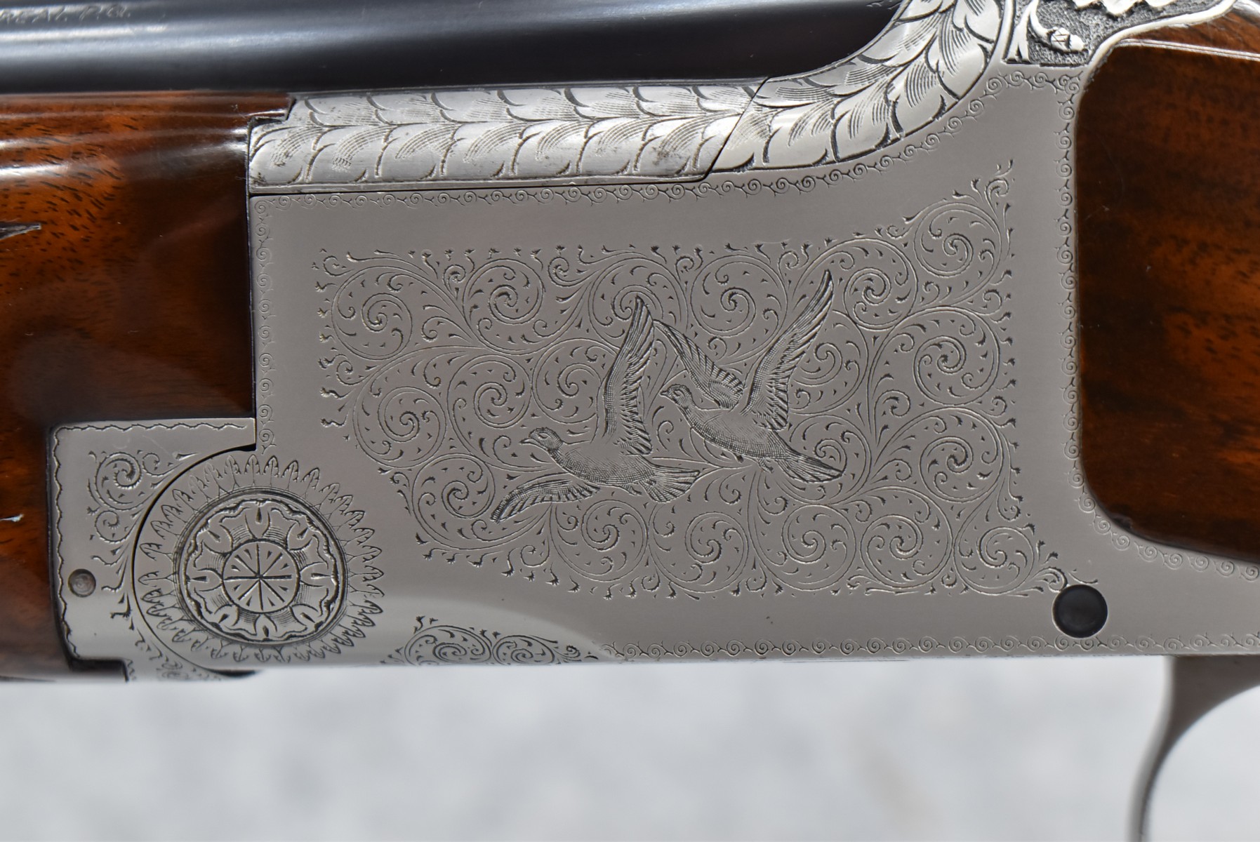240R. Browning – Mod. Superposed Pigeon Grade – 12ga. 2 ¾” Over-Under Shotgun – w/28” Full/IM Choked, Vent-Rib Barrels w/Double Ivory Bead Sights – Blued & Silver Gray Receiver Finish – Frame & Metal Parts Are Silver Gray Finished & Engraved w/2 Flying Pigeons on Either Side, Surrounded by Fine Scroll Engraving on Boths Sides, Bottom, Tangs, Trigger Guard & Forearm Latch – w/Deluxe Round Knob Fine Line Checkered Nicely Figured Wood Stocks w/Pachmayr Butt Pad – w/Single Select Trigger