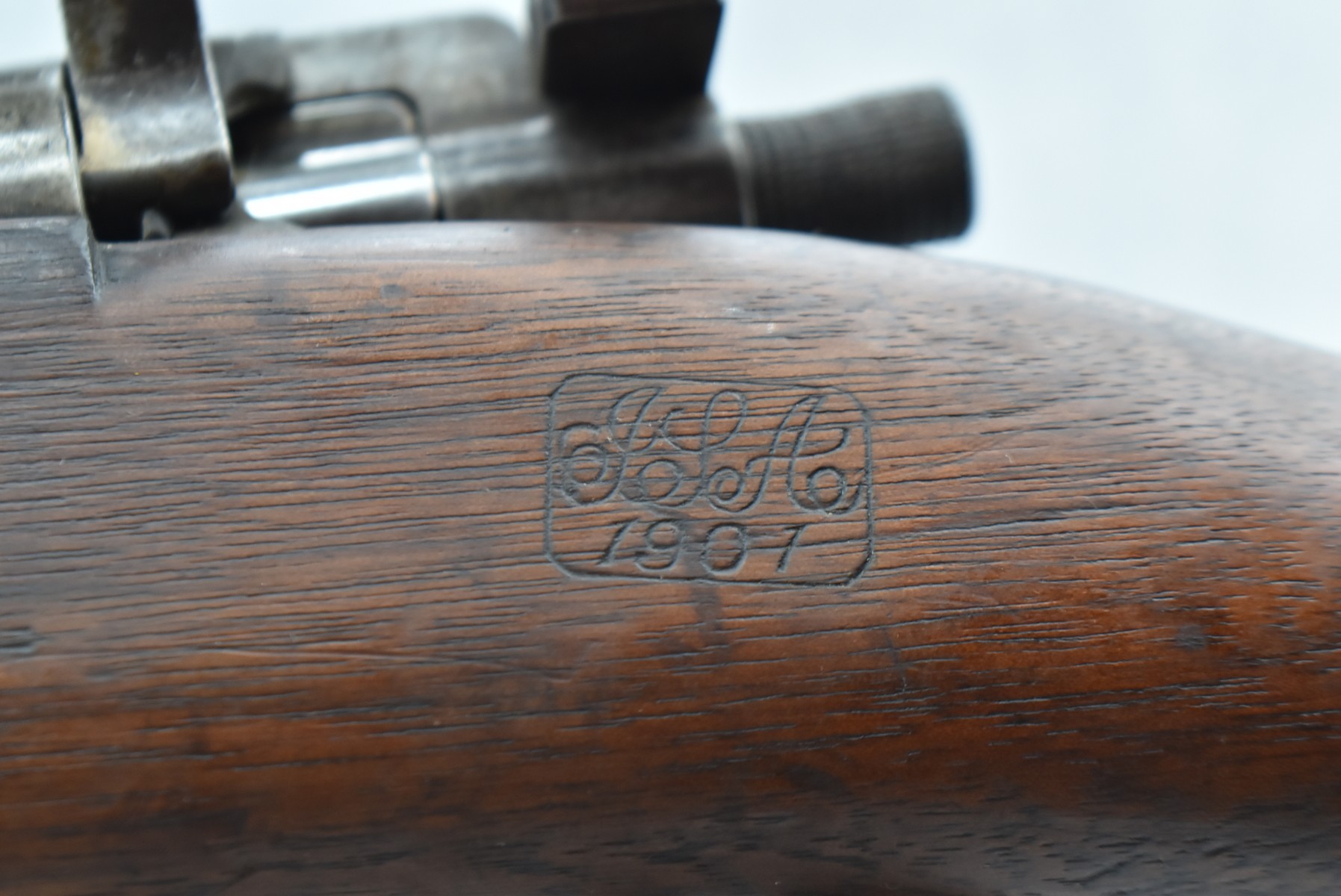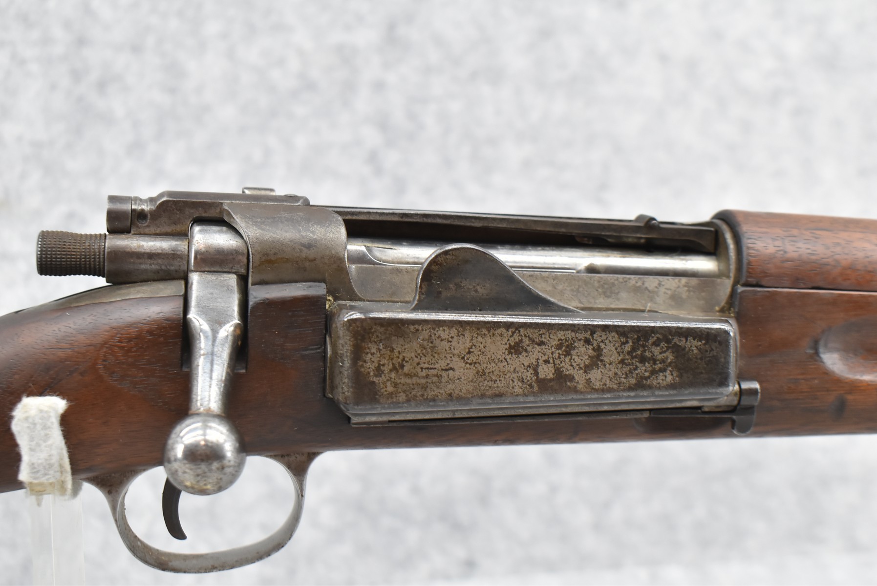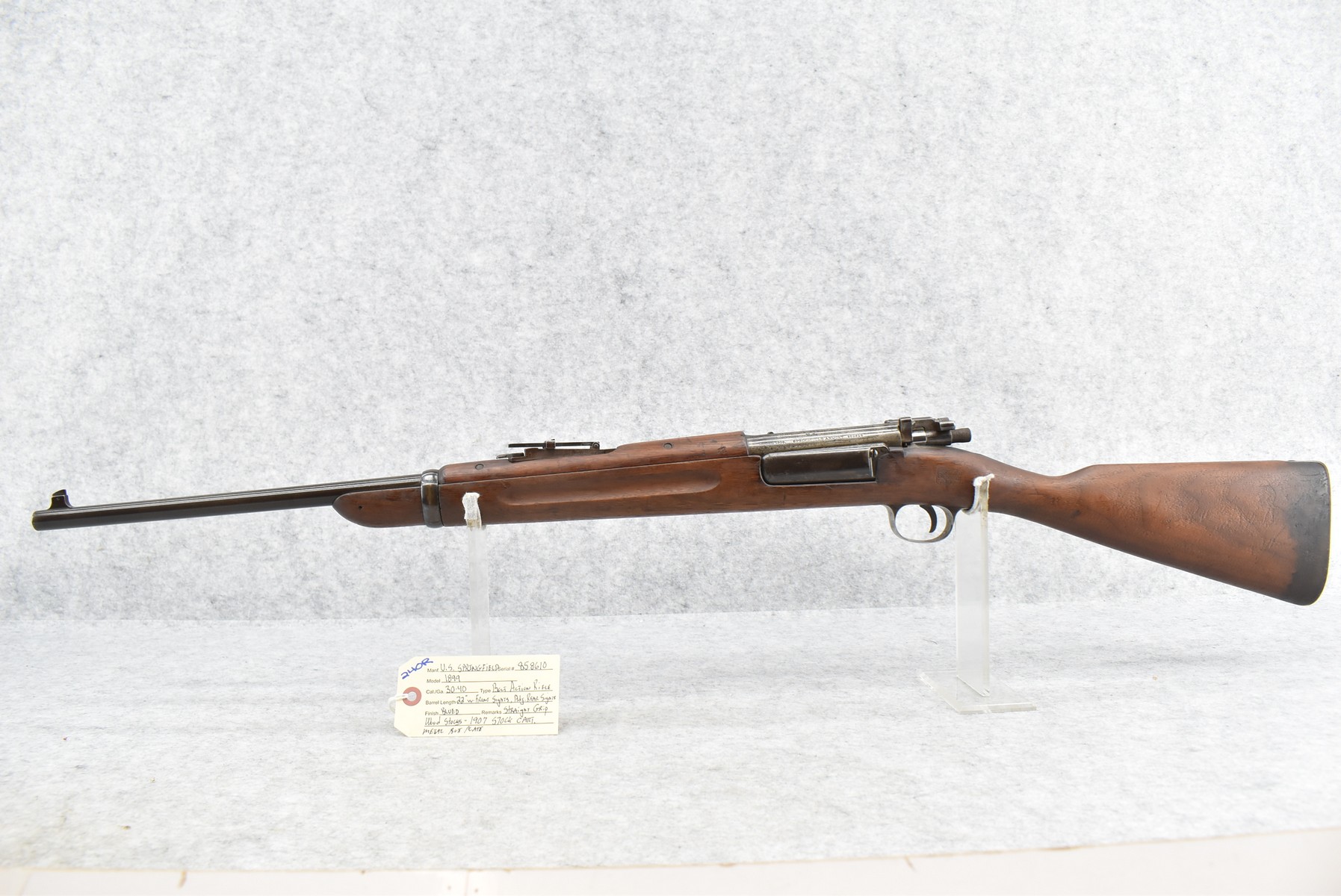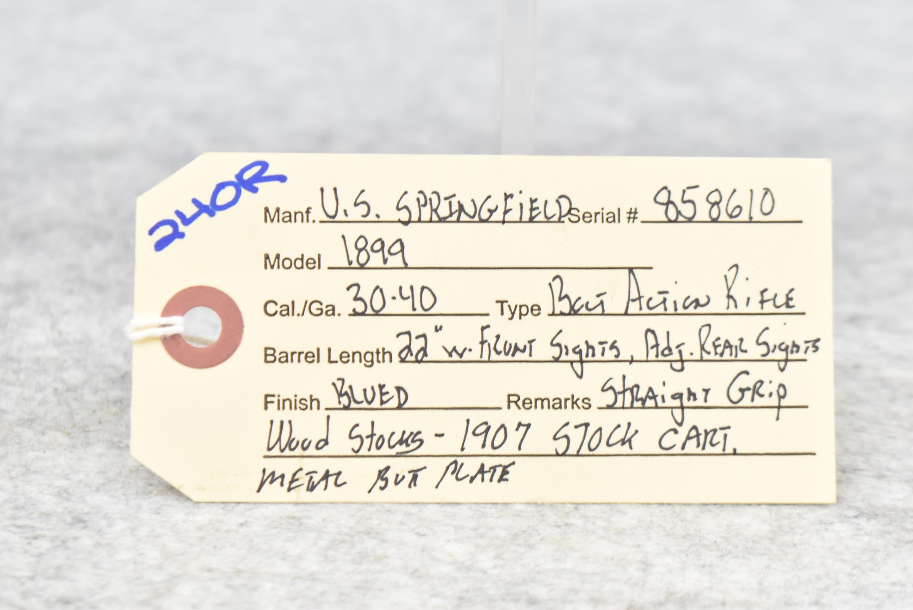240R. U.S. Springfield – Mod. 1899 – 30-40 Cal. Bolt Action Rifle – w/22” Barrel w/Front Sights & Adj. Rear Sights – Blued Finish – w/Straight Grip Wood Stocks w/Metal Butt Plate – w/Strong 1901 Stock Cartouche
