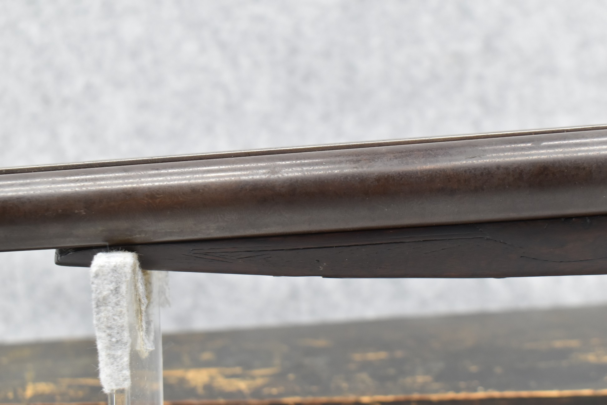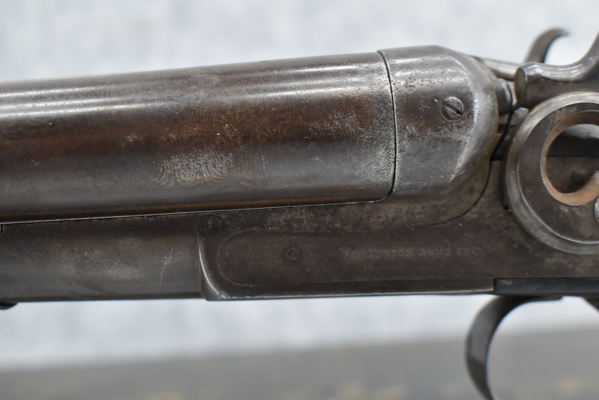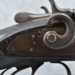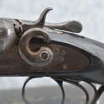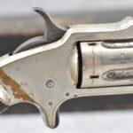 242. Early Antique Remington – 12ga. Hammer Double Shotgun – w/Cut Down 20” Barrels – w/Checkered Round Knob Pistol Grip Wood Butt Stock w/Worn Factory Butt Plate & Wooden Forearm – Accompanying This Gun is a J.M. Marlin Mod. No. 32 Standard 32 Rim Cal. Single Action Spur Trigger Revolver w/3” Barrel – Nickel Finish w/Factory Hard Rubber Checkered Grips – This Pair of Guns Are Fitted in a Wood Violin Style Wood Case – Unique Period Set Up