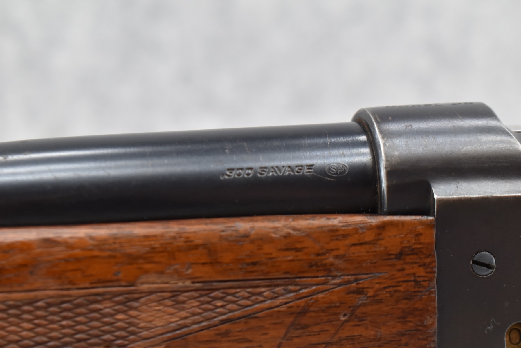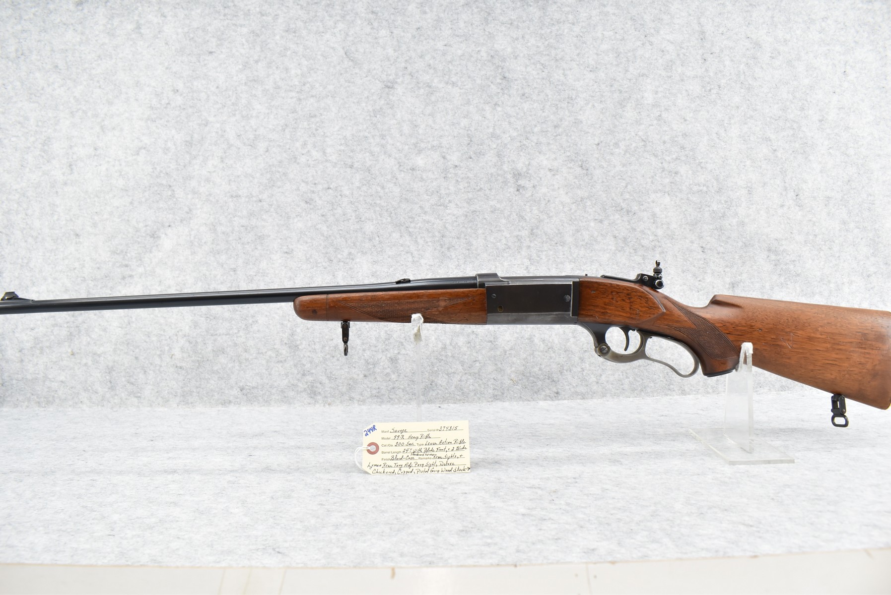244R. Savage – Mod. 99-R Heavy Rifle – 300 Sav. Cal. Lever Action Rifle – w/24” Barrel w/Blade Front & 2 Blade Rear Sights w/Correct Lyman Rear Tang Adj. Peep Sight – Blued Finish w/Case Hardened Lever – w/Deluxe Checkered Capped Pistol Grip Wood Stocks w/Savage Metal Butt Plate – w/Sling Swivels