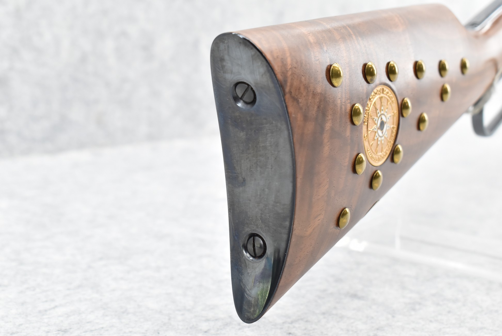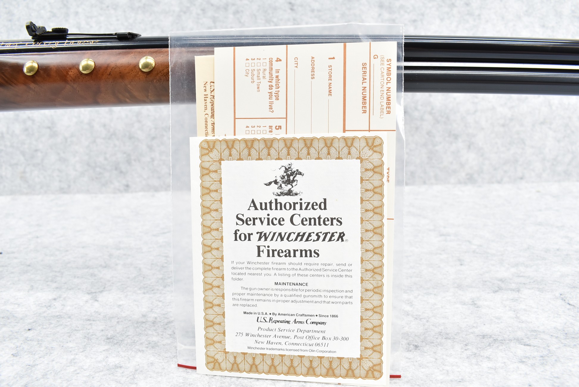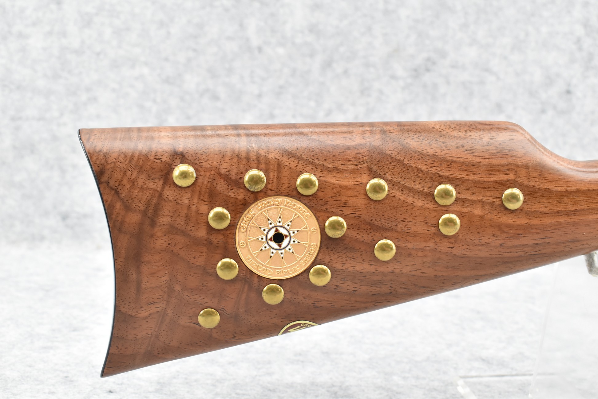 245R. Winchester – Mod. 94 Chief Crazy Horse Commemorative – 38-55 Win. Cal. Lever Action Rifle – w/24” Barrel w/Beaded Front and Adjustable Semi-Buckhorn Rear Sights – Blued Finish w/Case Hardened Frame – w/Straight Grip Wood Stocks w/Crescent Metal Butt Plate – Unfired w/Factory Box, Sleeve and Manual – 19,999 Manufactured in 1983