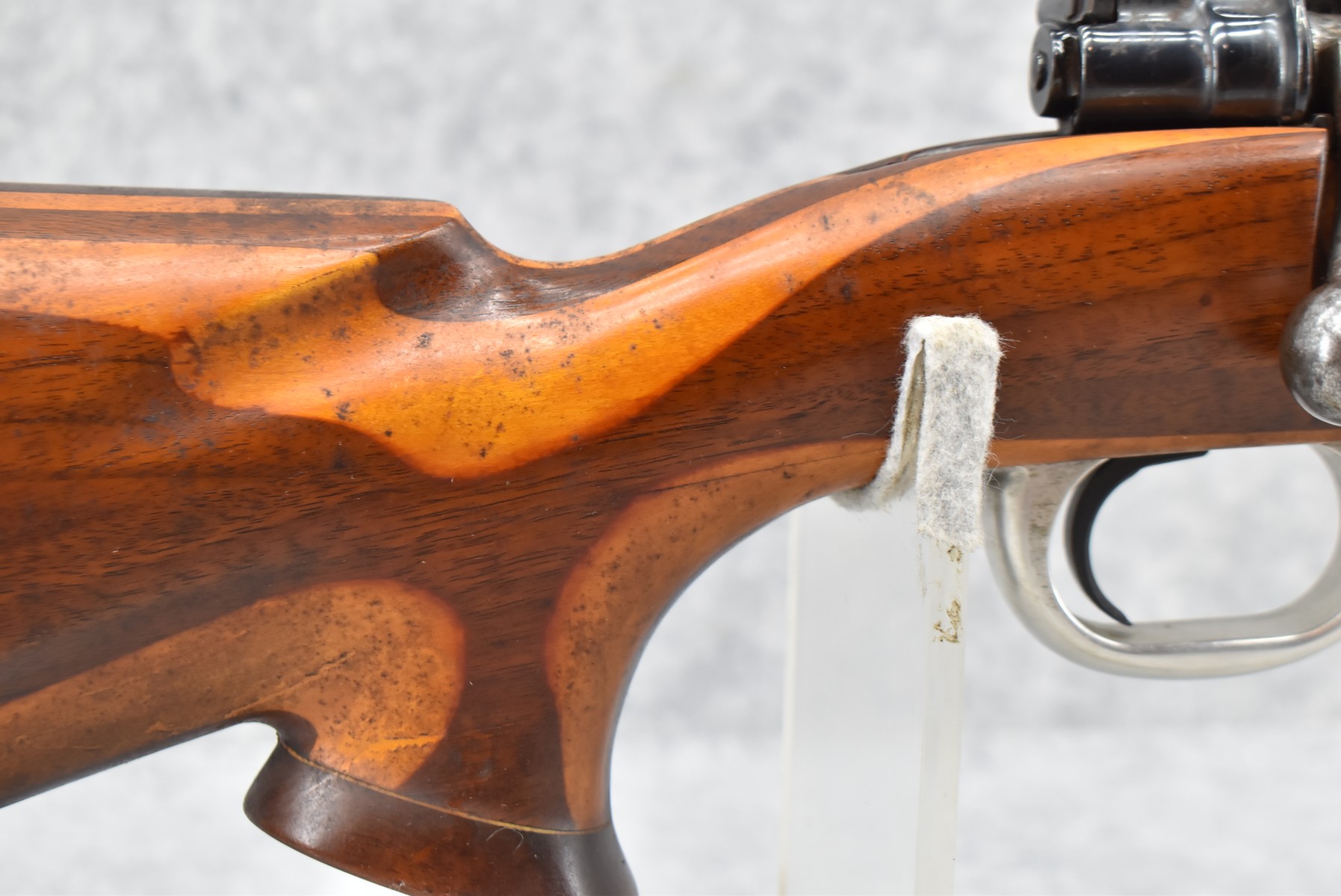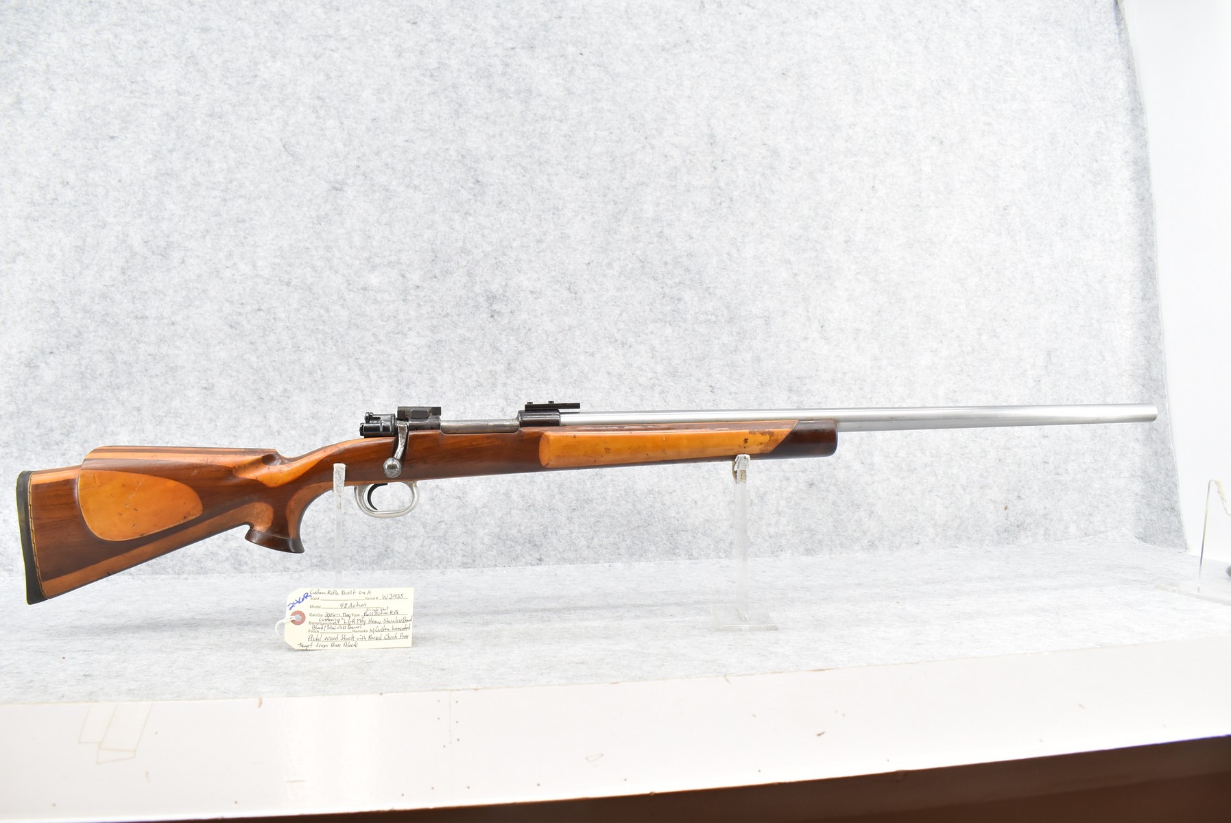 246R. Custom Rifle – Built on a Mod. 98 Action – 300 Win. Mag. Cal. Single Shot Bolt Action Rifle – w/Custom 28” LGR Mfg. Heavy Stainless Finish Barrel – Blued Finish Receiver – w/Custom Laminated Pistol Wood Stock w/Raised Cheek Piece – w/Target Scope Base Blocks