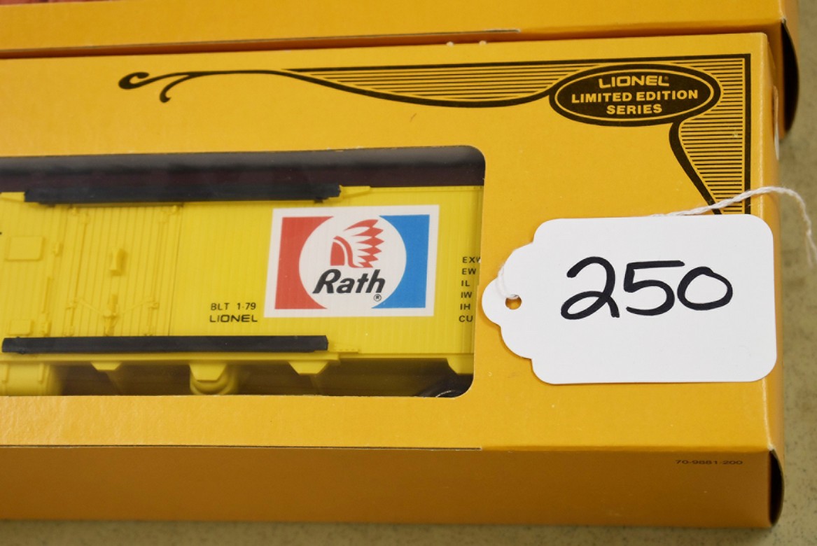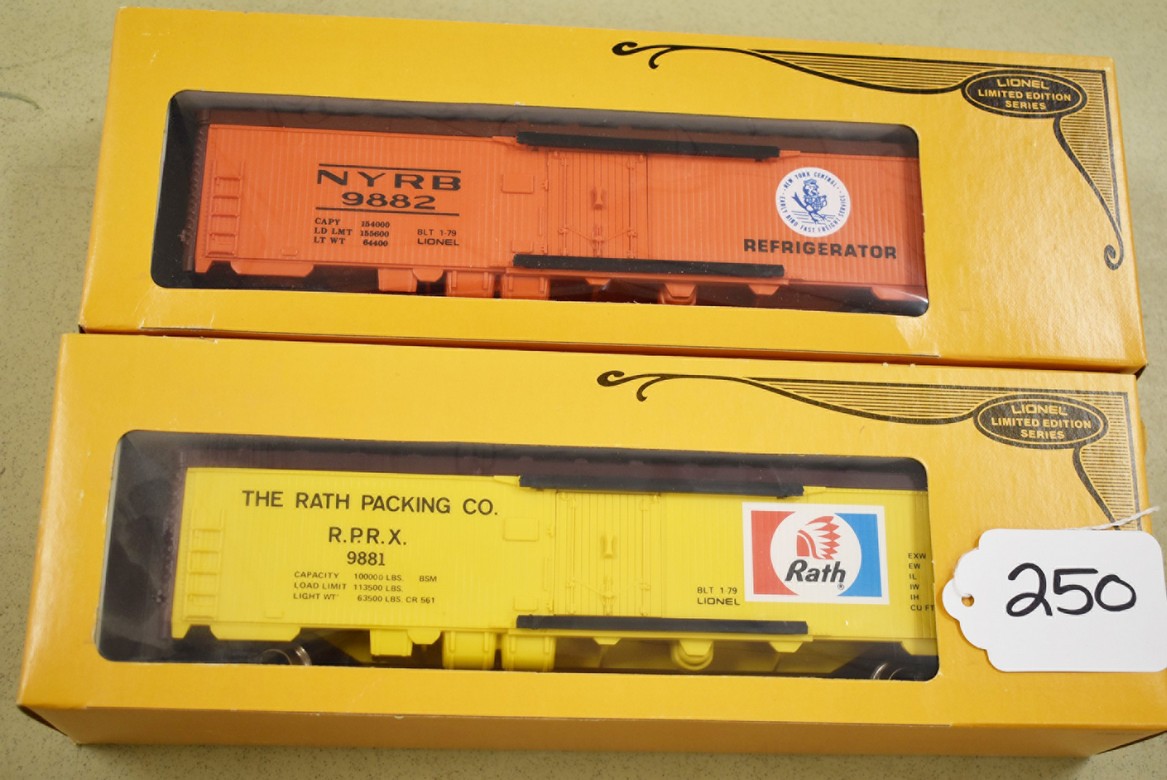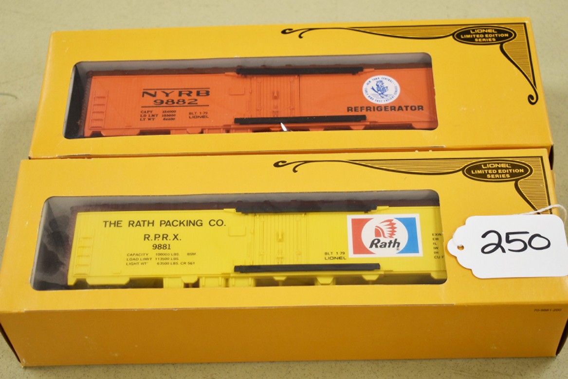 250. Pair of Lionel Limited Edition Train Cars – Including NYC Central Reefer 6-9882 and Limited-Edition Series Rath Packing Reefer Car 6-9881 – Both w/Boxes