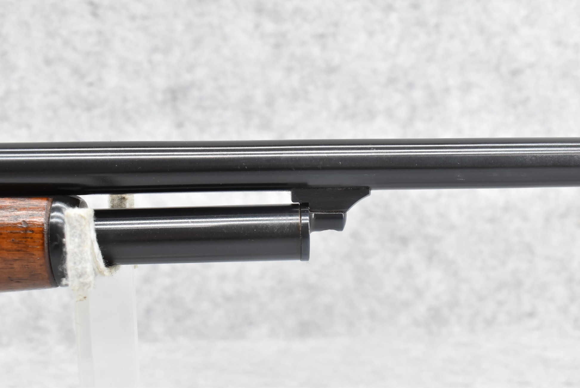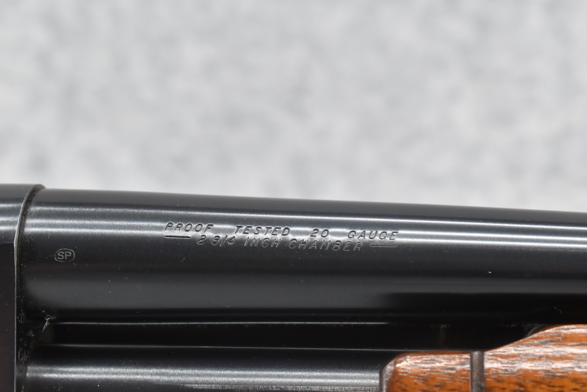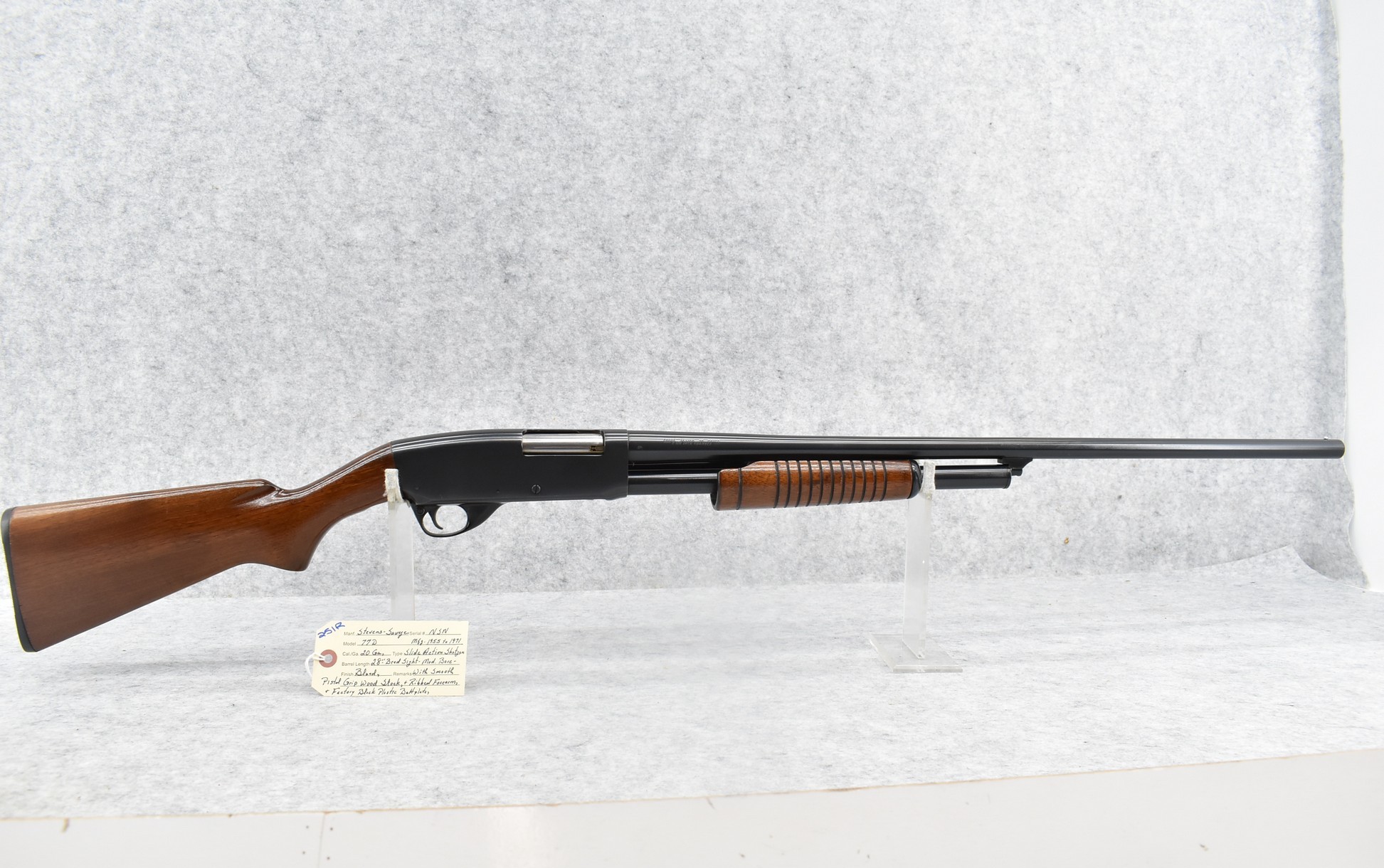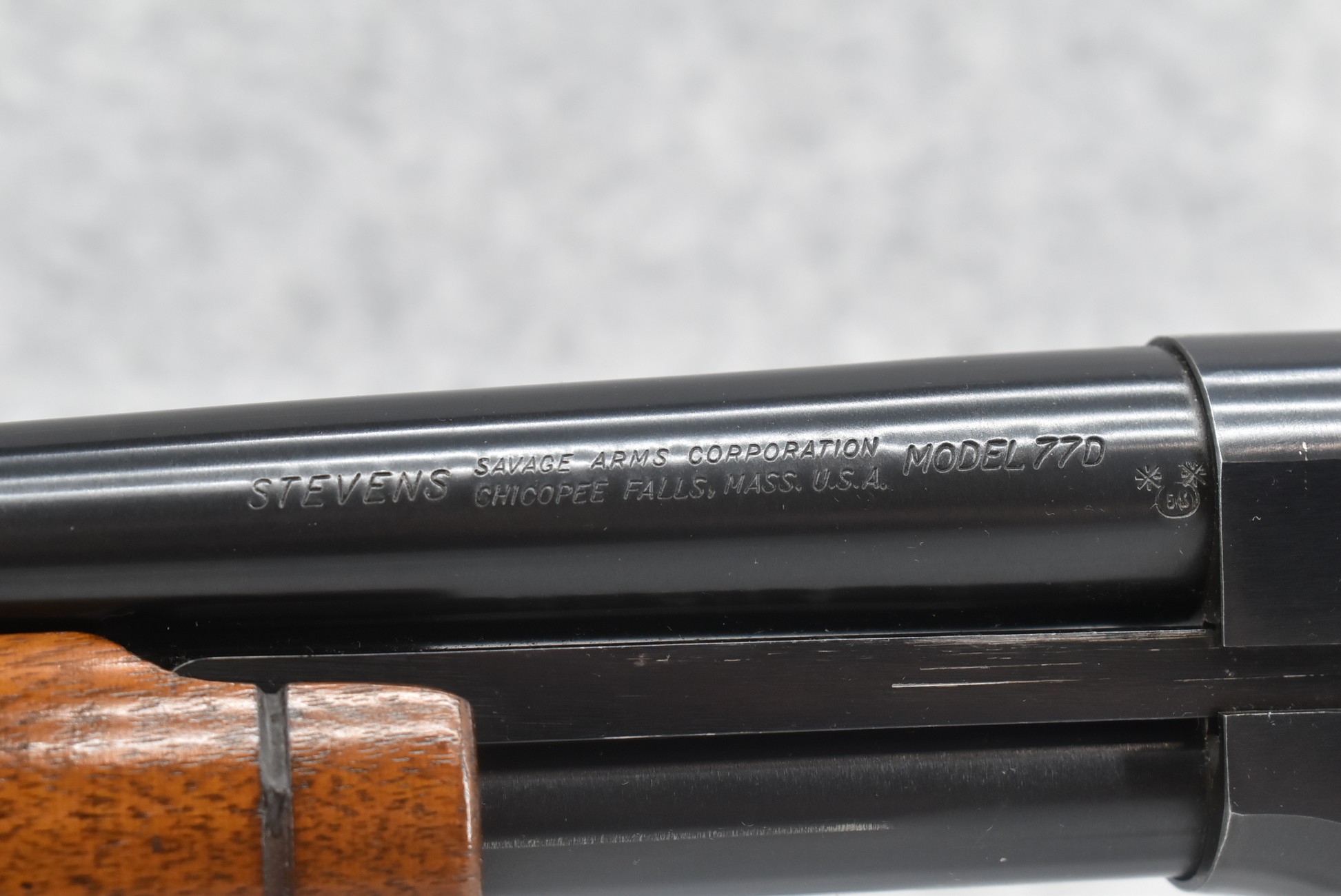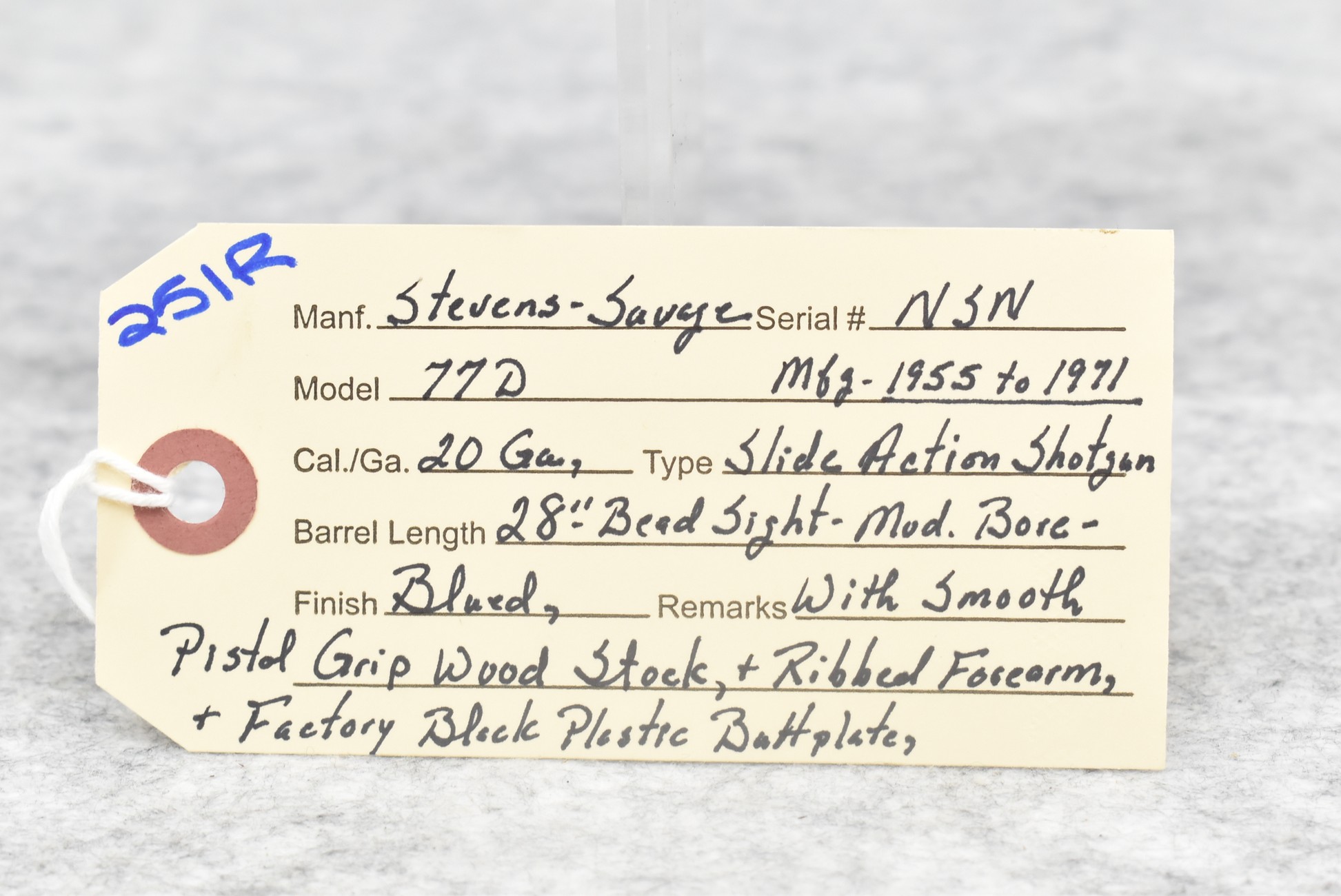 251R.     Stevens-Savage – Mod. 77D – 20ga. Pump Action Shotgun – w/28” Mod. Choked Barrel w/Bead Sight – Blued Finish – w/Smooth Pistol Grip Wood Stock w/Factory Butt Plate & Ribbed Forearm – Mfg. Between 1955-1971