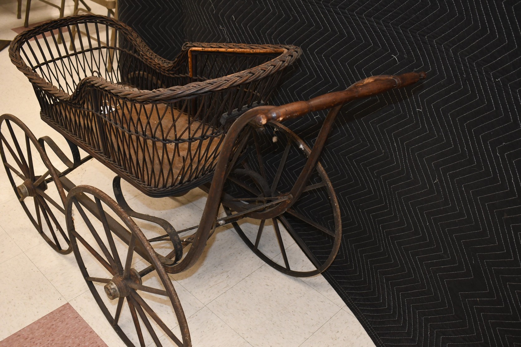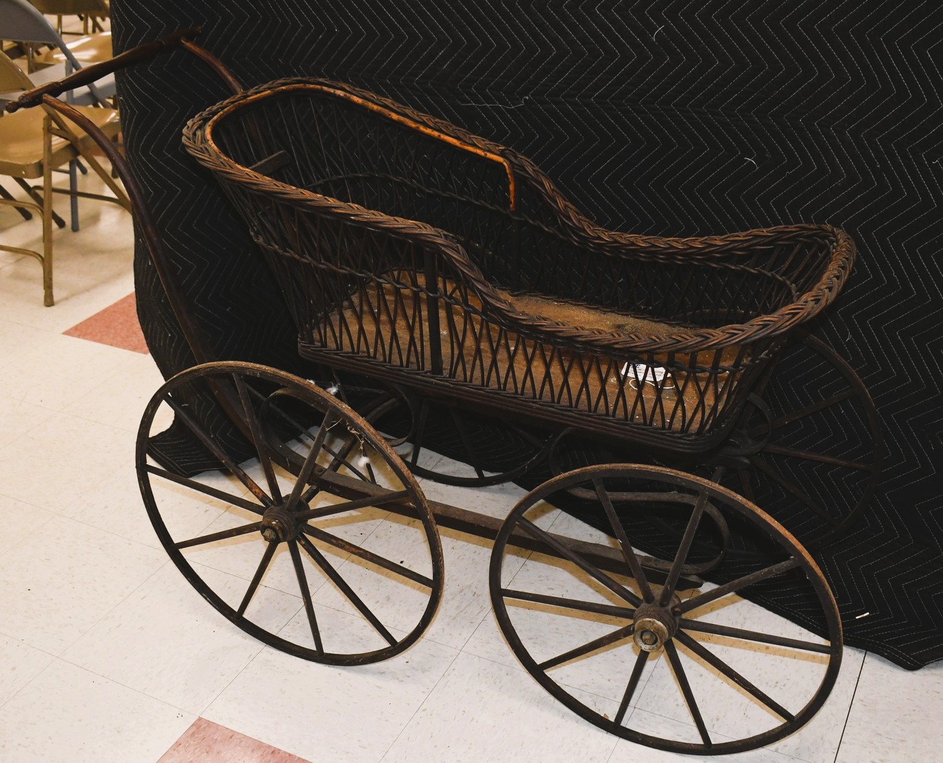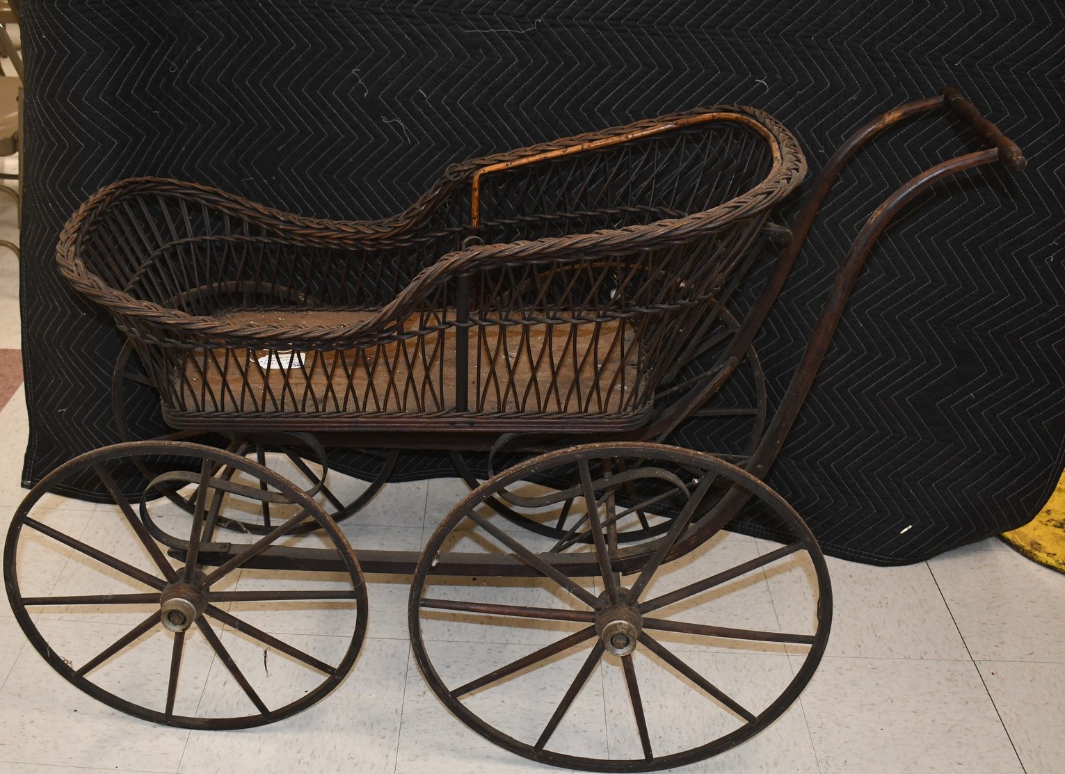 256. Vintage High Wheel Wicker and Wood Baby Buggy – The Item is Complete – The Wooden Wheels are Very Nice – The Basket is 38” Long – Will Not Ship, Pickup Only or You Must Arrange Your Own Shipping!