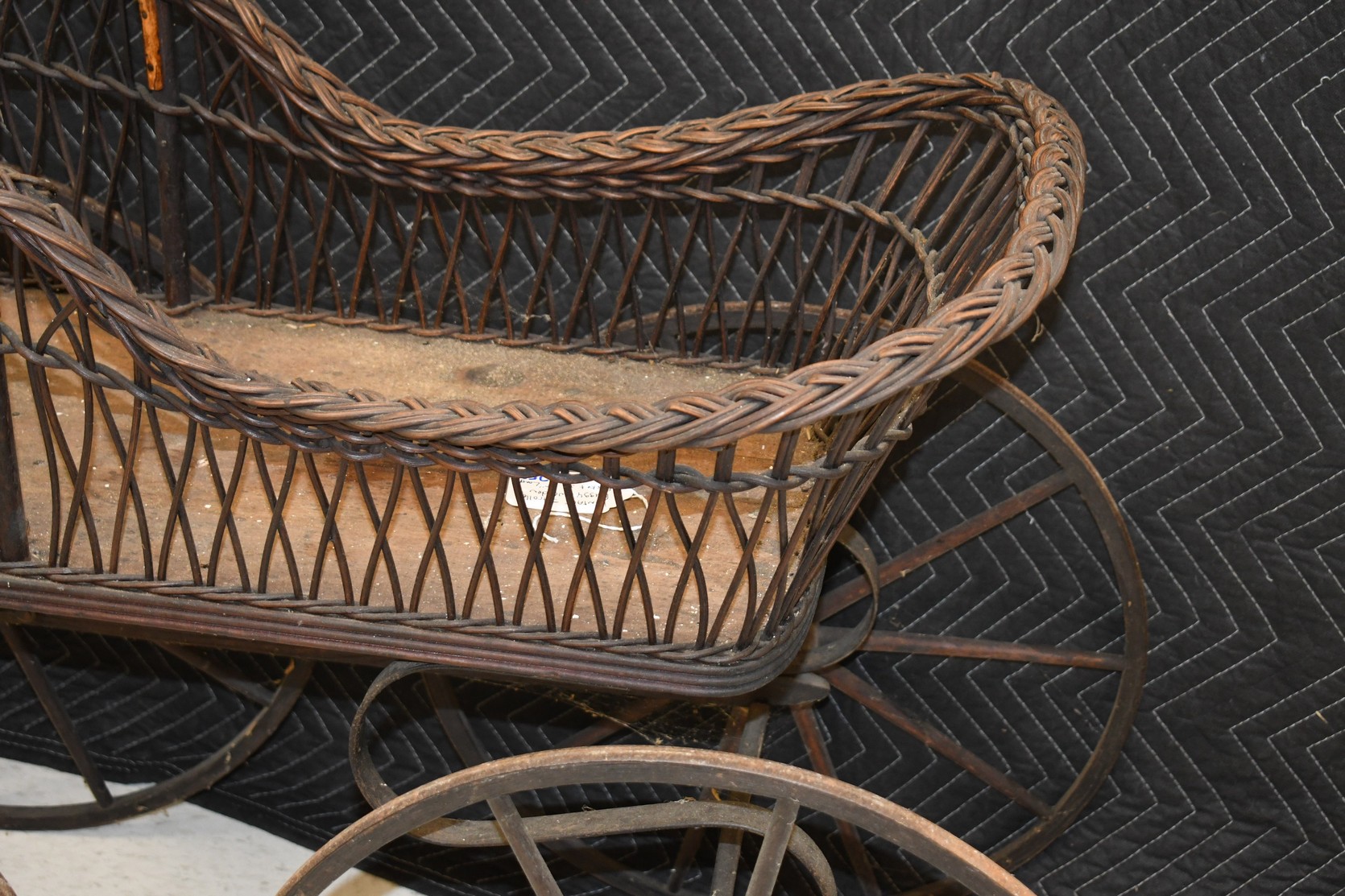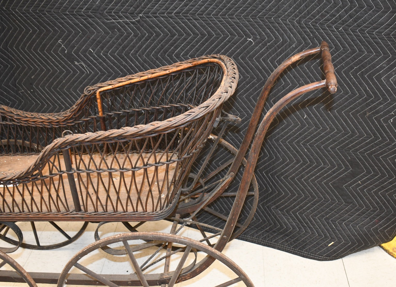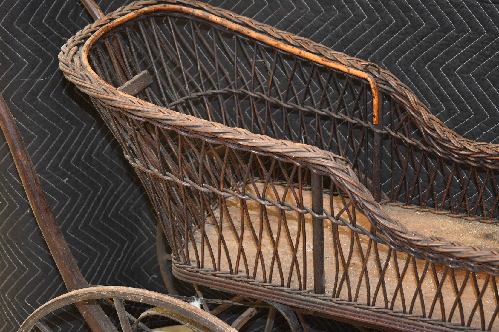 256. Vintage High Wheel Wicker and Wood Baby Buggy – The Item is Complete – The Wooden Wheels are Very Nice – The Basket is 38” Long – Will Not Ship, Pickup Only or You Must Arrange Your Own Shipping!