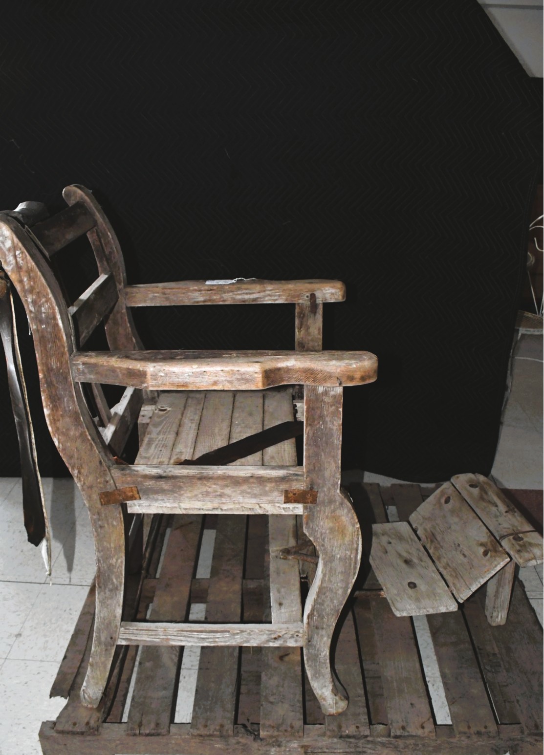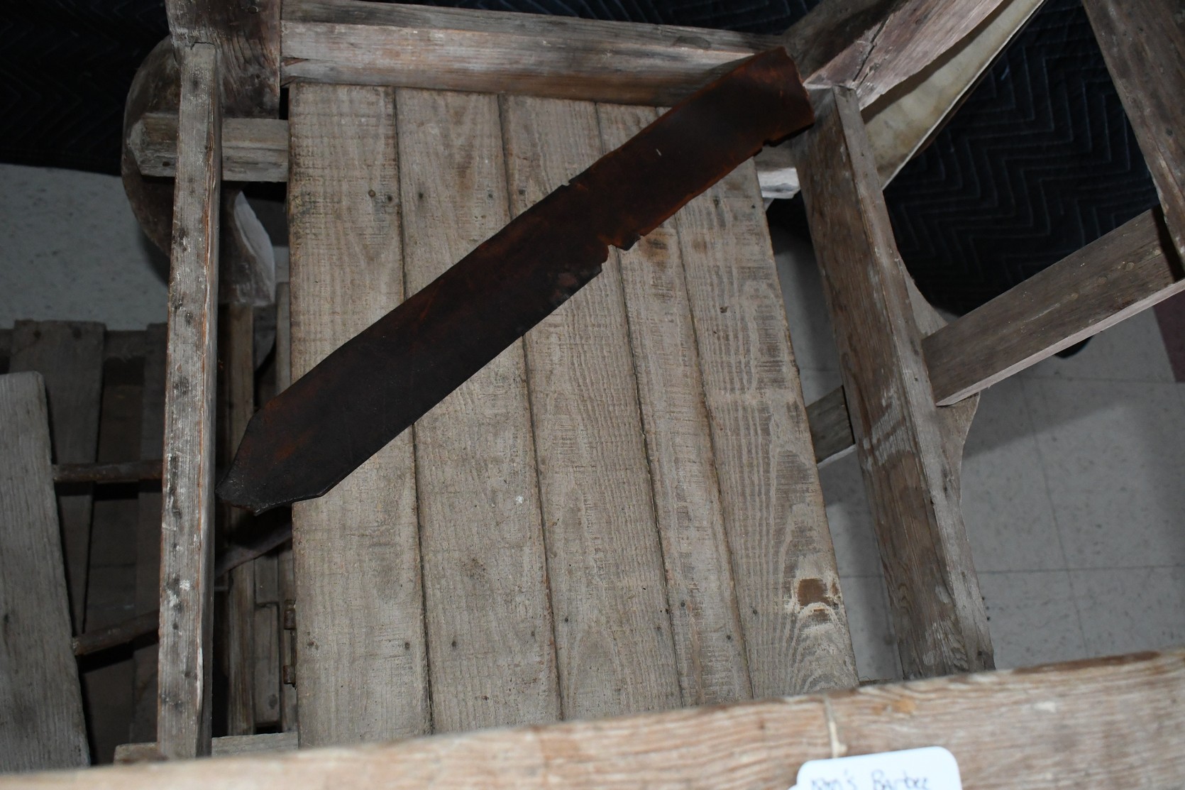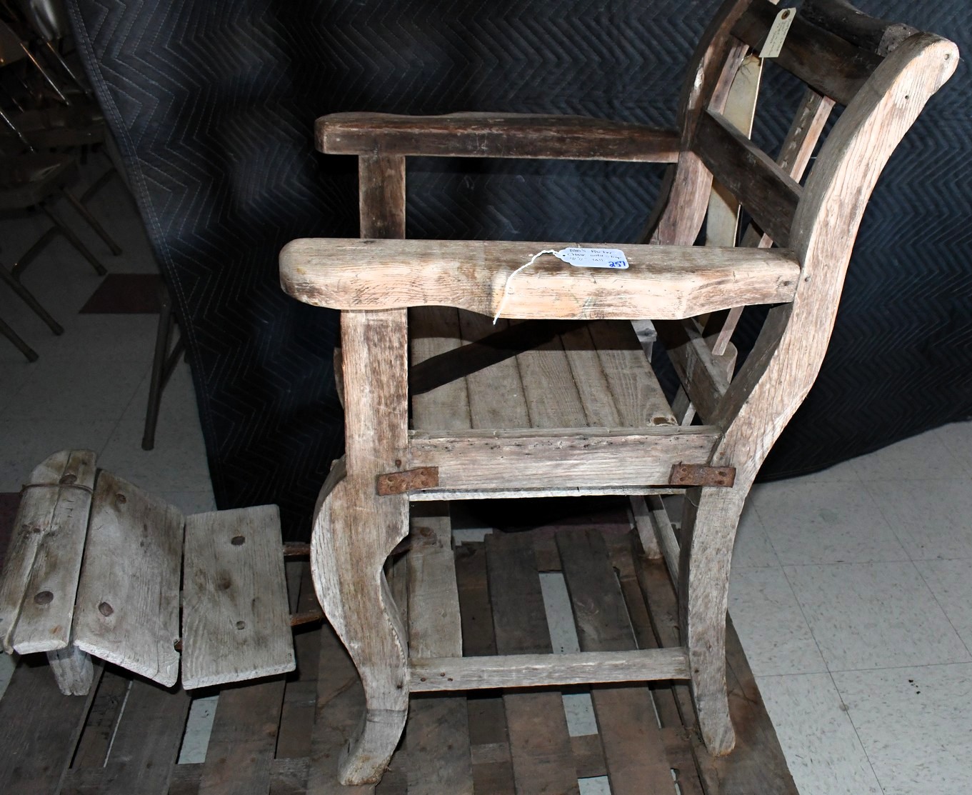 257. Very Primitive 19th Century All-Wood Barber’s Chair – Chair is 41” High – The Chair has Adjustable Footrest and Adjustable Headrest – Very Unique Item! – Will Not Ship, Pickup Only or You Must Arrange Your Own Shipping!
