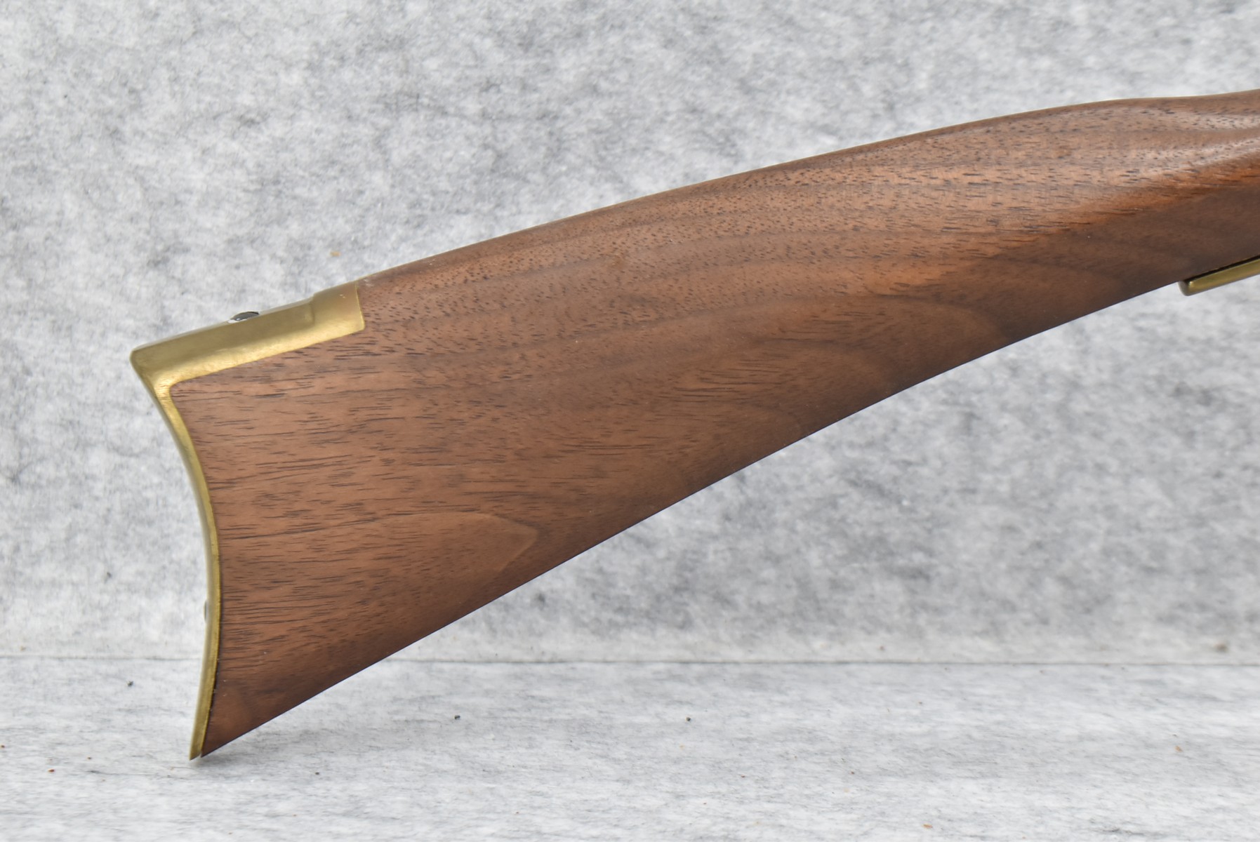 258. Pedersoli – Mod. P.A. Long Rifle – 54 Cal. Black Powder Flintlock Rifle – w/33” Octagon Barrel w/Factory Sights – Brown Finish – w/Straight Grip Full Length Wood Stock w/Raised Cheek Piece w/Brass Butt Plate & Trim – w/Double Set Triggers – w/Wooden Ram Rod
