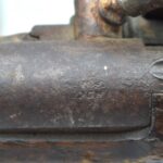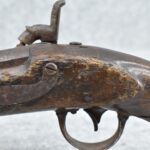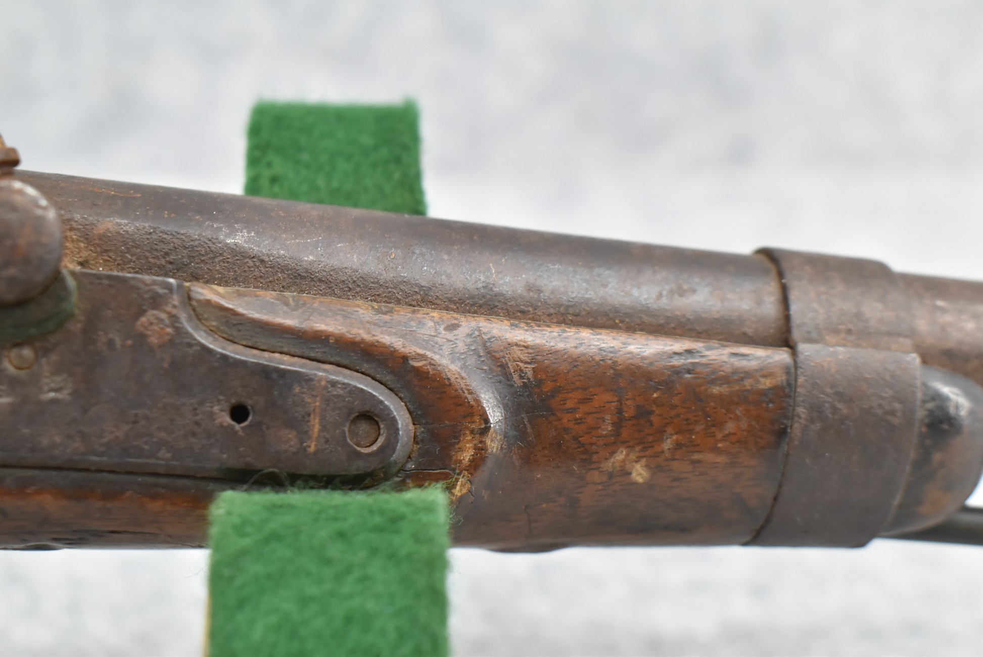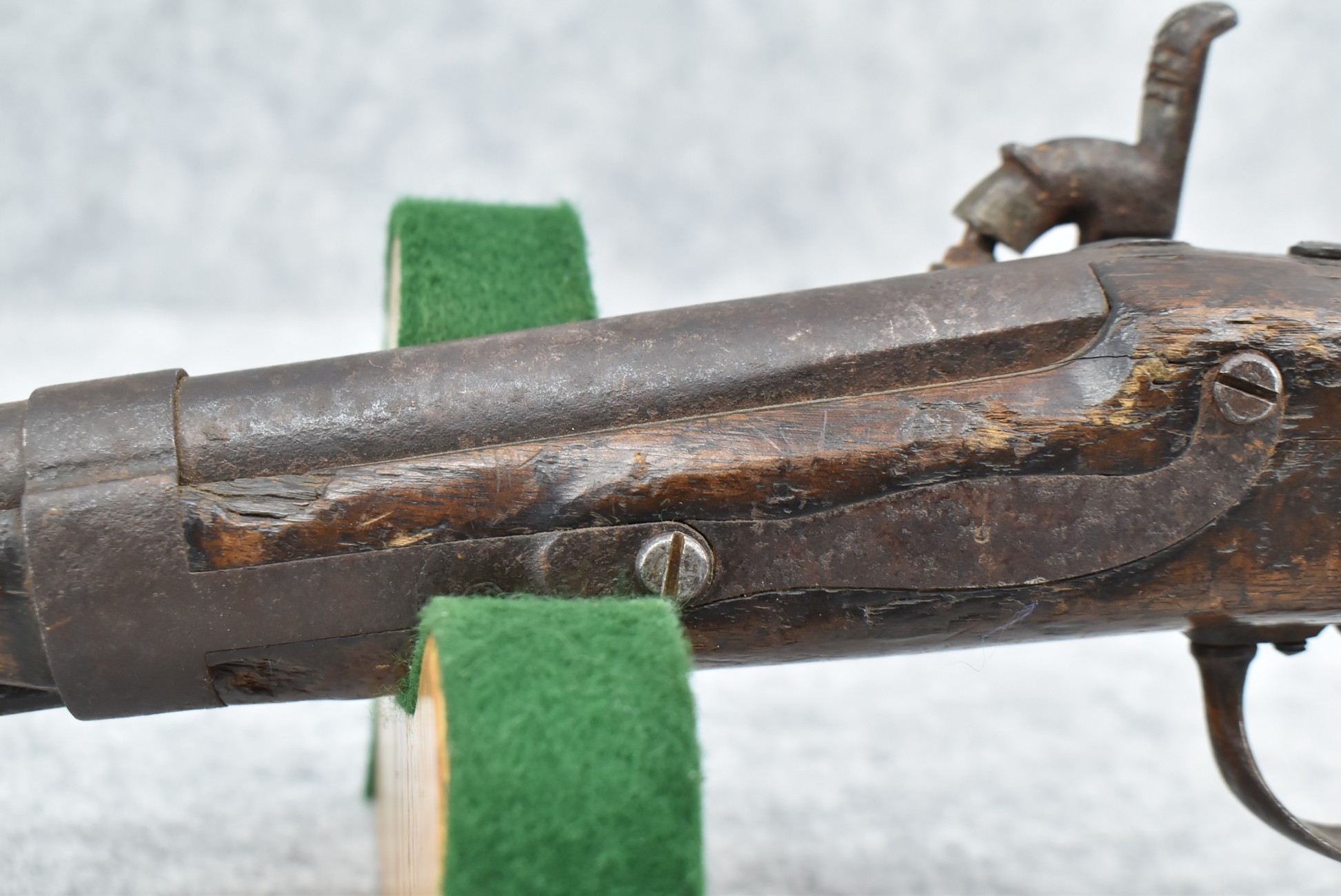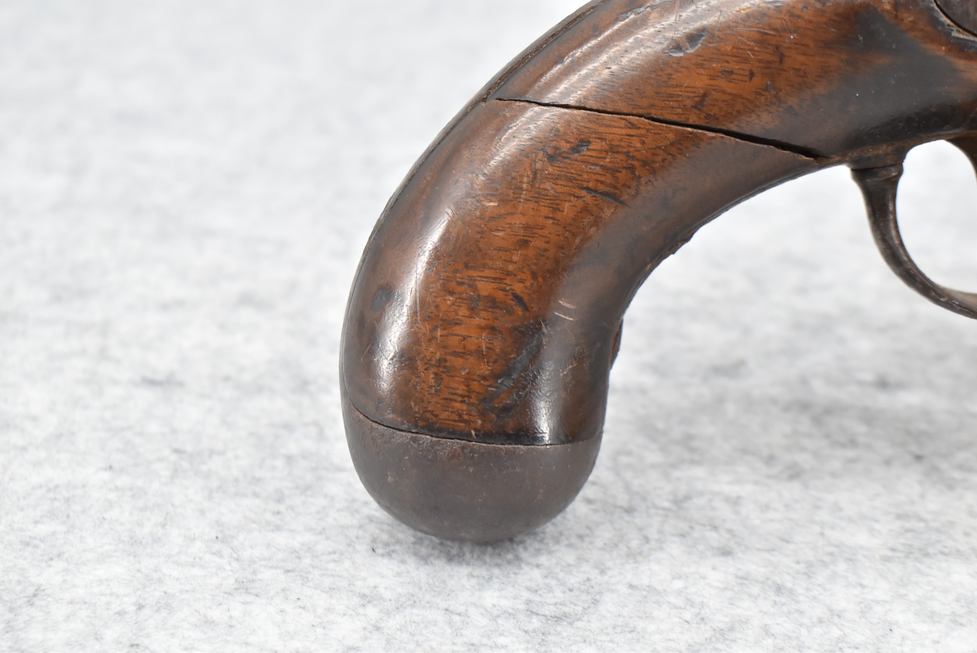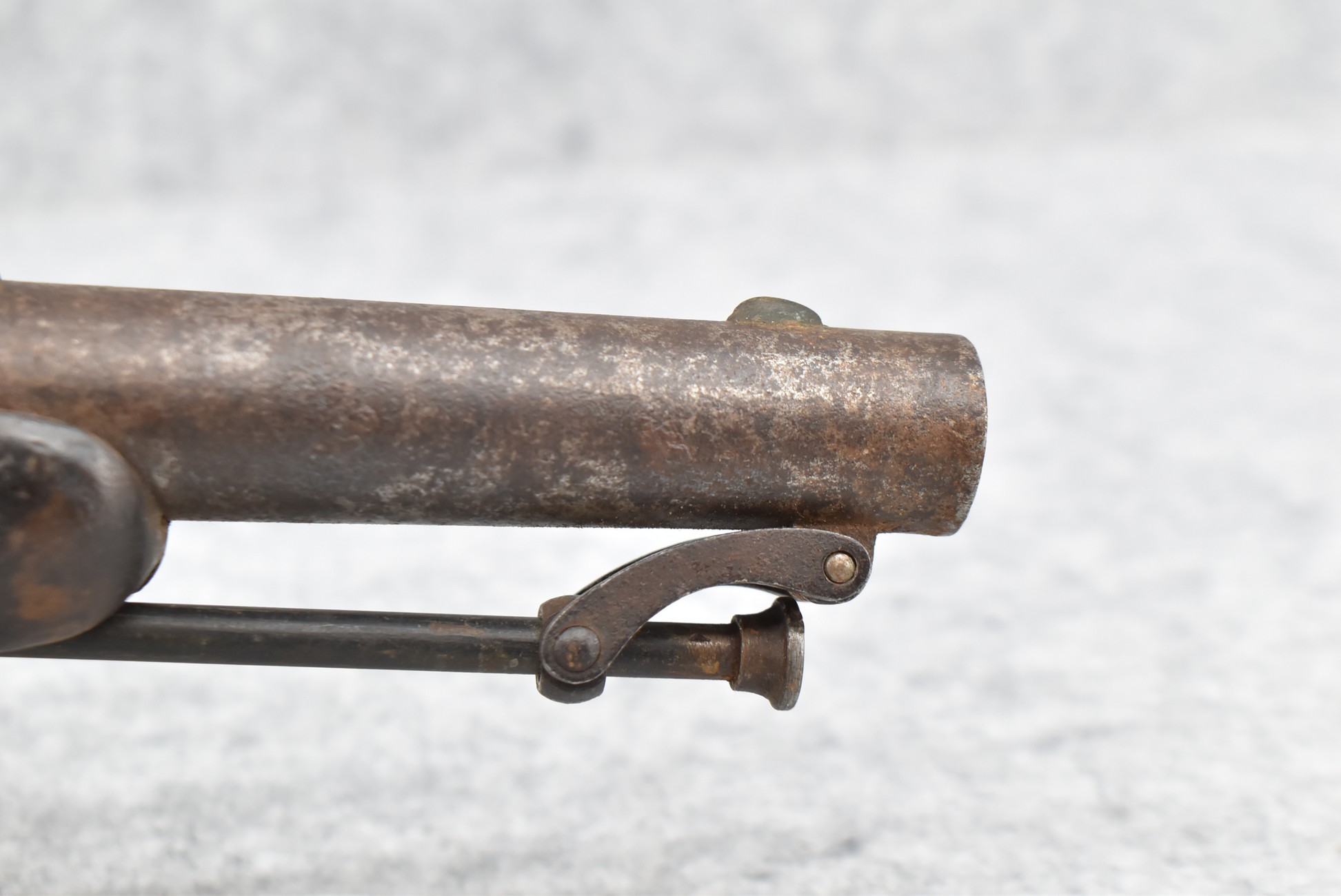 259. A. Waters – Mod. 1836 – 54 Cal. Percussion Black Powder Pistol – w/8 ½” Round Barrel w/Front & Rear Sights – Gray Finish – w/Pistol Grip Wood Stock – w/Faint Cartouche on Left Side of Stock – w/Swivel Ram Rod – Dated 1838 – Note: Stock Damaged at Tang & Action Issues!