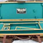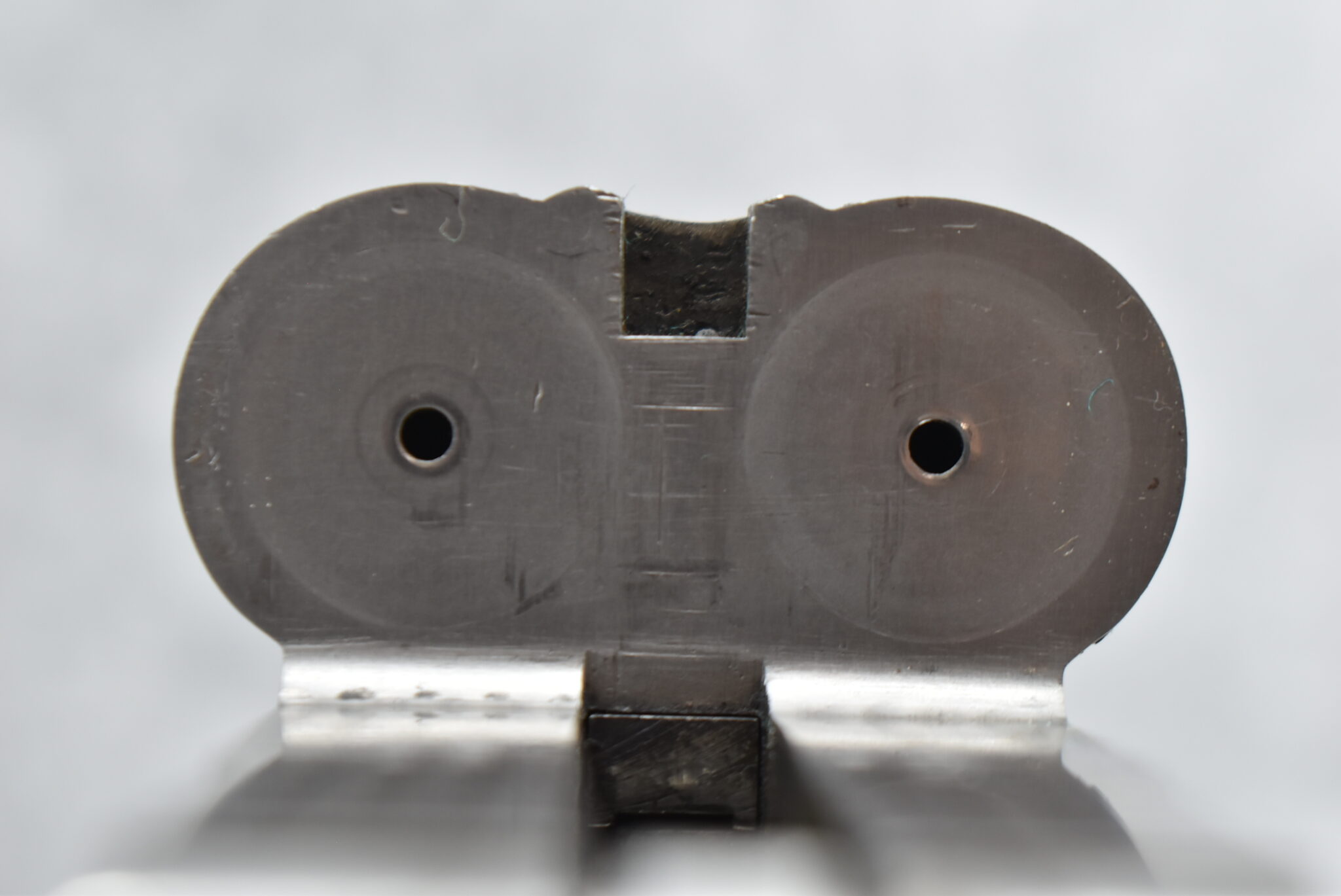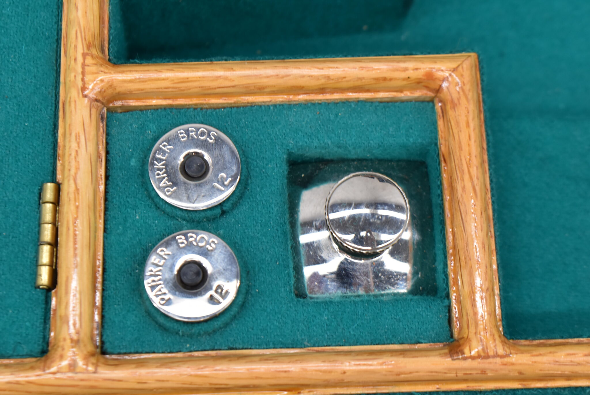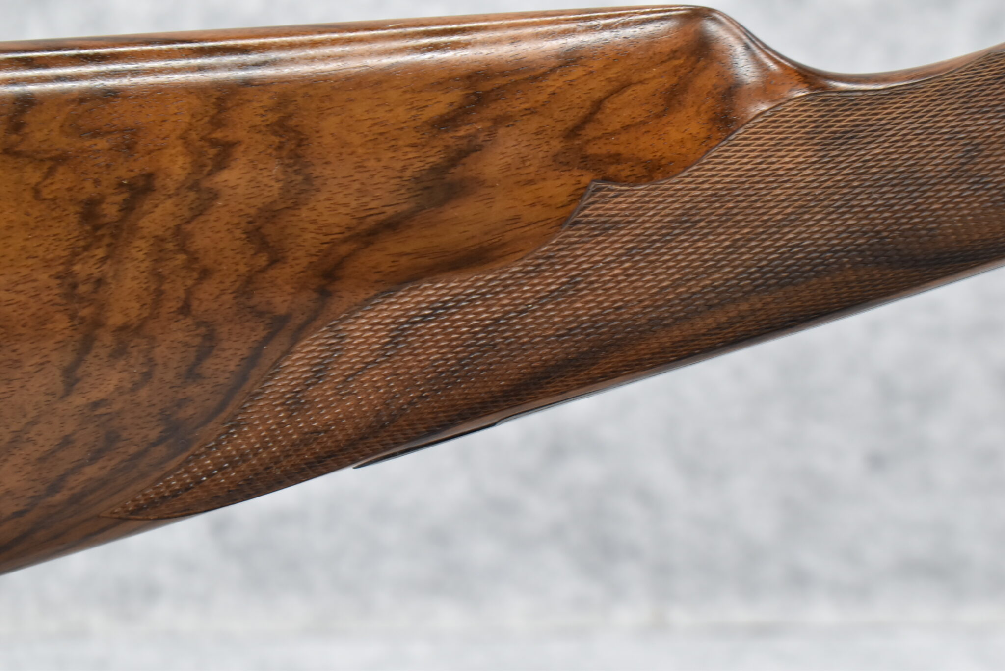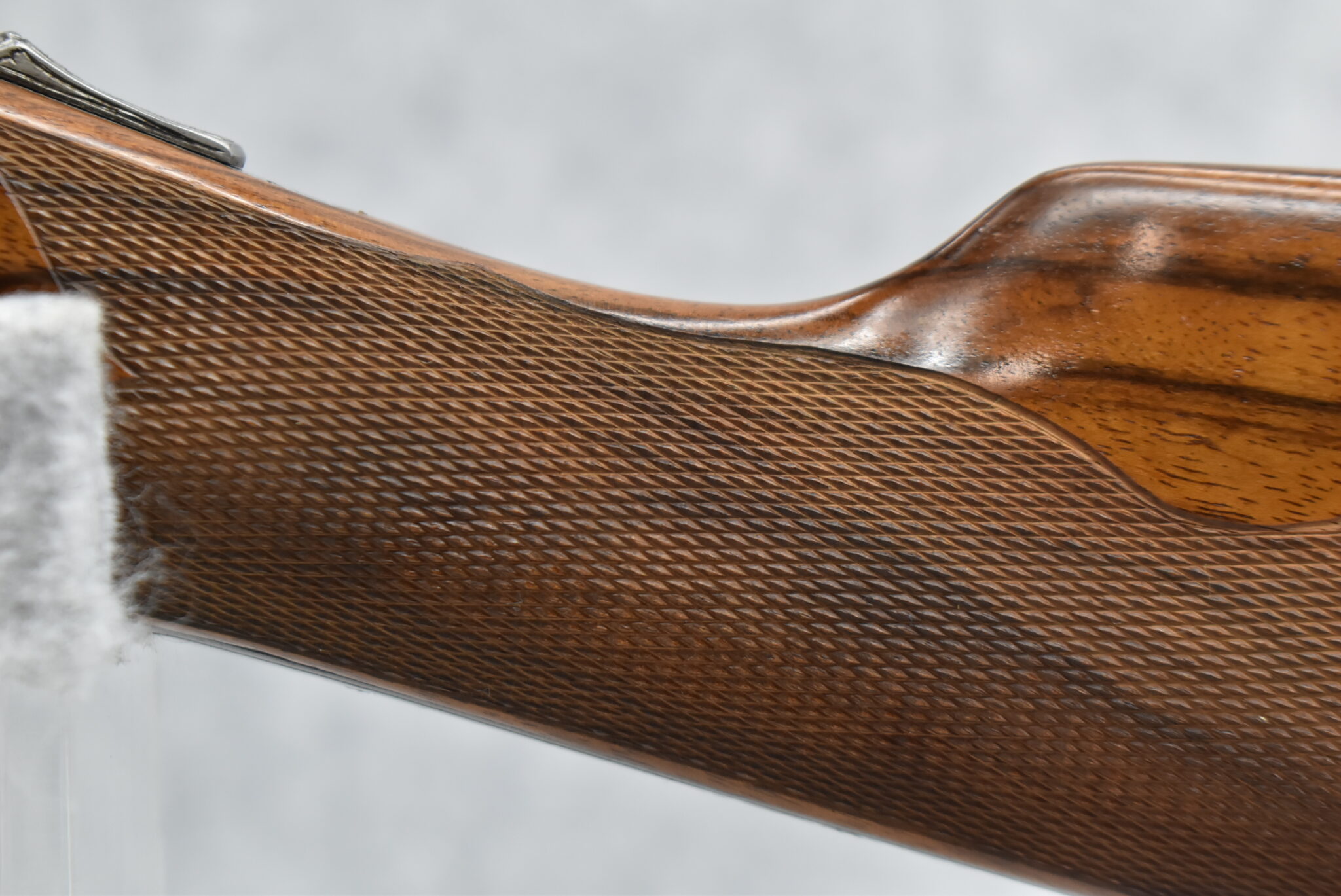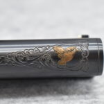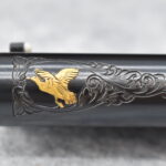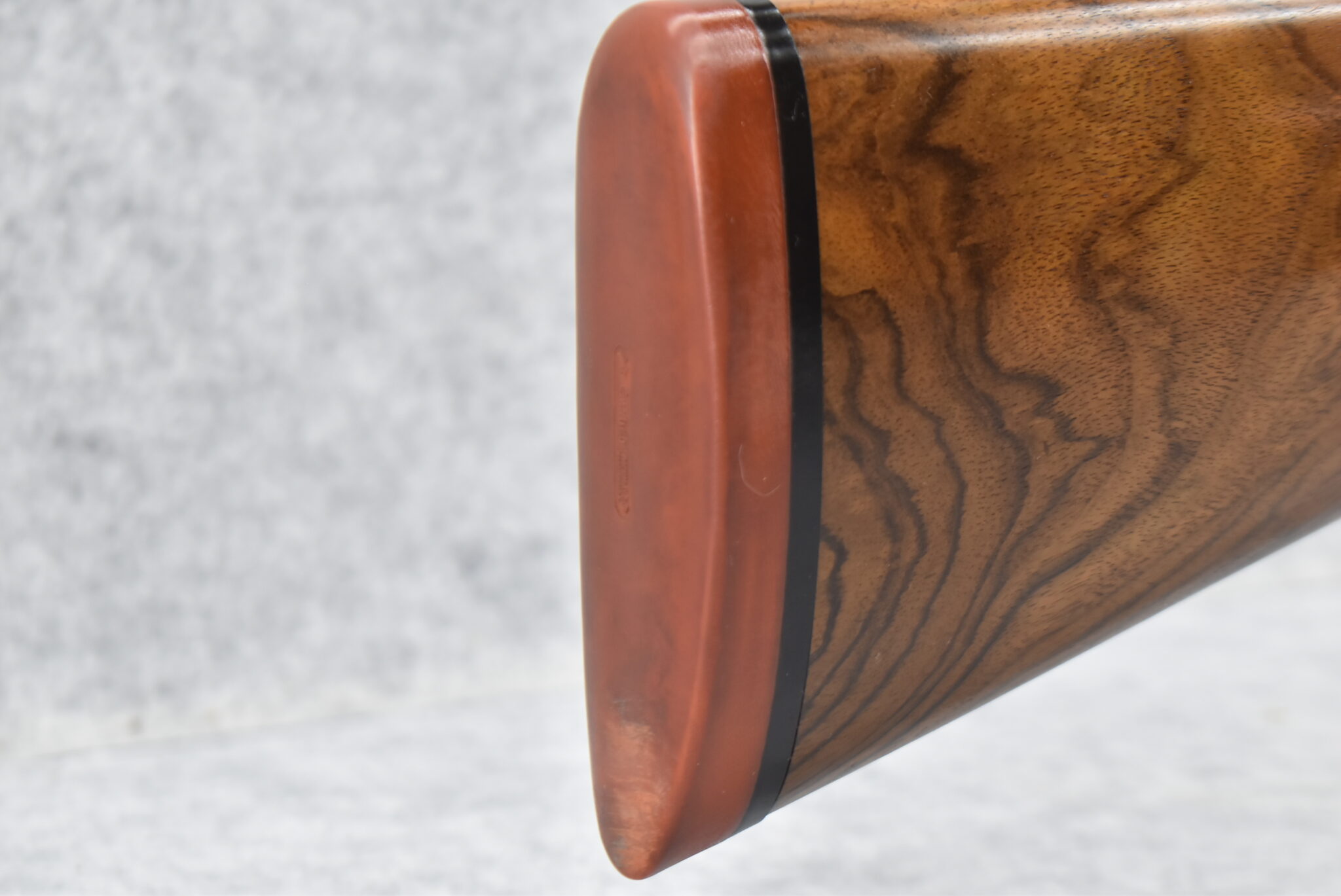 25R. Exceptional! Parker Bros. Custom Angelo Bee Signed & Engraved, Upgraded From VHE Grade 12ga. Side By Side Matching Numbered Two-Barrel Set Double Barrel Shotgun – Serial #242165 – 1st Set of Barrels Currently on the Gun Are 26” Solid Matted Rib w/Dual Bead Sights & Are Choked Improved Cylinder & Modified – 2nd Set of Barrels Are 30” Solid Matted Rib w/Dual Bead Sights & Choked Full & Modified – Both Sets of Barrels Serial Number to the Gun! – Both Sets of Barrels Have Strong Blued Finish & Receiver Has a Silver Finish – This Gun Has Been Professionally Custom Stocked by Top American Master Stock Maker Michael Yee w/Highly Figured AAA Grained, Fine Checked Straight Grip English Walnut Butt Stock w/Pachmayr Recoil Pad & Matching Fine Checkered AAA Grained English Walnut Beavertail Forearm – w/Single Selective Trigger – Gun Has Been Masterfully Engraved by Former Browning Master Engraver Angelo Bee – Each Barrel Has Been Engraved at the Breech & Muzzle w/A Total of 6 Relief 18K Yellow, Rose & White Gold Inlays Depicting Ducks & Quail w/A Scroll Pattern Between Both Ends – Breech End of Barrels Have Gold Wire Inlaid Border – Receiver is Heavy Scroll Engraved w/Gold Inlaid Hunting Scene, Underside Depicts a Bird Dog Holding A Game Bird in its Mouth & the Left Side Depicts a Fox Stalking Game Birds – Angelo Bee’s Signature Can Be Seen on the Left Side of the Receiver Below the Leading Duck – Gun is Cased in a Leather Covered Oak Two-Barrel Gun Case w/Canvas Outer w/Oiler & Set of Snap Caps – Minimum Wall Thickness Set #1 .035 on the Right Barrel, .035 on Left Barrel – Minimum Wall Thickness Set #2 .033 on Right Barrel, .035 on Left Barrel – This Gun is Truly a Museum Quality Piece That Displays The Masterful & Artistic Skill of Two Credited Craftsmen of the Gun World!