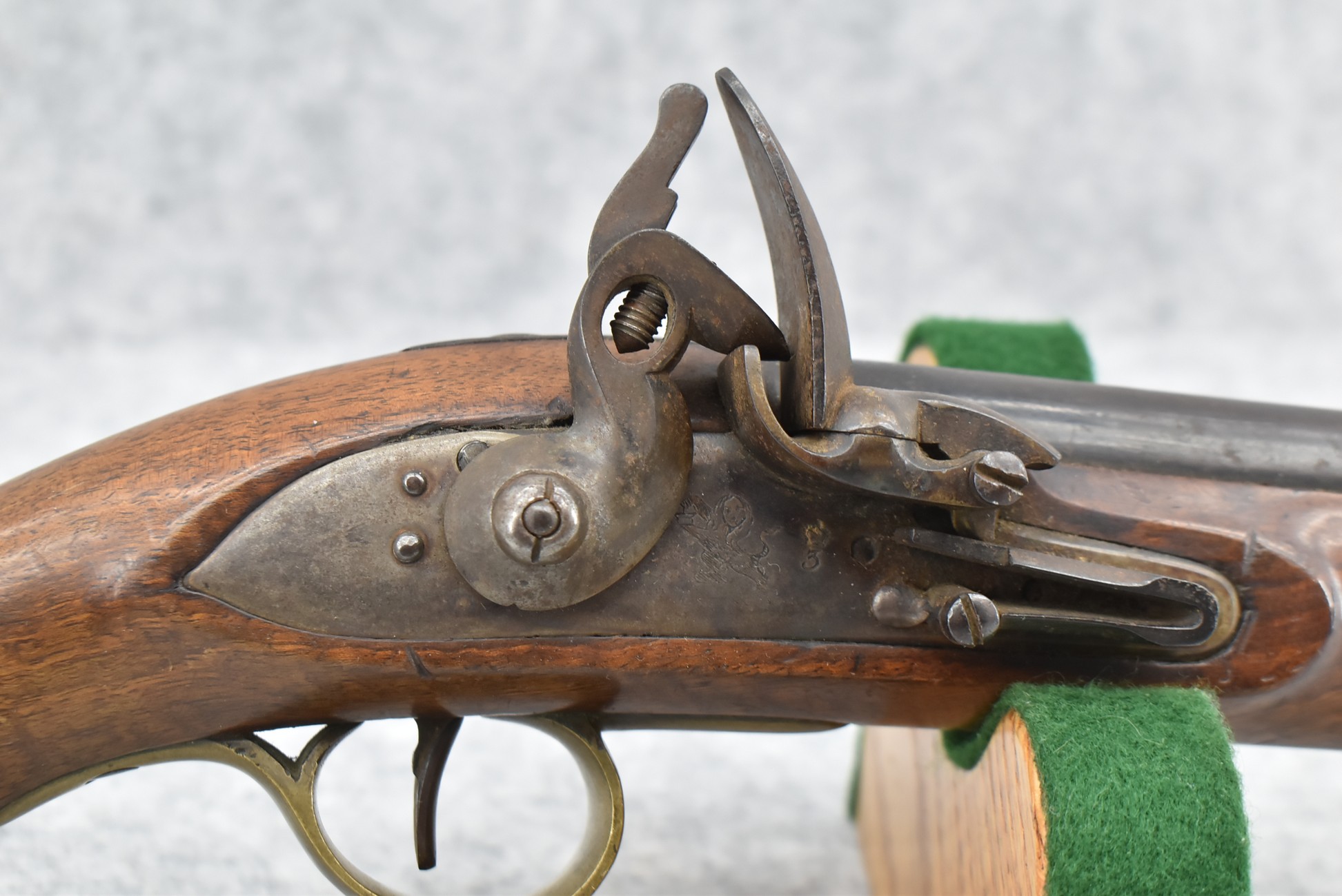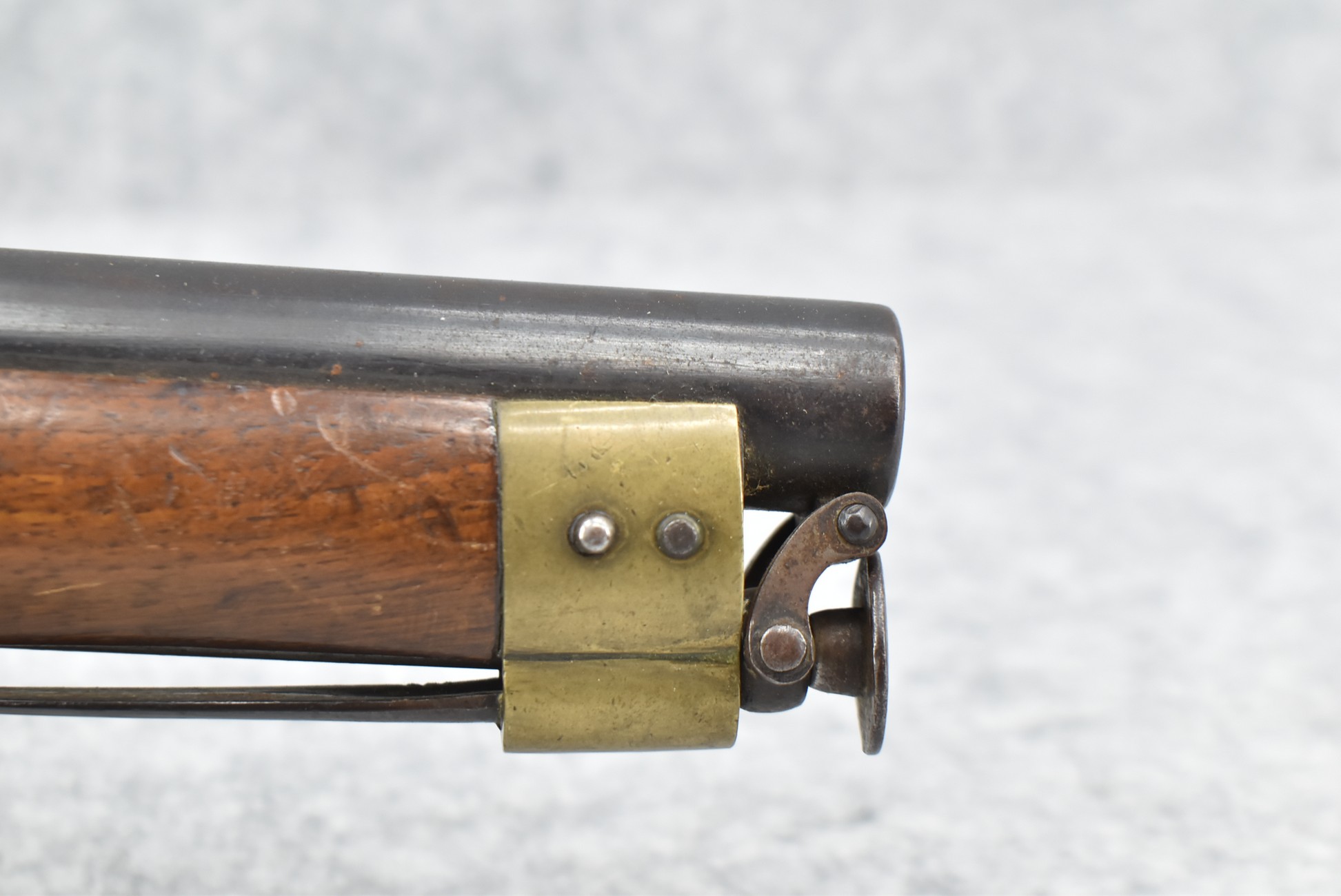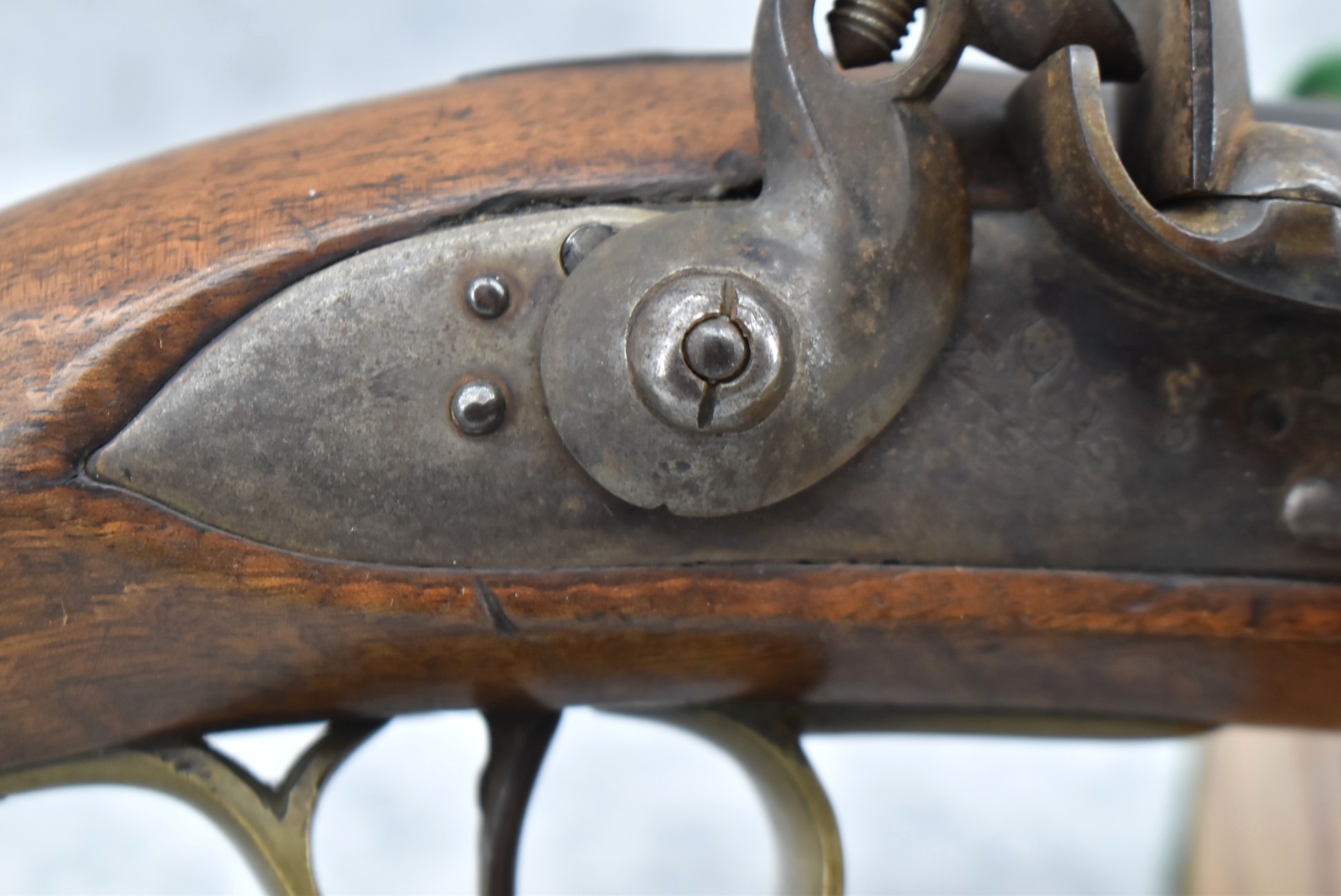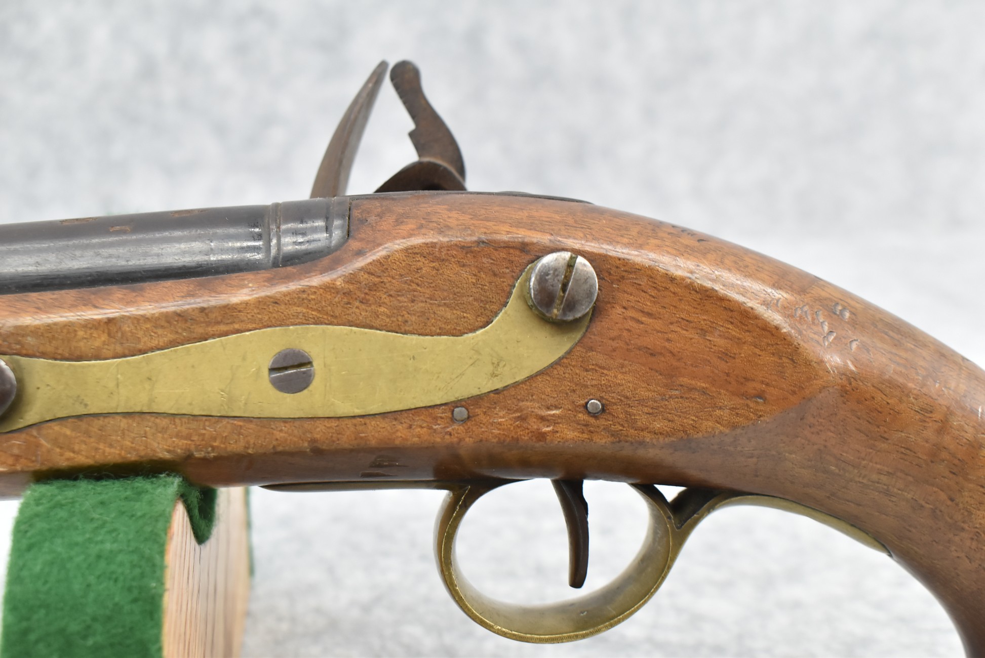 260. Unknown Mfg. British – 56 Cal. Flintlock Black Powder Pistol – w/9” Round Barrel – Blued Finish – w/Pistol Grip Wood Stock w/Brass Mountings – w/Lanyard Ring – w/Swivel Type Ram Rod – Note: Missing Top Jaw on Hammer