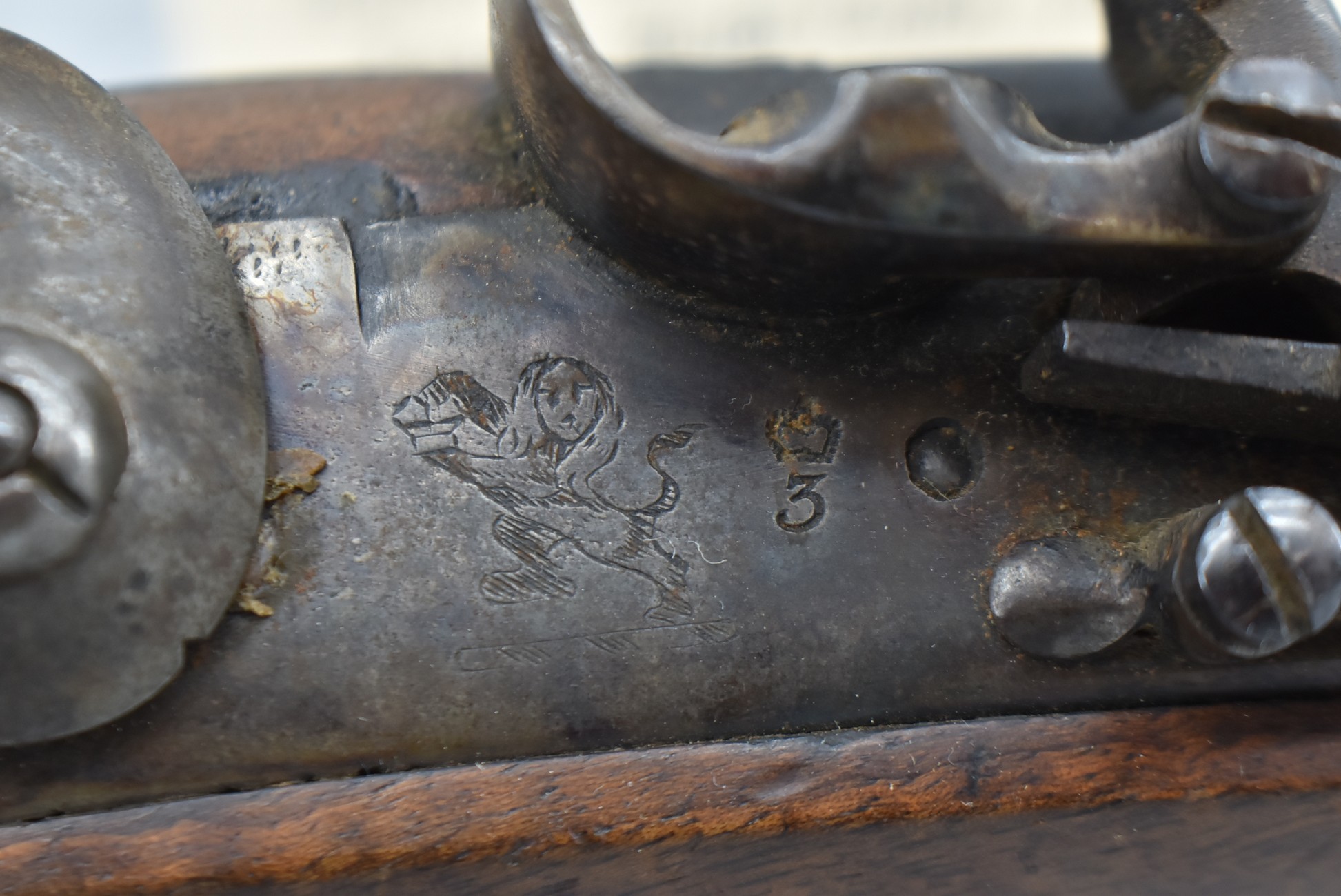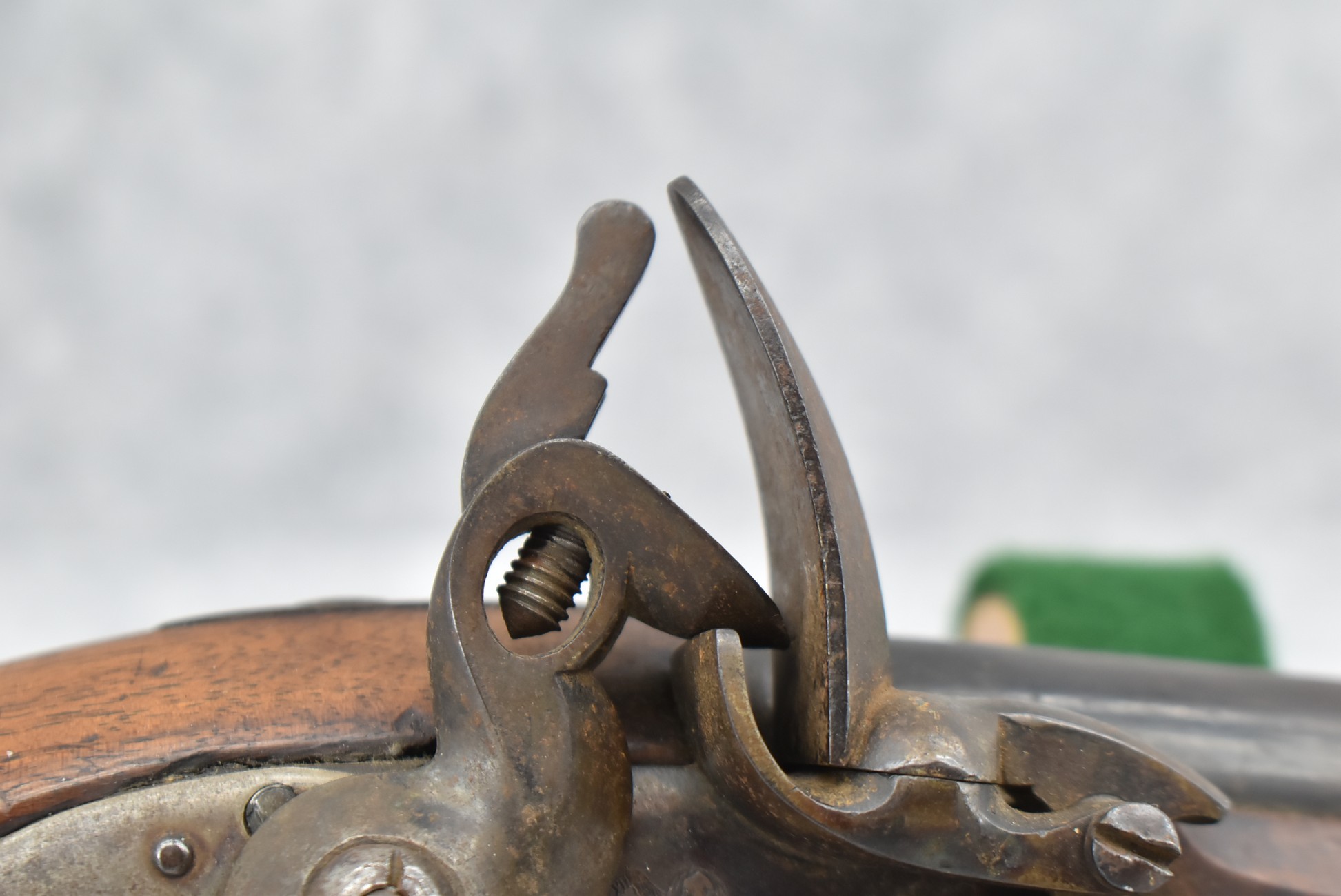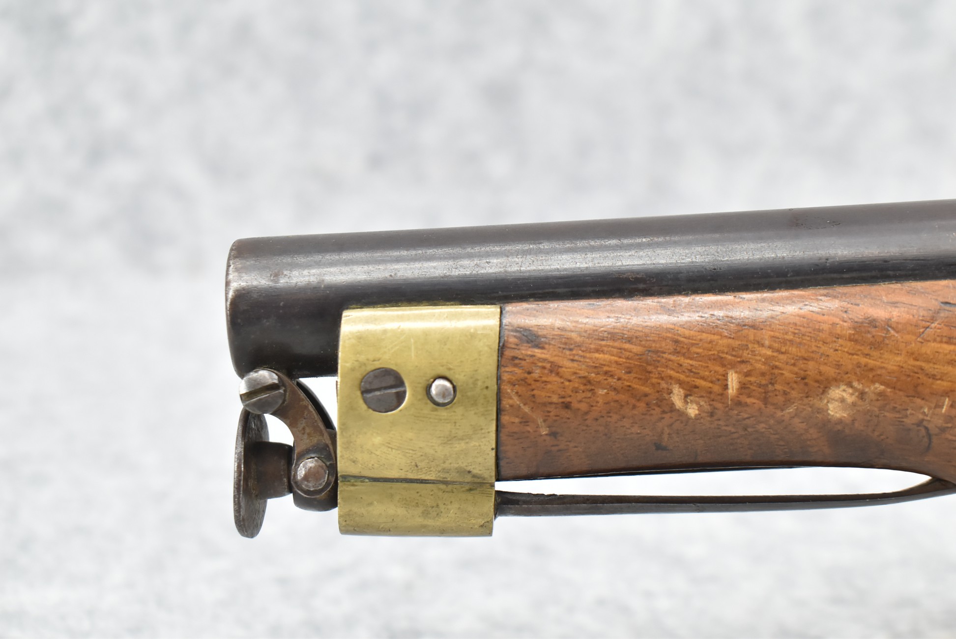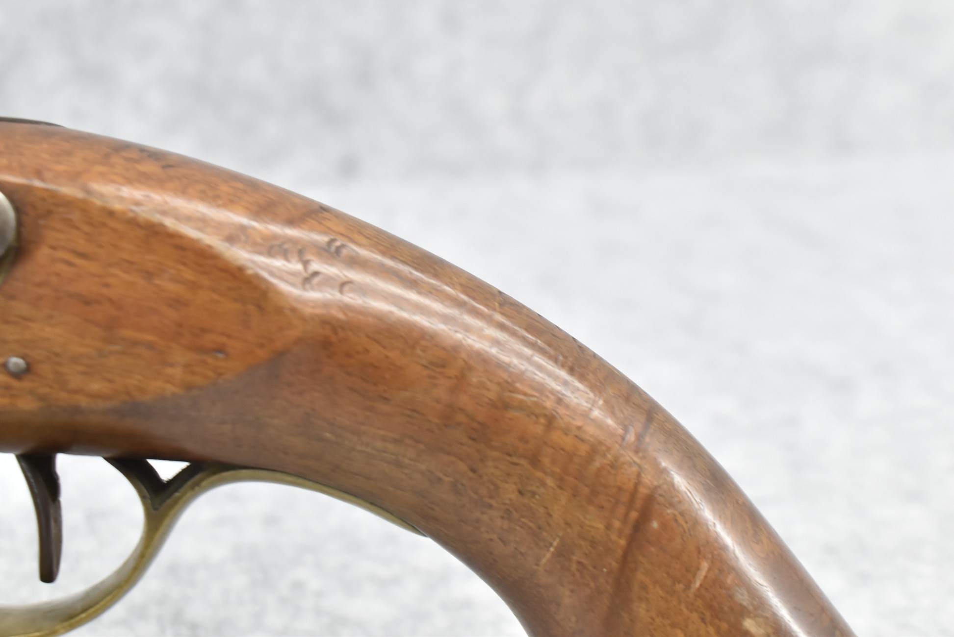 260. Unknown Mfg. British – 56 Cal. Flintlock Black Powder Pistol – w/9” Round Barrel – Blued Finish – w/Pistol Grip Wood Stock w/Brass Mountings – w/Lanyard Ring – w/Swivel Type Ram Rod – Note: Missing Top Jaw on Hammer