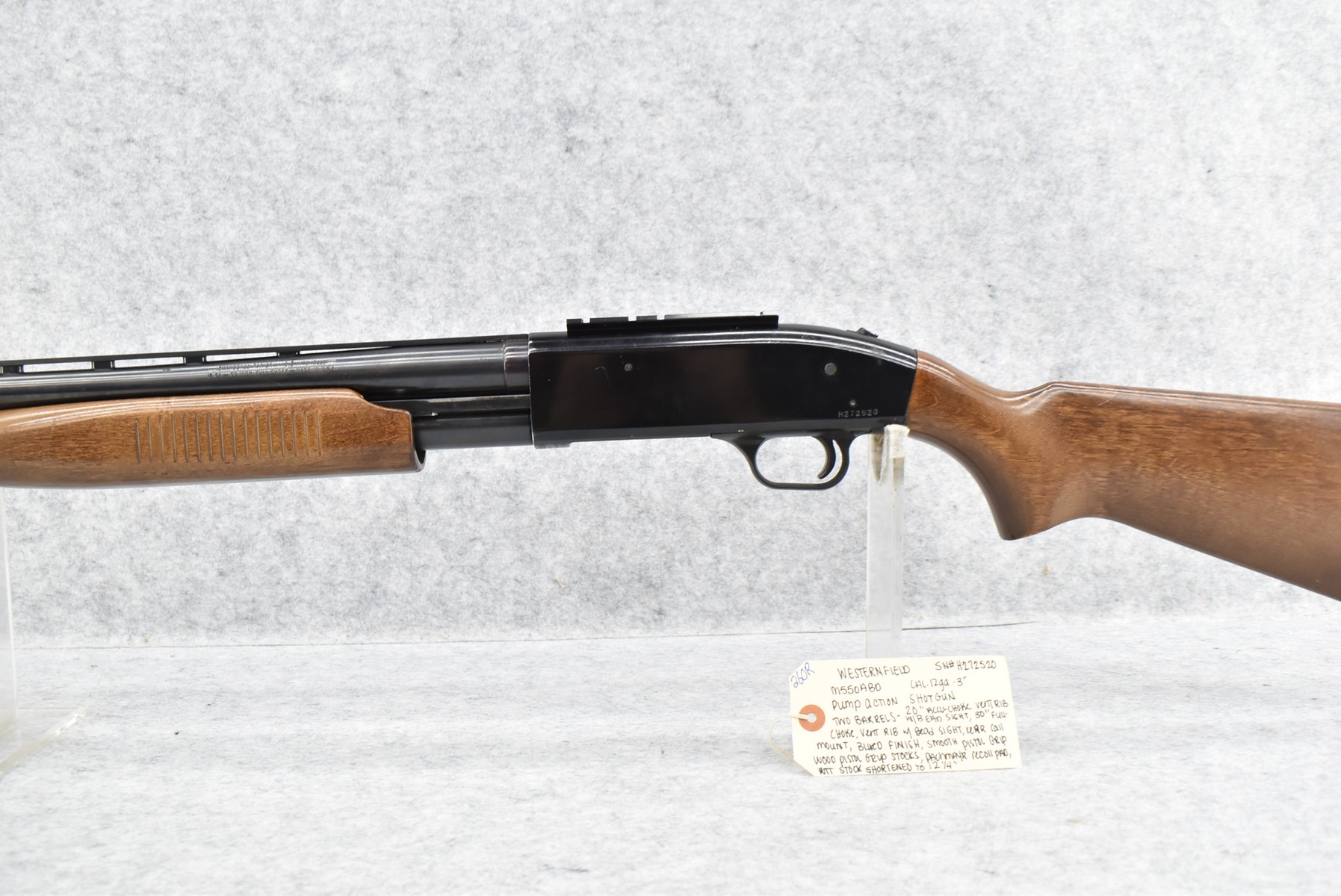 260R. Westernfield – Mod. M550ABD 2-Barrel Set – 12ga. 3” Pump Action Shotgun – w/20” Accu-Choke, Vent-Rib Field Barrel w/Bead Sight & 30” Full Choke, Vent-Rib Field Barrel w/Bead Sight – Blued Finish – w/Smooth Pistol Grip Wood Pistol Grip Stock w/Pachmayr Recoil Pad, Butt Stock Shortened to 12 ¼” – w/Rail Mount