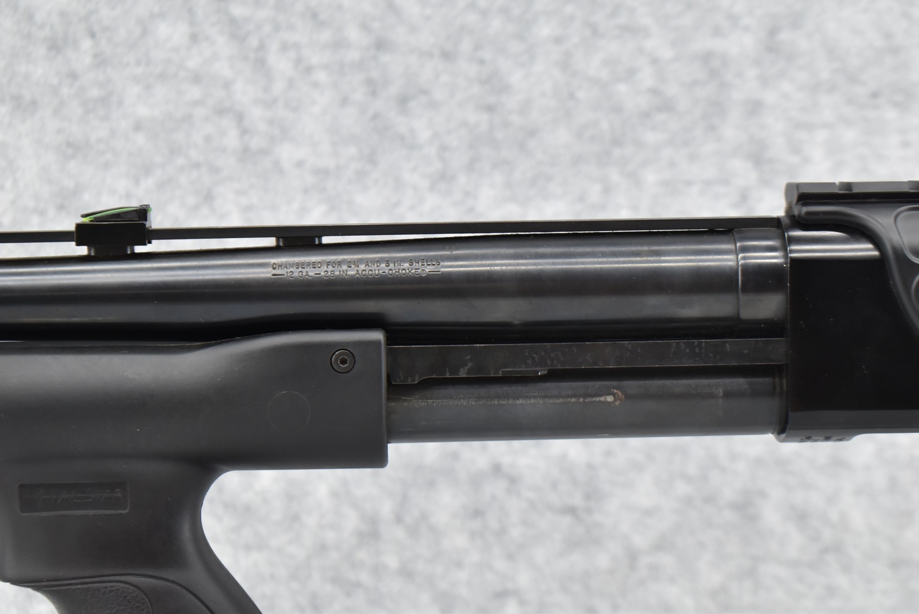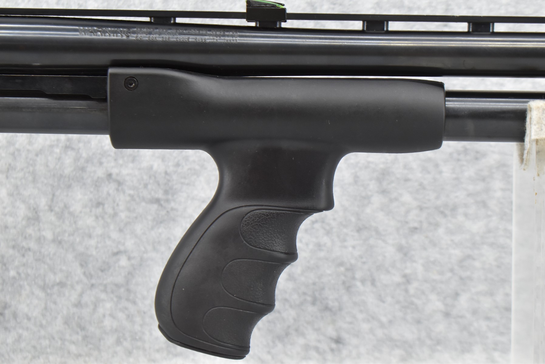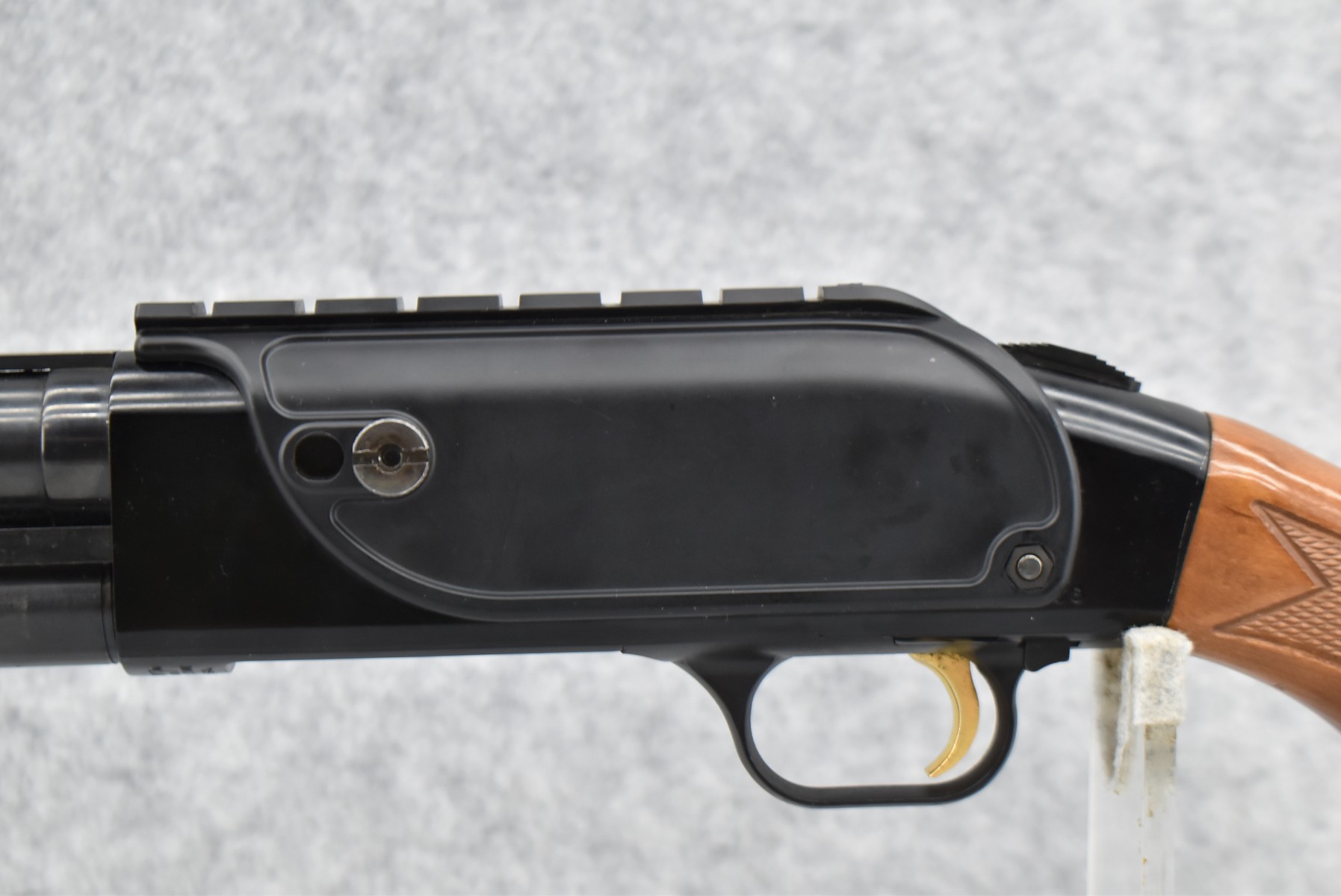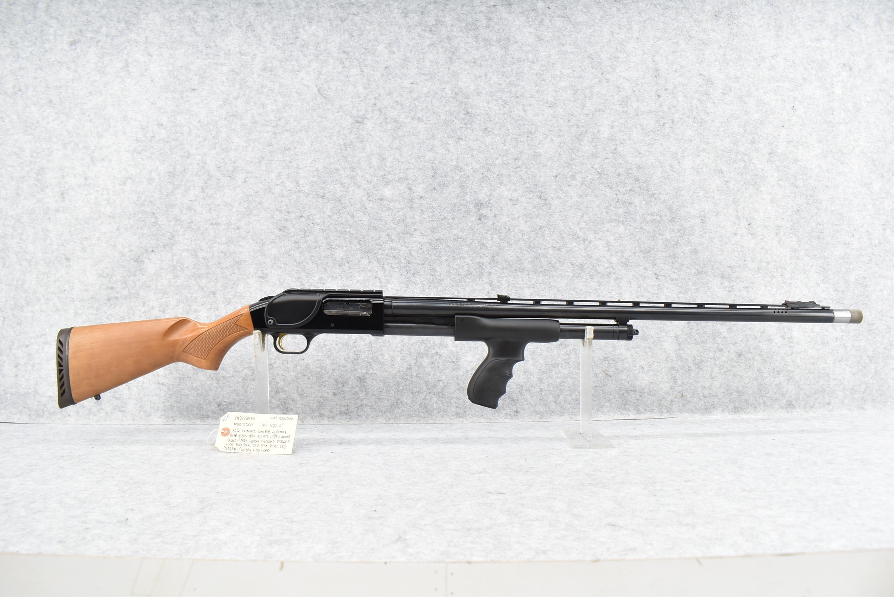 261R.     Mossberg – Mod. 500A – 12ga. 3” Pump Action Shotgun – w/30” Ext. Custom Choke, Vent-Rib Barrel w/Front & Rear Fiber Optic Sights – Blued Finish – w/Factory Checkered Pistol Grip Wood Butt Stock w/Factory Recoil Pad & TAC-Star Forearm Pistol Grip – w/Picatinny Rail Mount