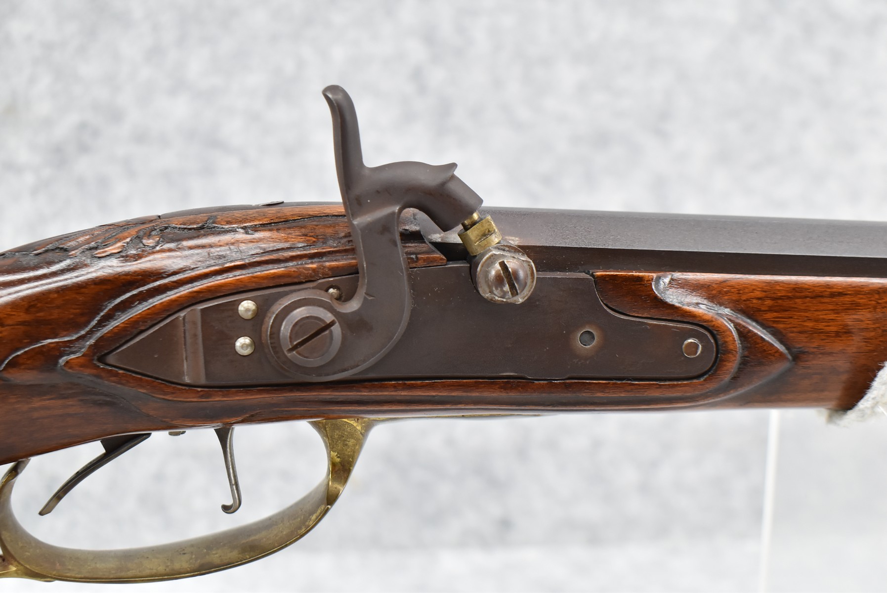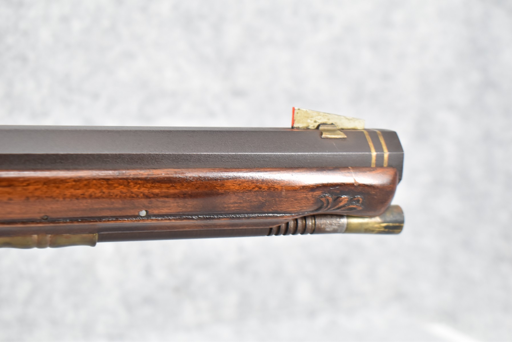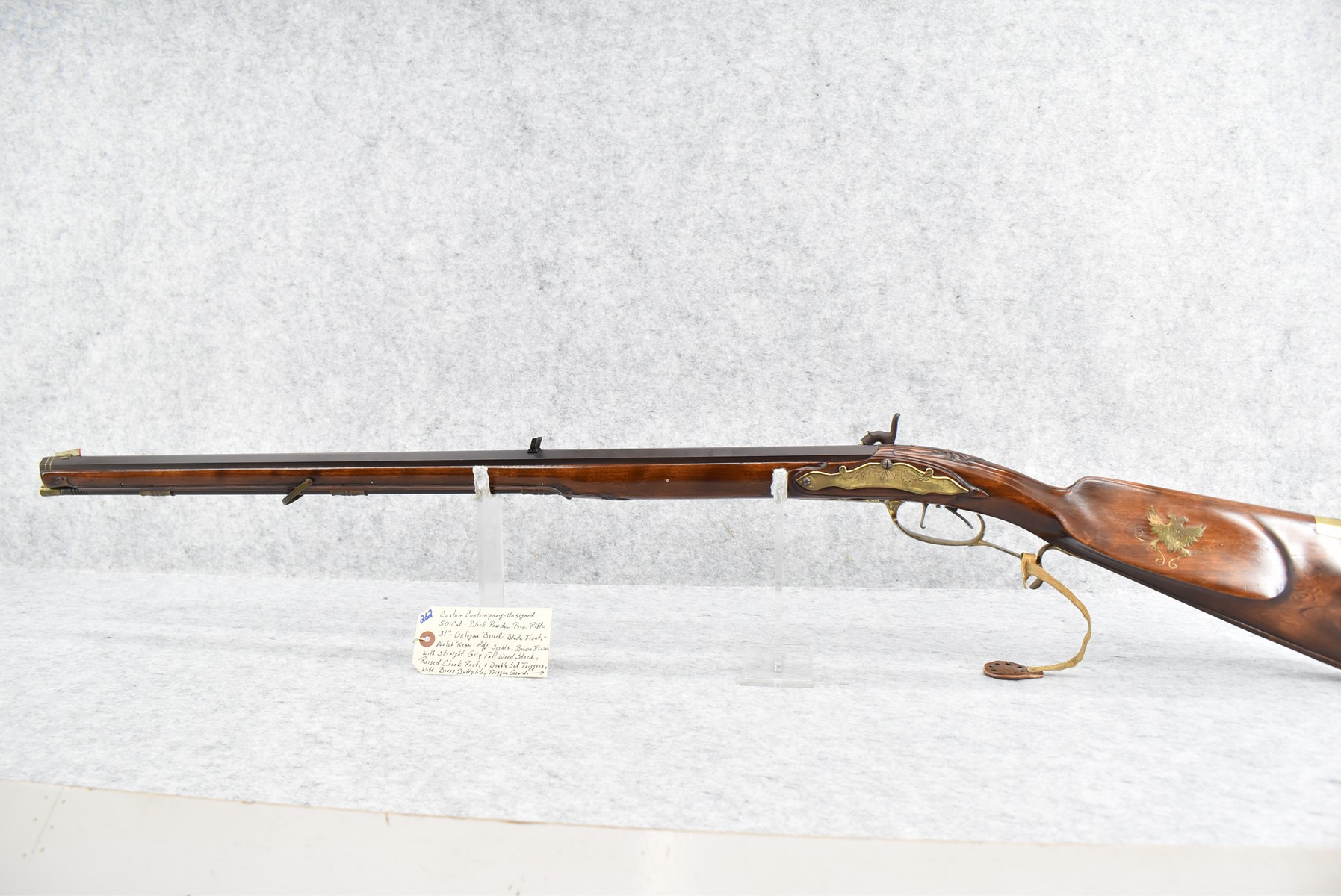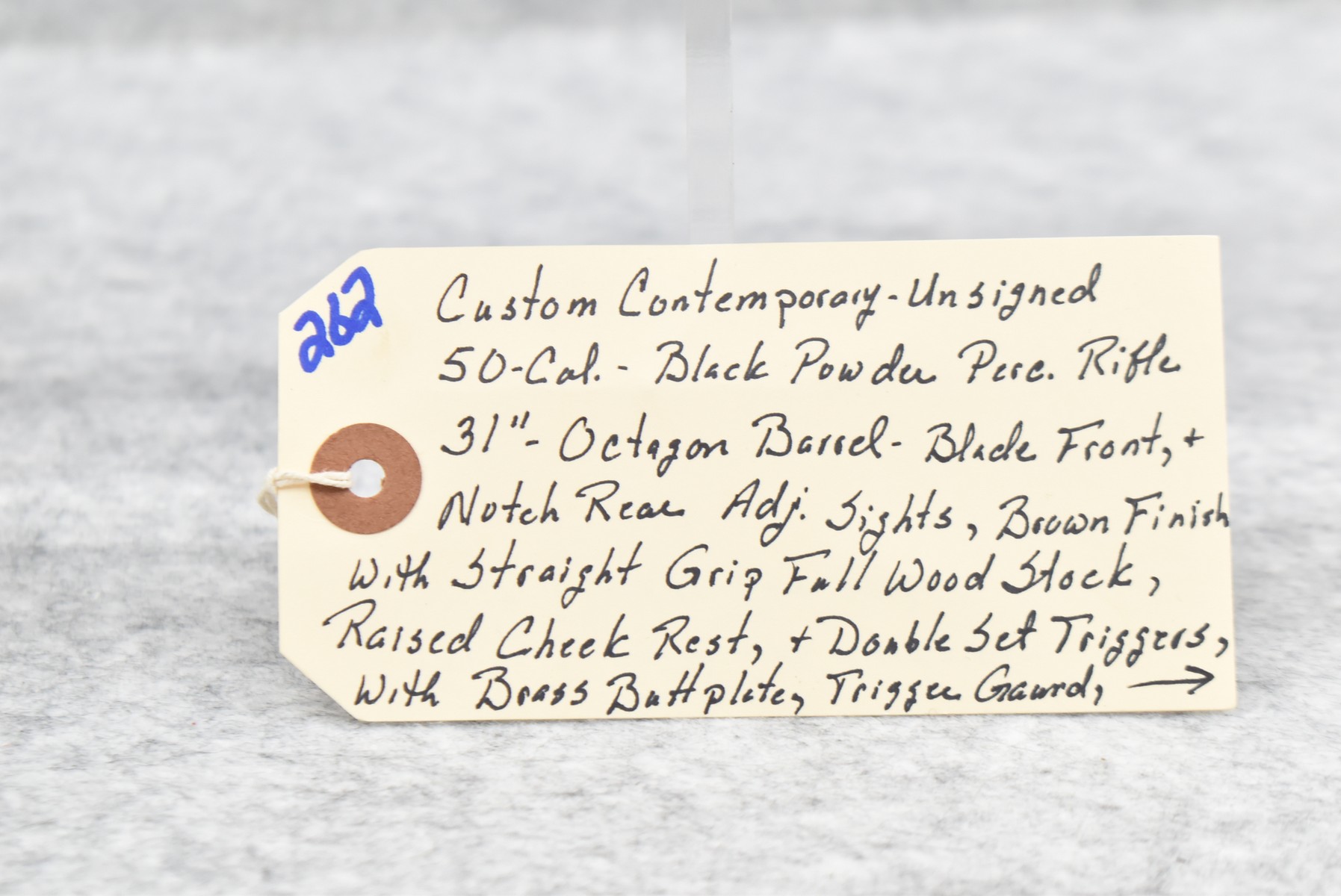 262. Unsigned Custom Contemporary 50 Cal. Percussion Black Powder Rifle – w/31” Octagon Barrel w/Blade Front & Notch Rear Adj. Sights – Brown Finish – w/Straight Grip Full Wood Stock w/Raised Cheek Piece w/Brass Butt Plate & Brass Furniture – w/Double Set Triggers – w/Wooden Ram Rod