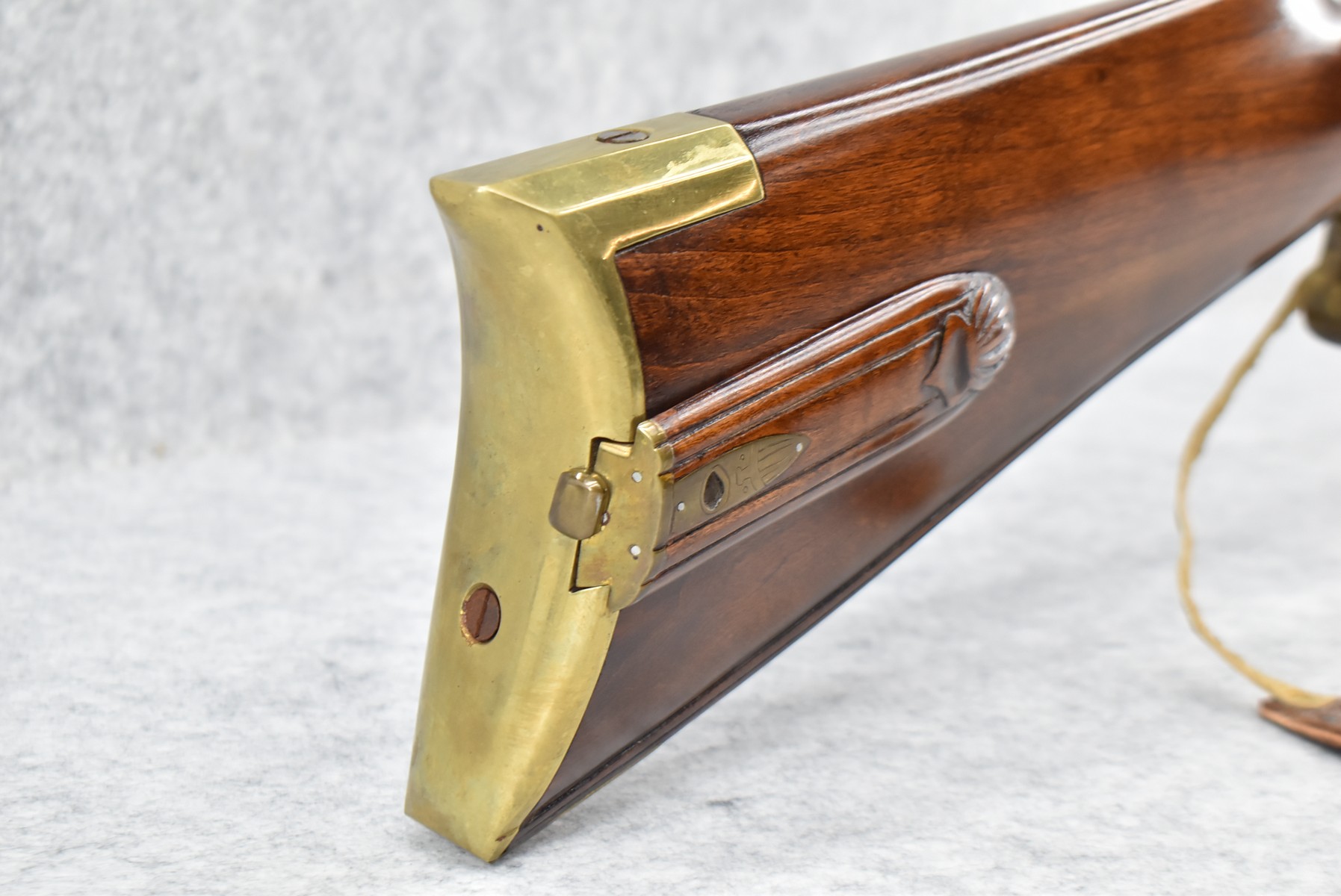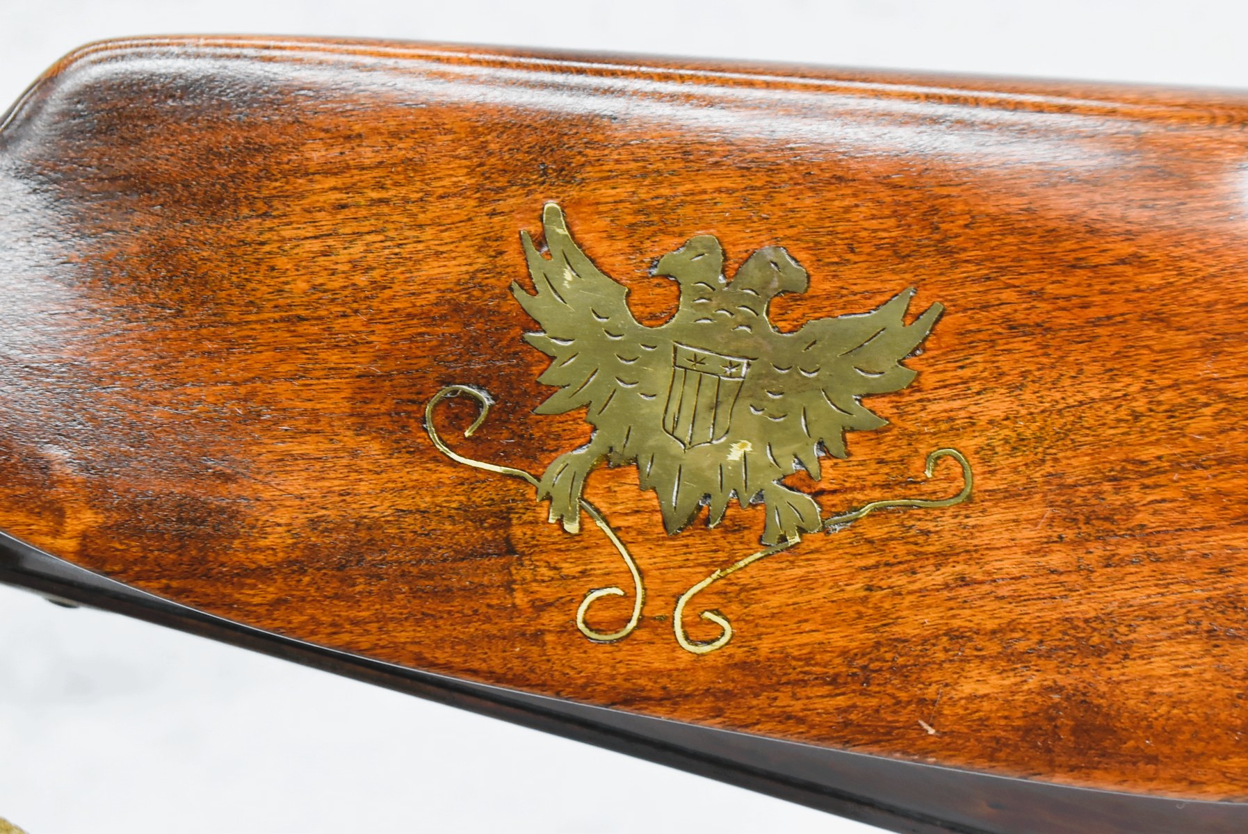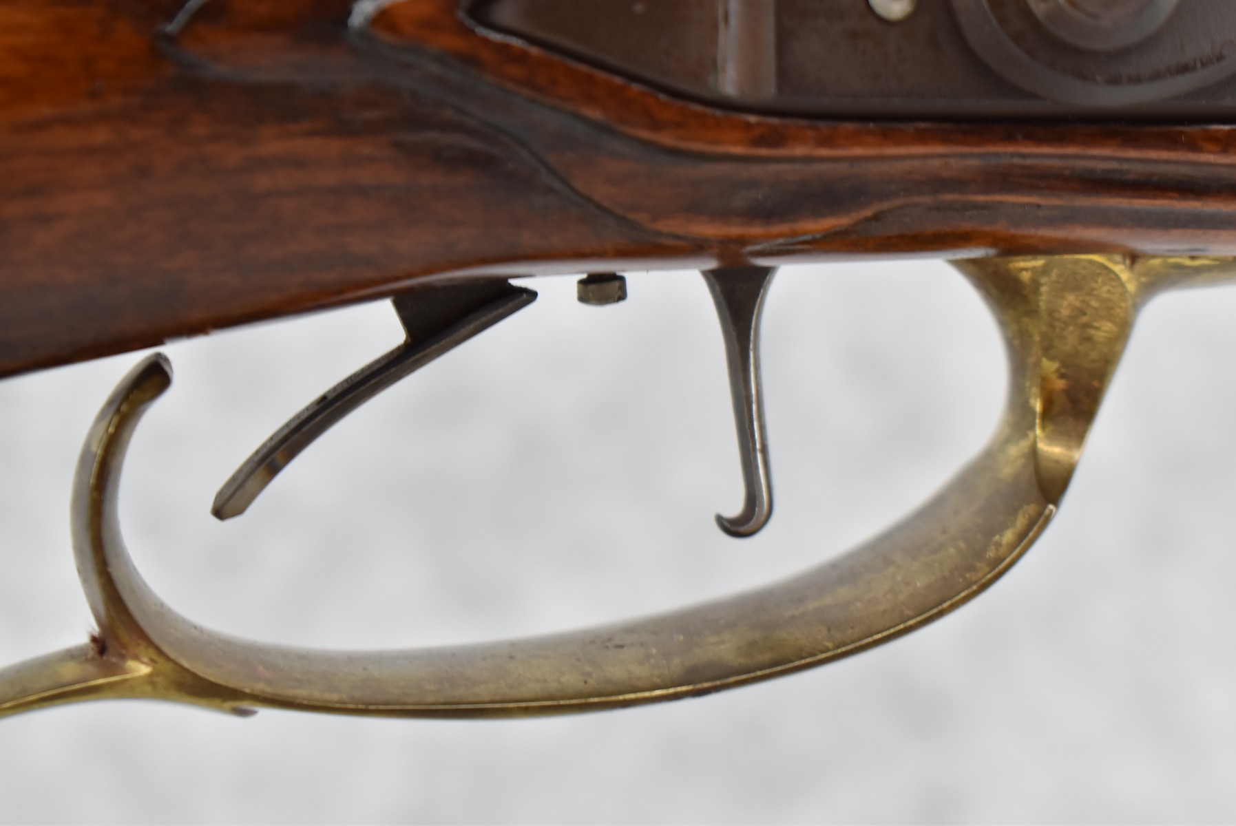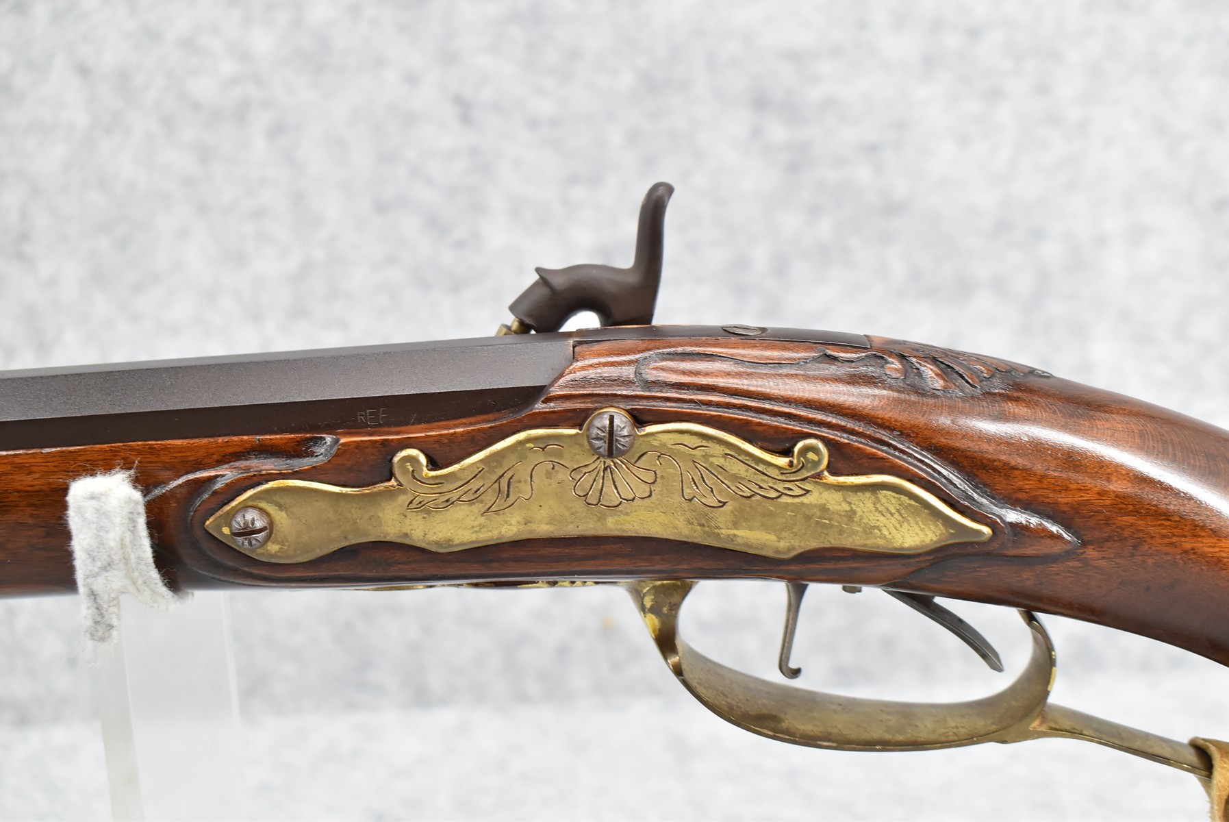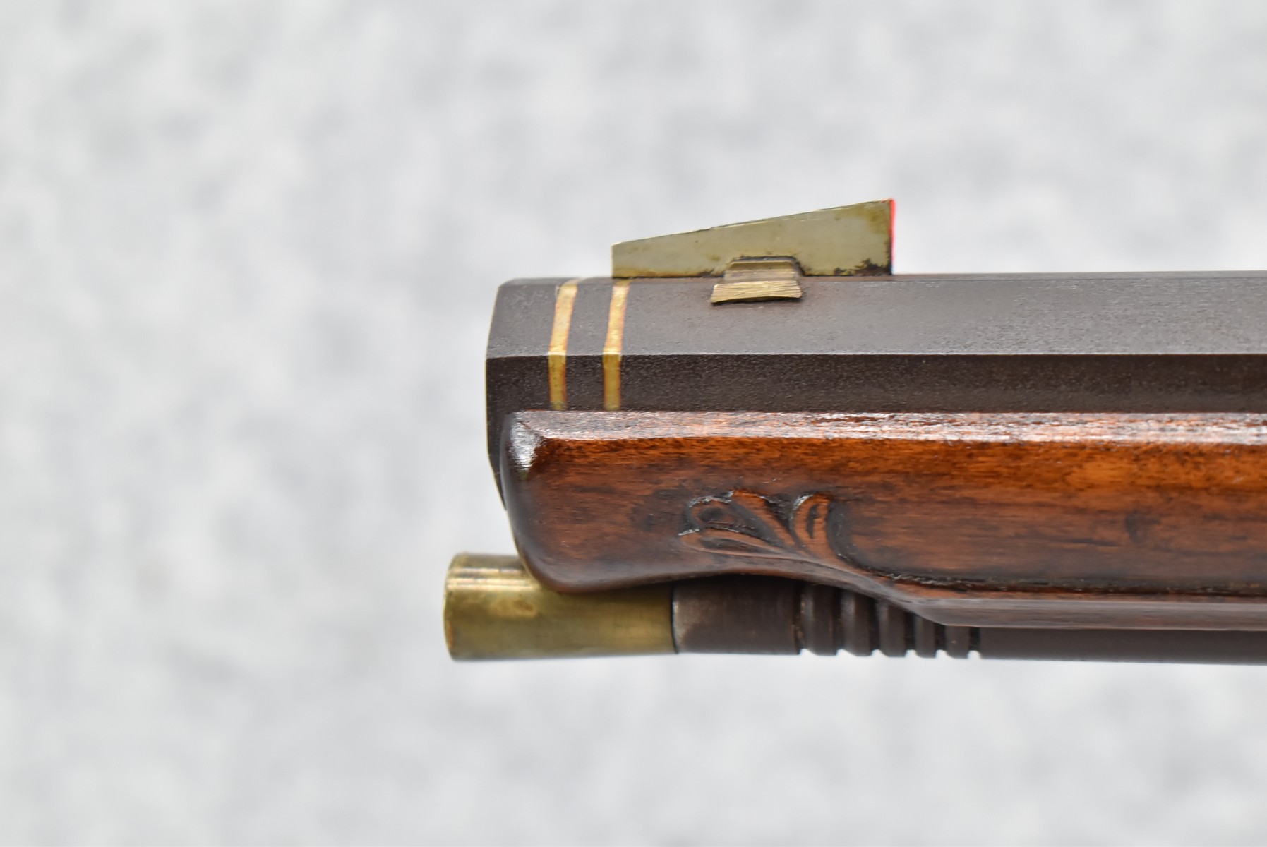 262. Unsigned Custom Contemporary 50 Cal. Percussion Black Powder Rifle – w/31” Octagon Barrel w/Blade Front & Notch Rear Adj. Sights – Brown Finish – w/Straight Grip Full Wood Stock w/Raised Cheek Piece w/Brass Butt Plate & Brass Furniture – w/Double Set Triggers – w/Wooden Ram Rod