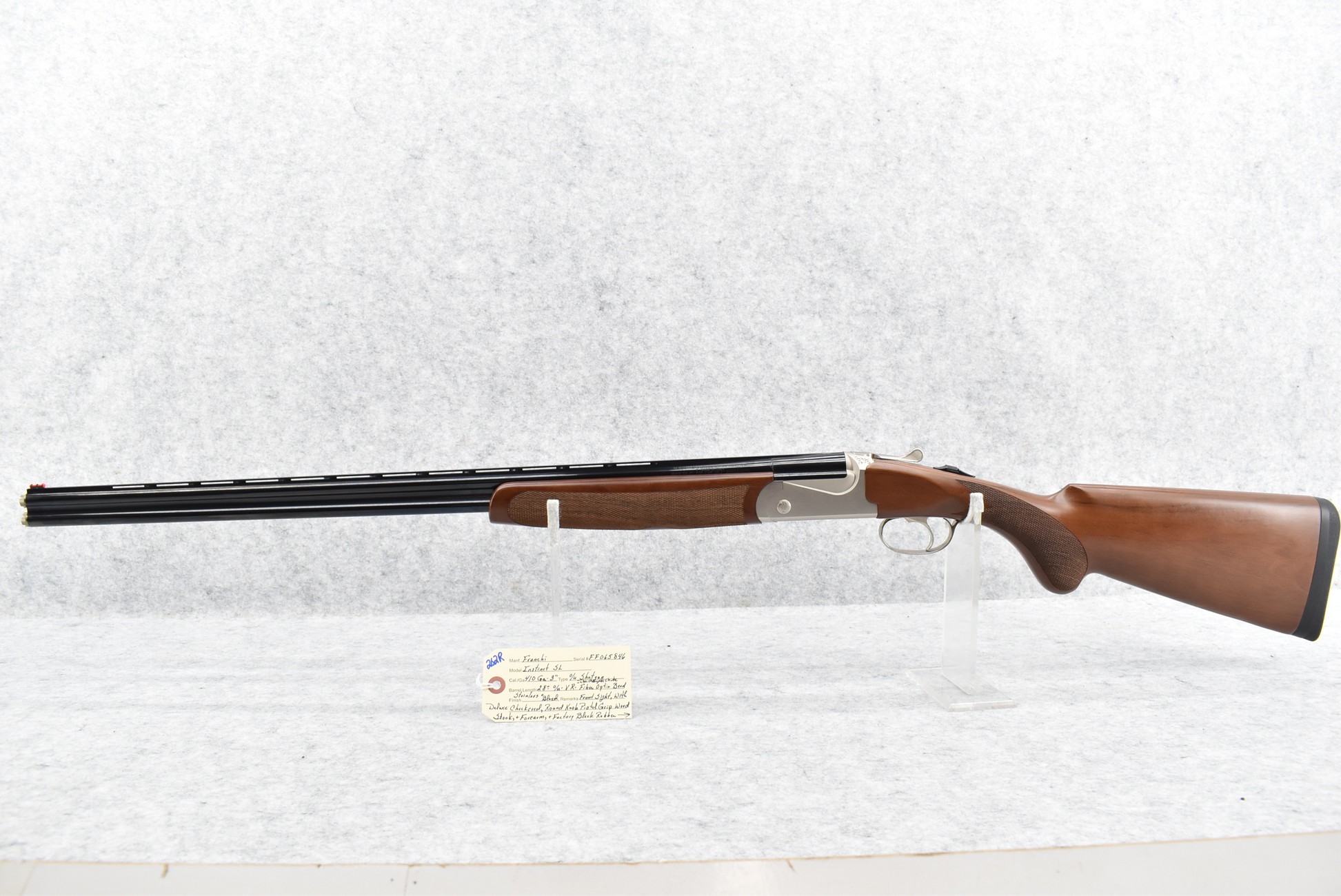 262R. Franchi – Mod. Instinct SL – 410ga. 3” Over-Under Shotgun – w/28” Vent-Rib Barrels w/Interchangeable Chokes & Fiber Optic Bead Sight – Stainless & Blued Finish – w/Deluxe Checkered Round Knob Pistol Grip Wood Stocks w/Factory Butt Pad – As New w/Factory Hard Case, Chokes, Manual & Accessories