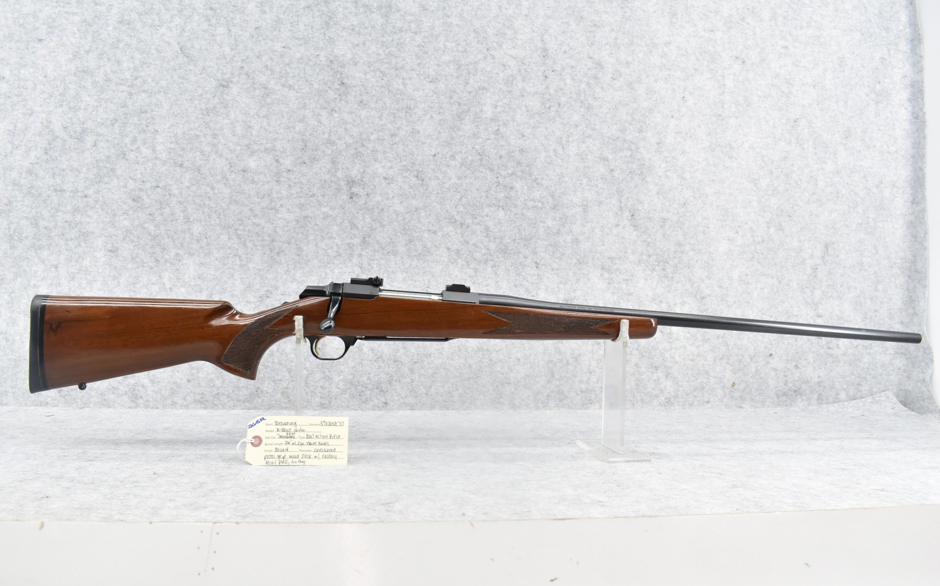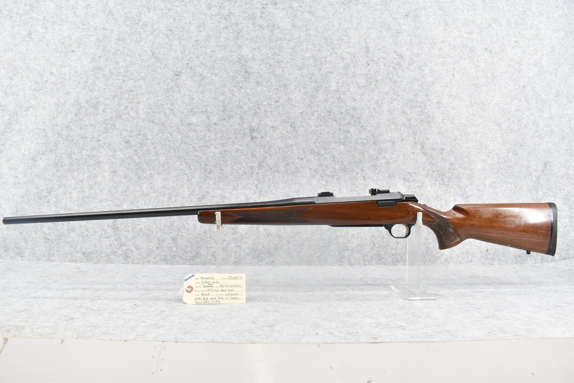 265R. Browning – Mod. A-Bolt Hunter – 7mm Rem. Mag. Cal. Bolt Action Rifle – w/26” Barrel – Blued Finish – w/Checkered Pistol Grip Wood Stock w/Factory Recoil Pad – No Mag – w/2pc. Mount Bases