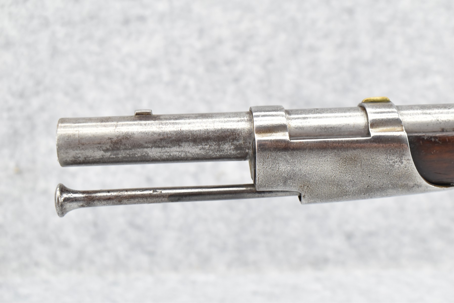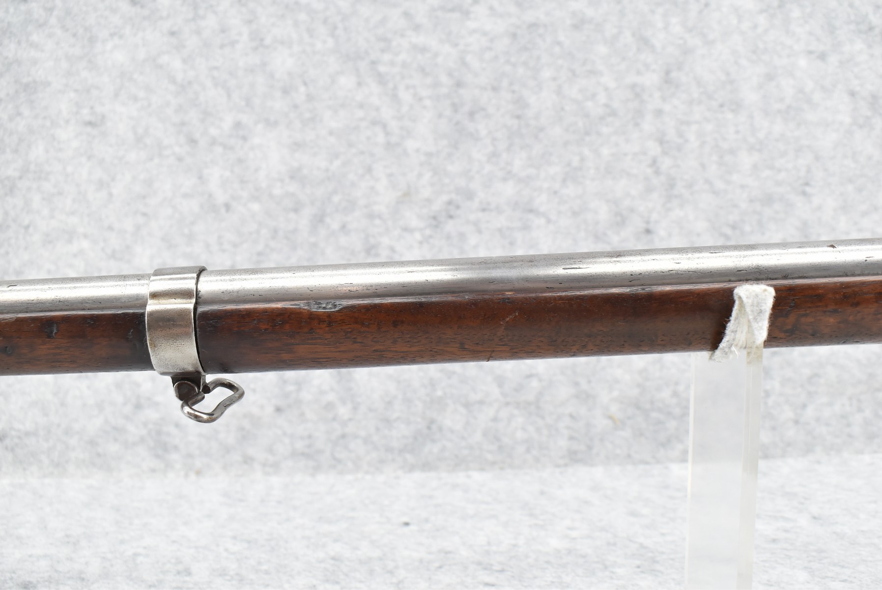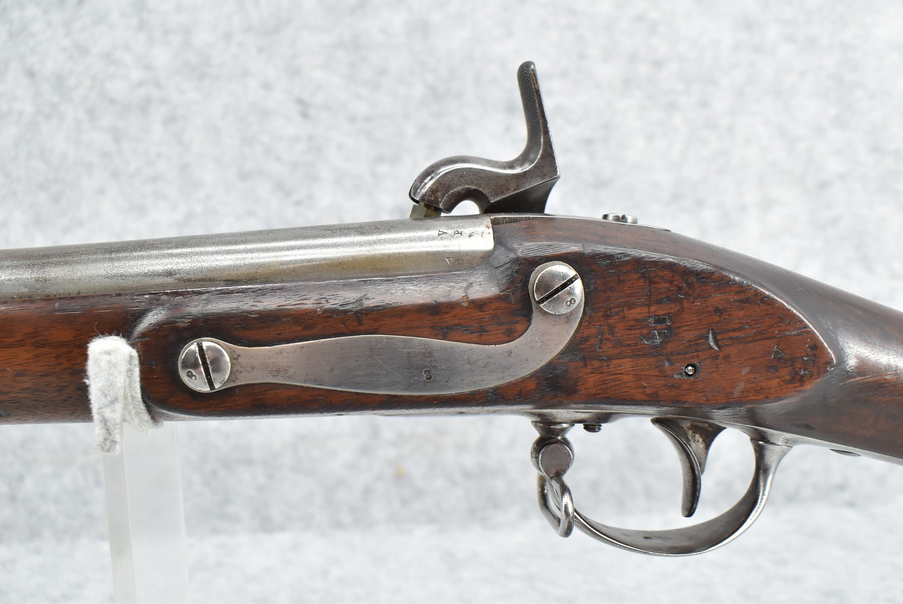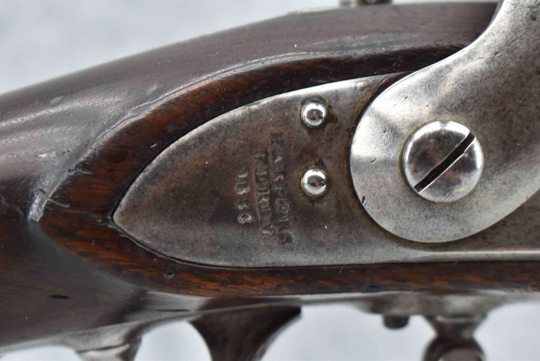 266. Harpers Ferry – Mod. 1816 – 69 Cal. Cone in Barrel Conversion Percussion Black Powder Rifle – w/42” Barrel w/Blade Front Sight – Gray Finish – w/Straight Grip Full Wood Stock w/Metal Butt Plate & 3 Barrel Bands – w/Sling Loops – w/Cleaning Rod – Both Barrel & Lock Dated 1836
