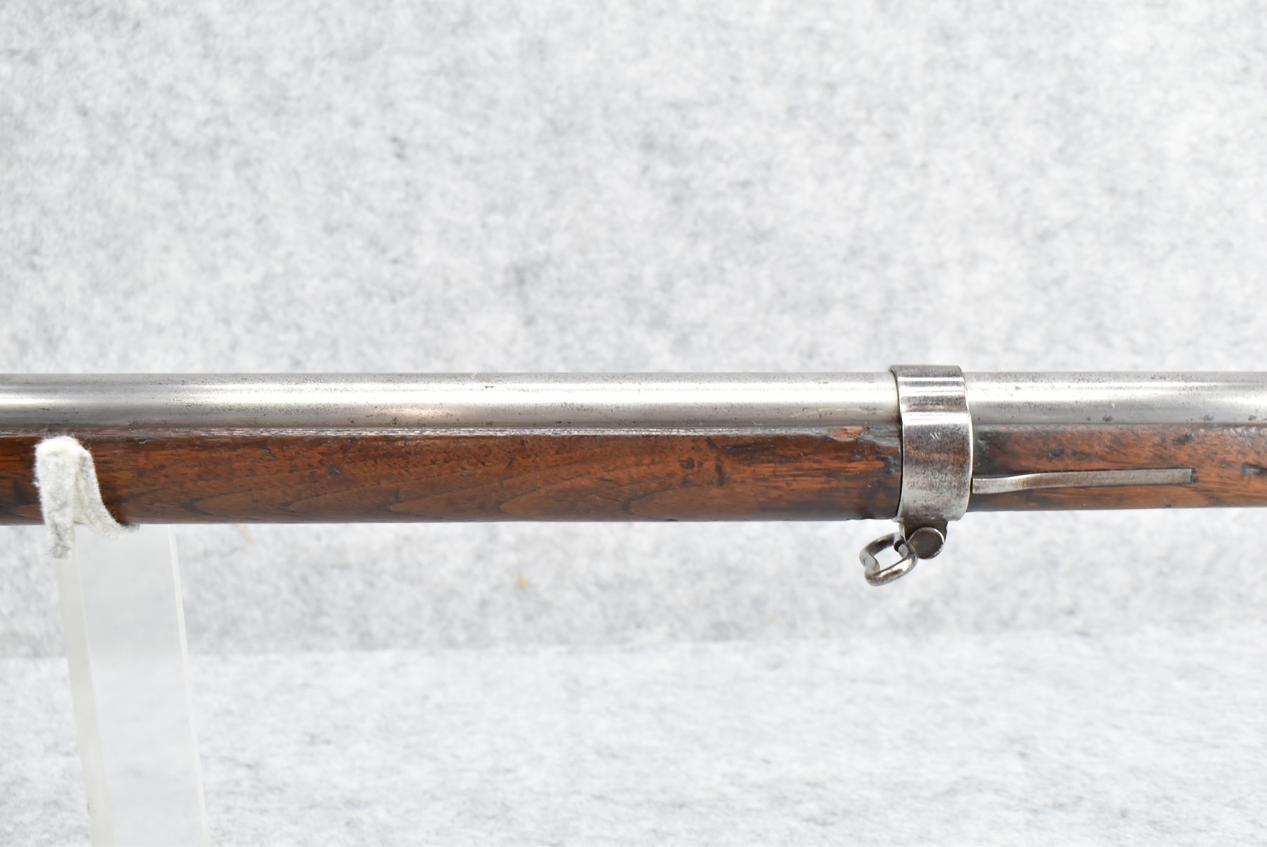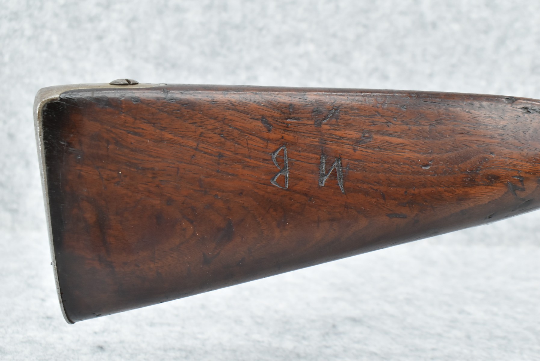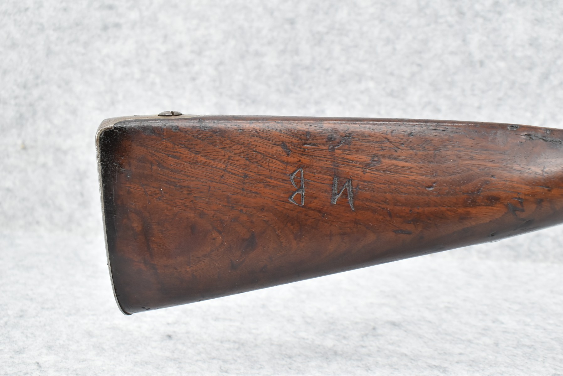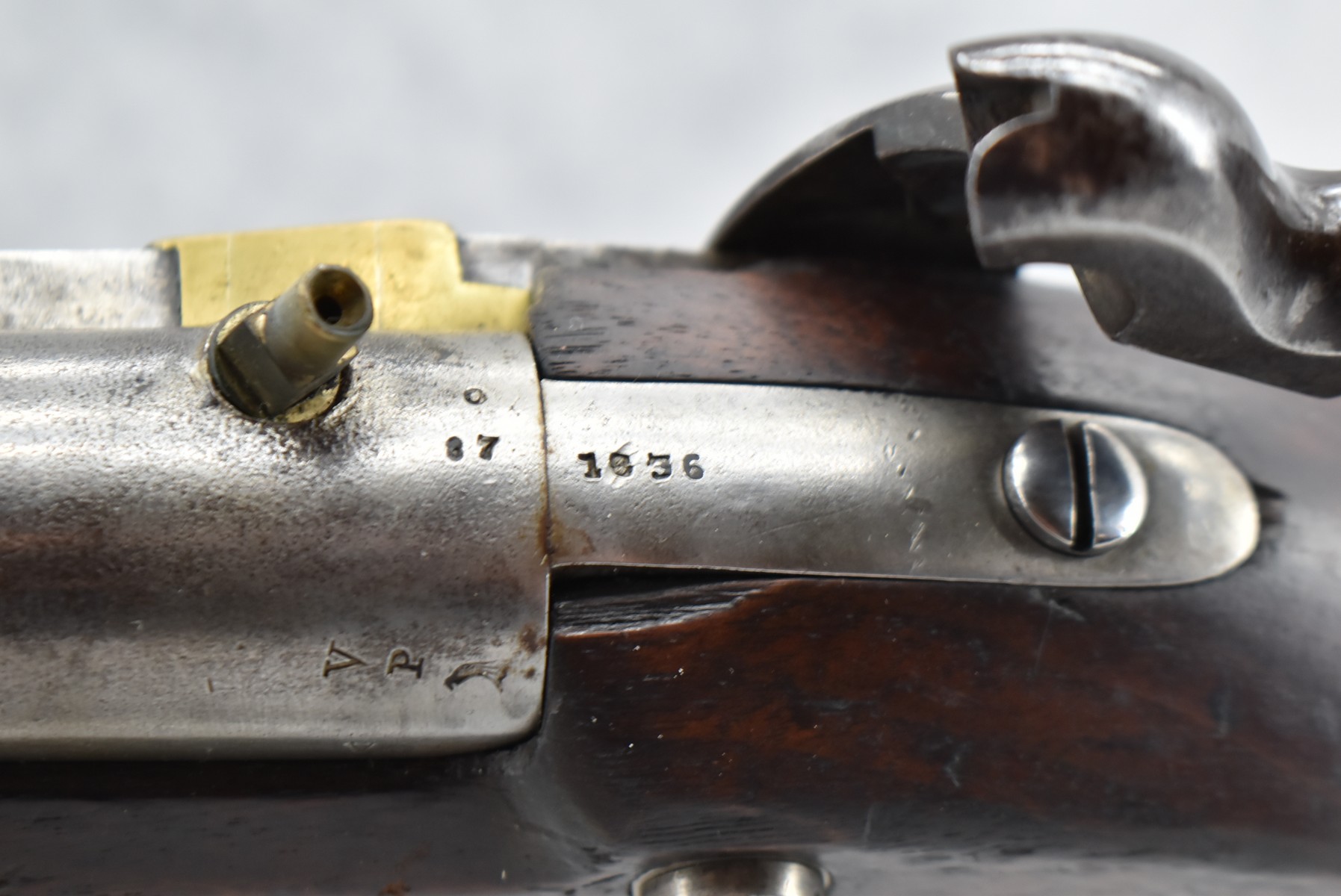 266. Harpers Ferry – Mod. 1816 – 69 Cal. Cone in Barrel Conversion Percussion Black Powder Rifle – w/42” Barrel w/Blade Front Sight – Gray Finish – w/Straight Grip Full Wood Stock w/Metal Butt Plate & 3 Barrel Bands – w/Sling Loops – w/Cleaning Rod – Both Barrel & Lock Dated 1836