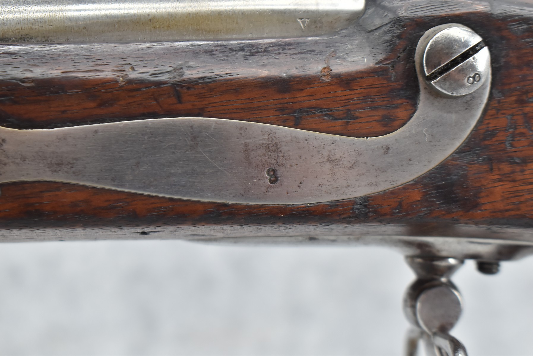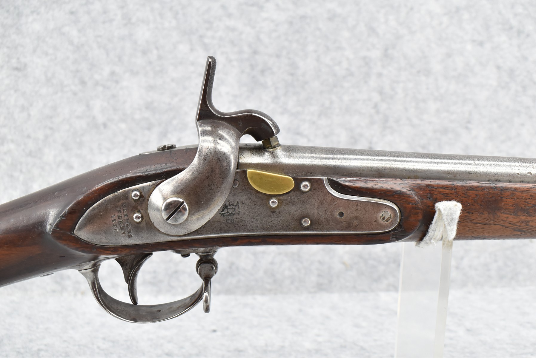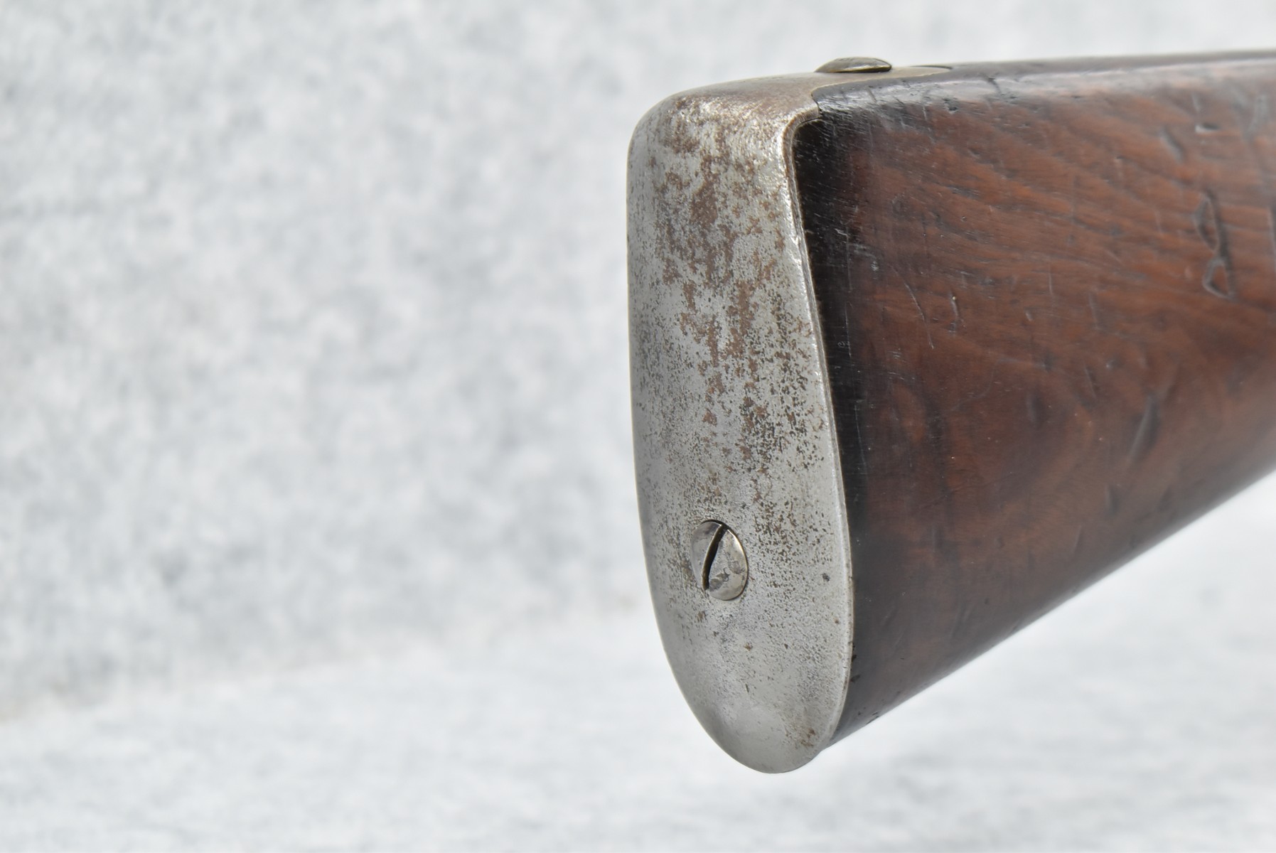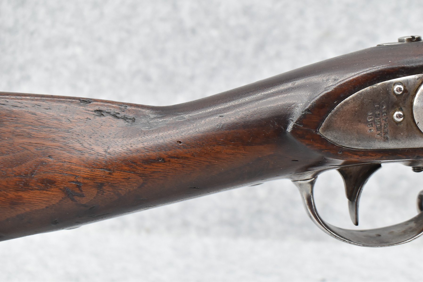 266. Harpers Ferry – Mod. 1816 – 69 Cal. Cone in Barrel Conversion Percussion Black Powder Rifle – w/42” Barrel w/Blade Front Sight – Gray Finish – w/Straight Grip Full Wood Stock w/Metal Butt Plate & 3 Barrel Bands – w/Sling Loops – w/Cleaning Rod – Both Barrel & Lock Dated 1836
