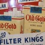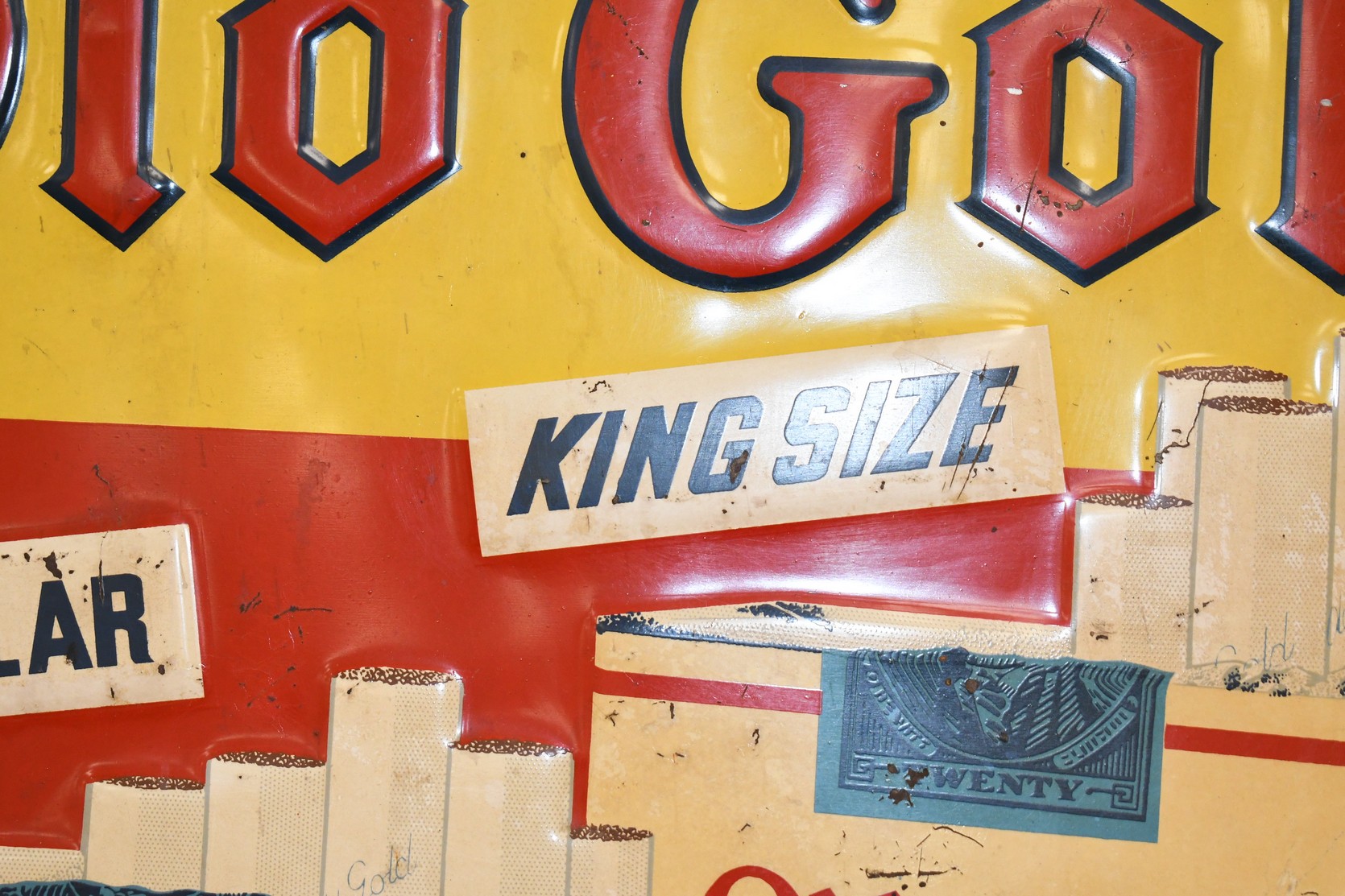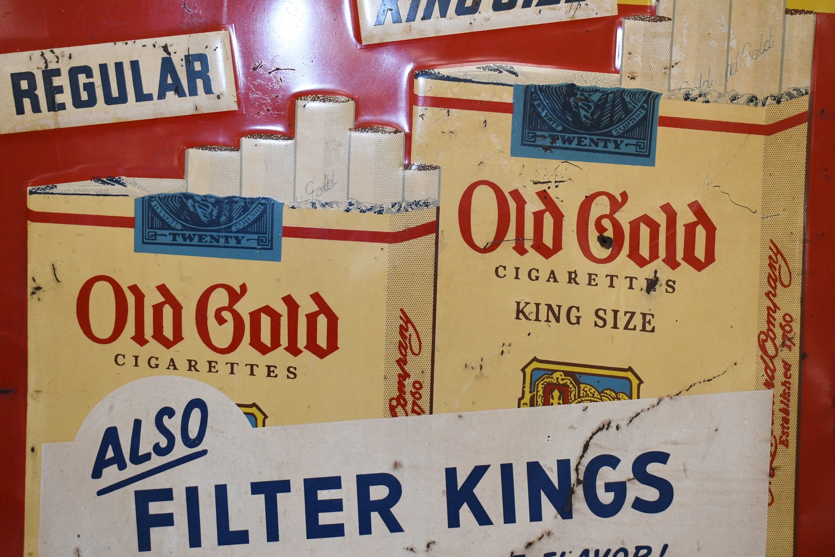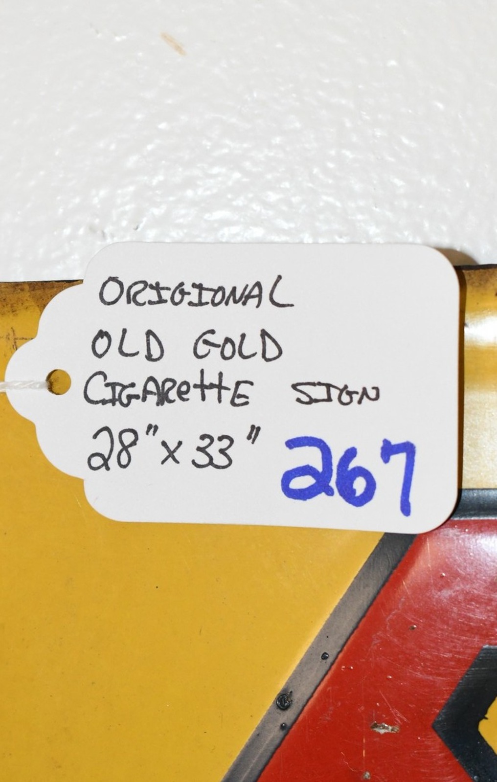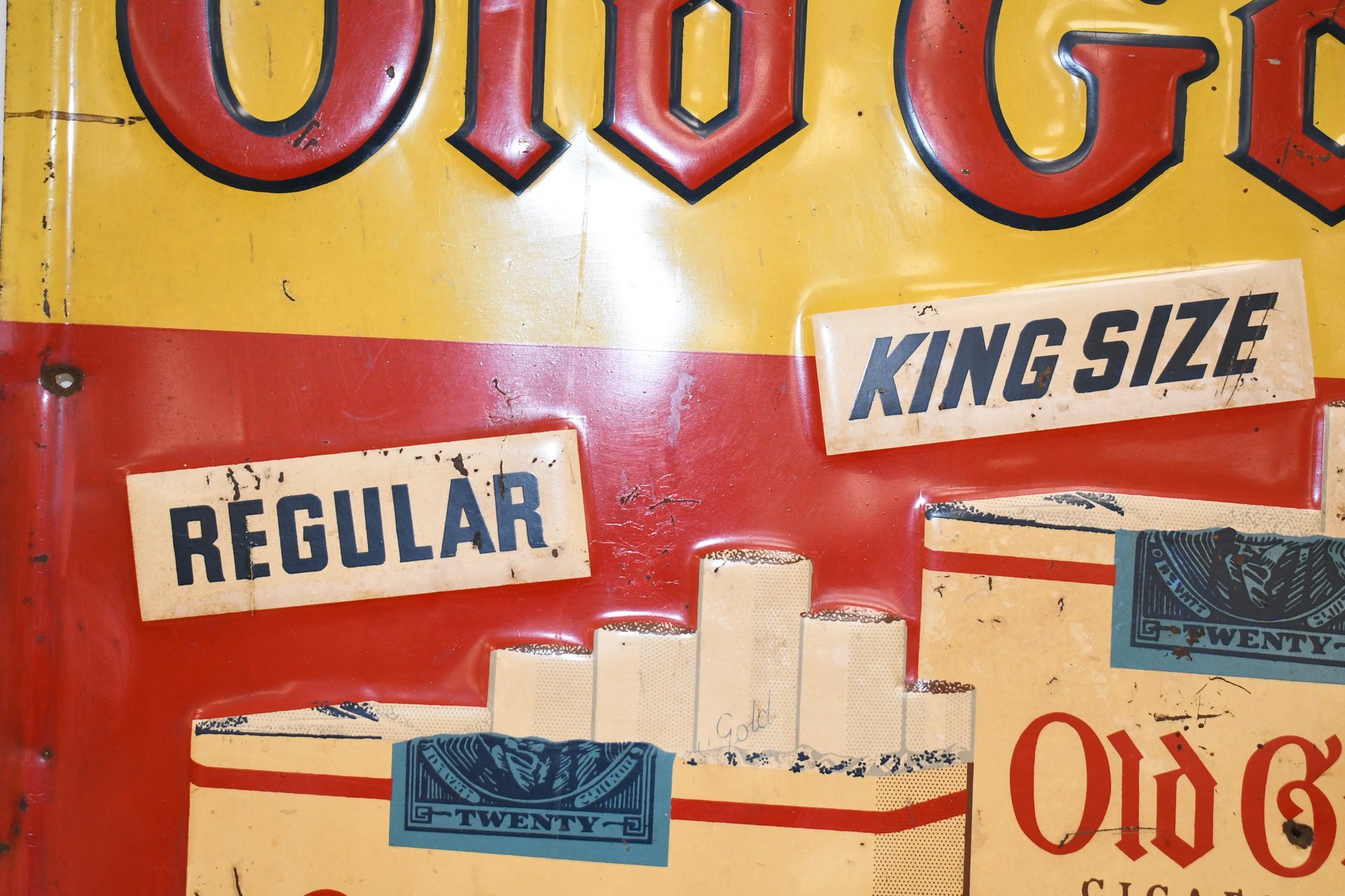 267.   Original Old Gold Cigarette Tin Sign w/Raised Lettering – “For a Treat… Smoke Old Gold”