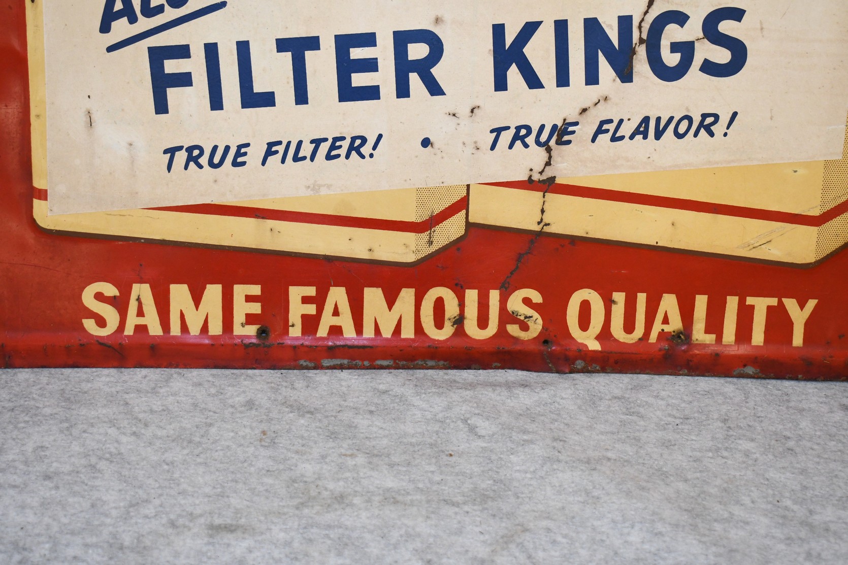 267.   Original Old Gold Cigarette Tin Sign w/Raised Lettering – “For a Treat… Smoke Old Gold” – 28” Wide x 33” High