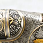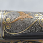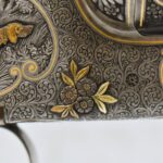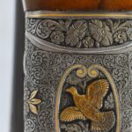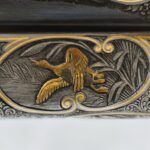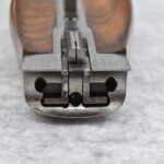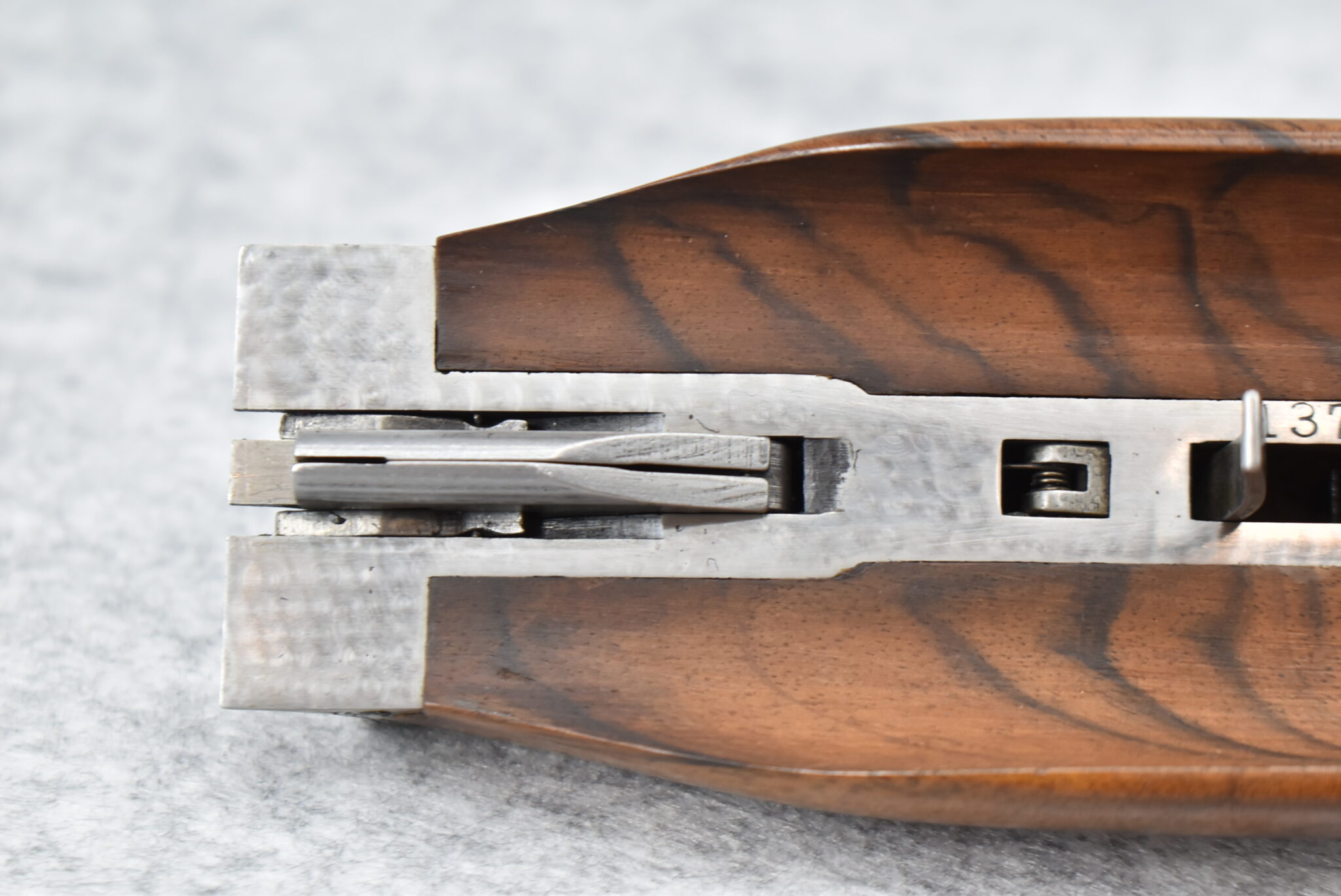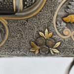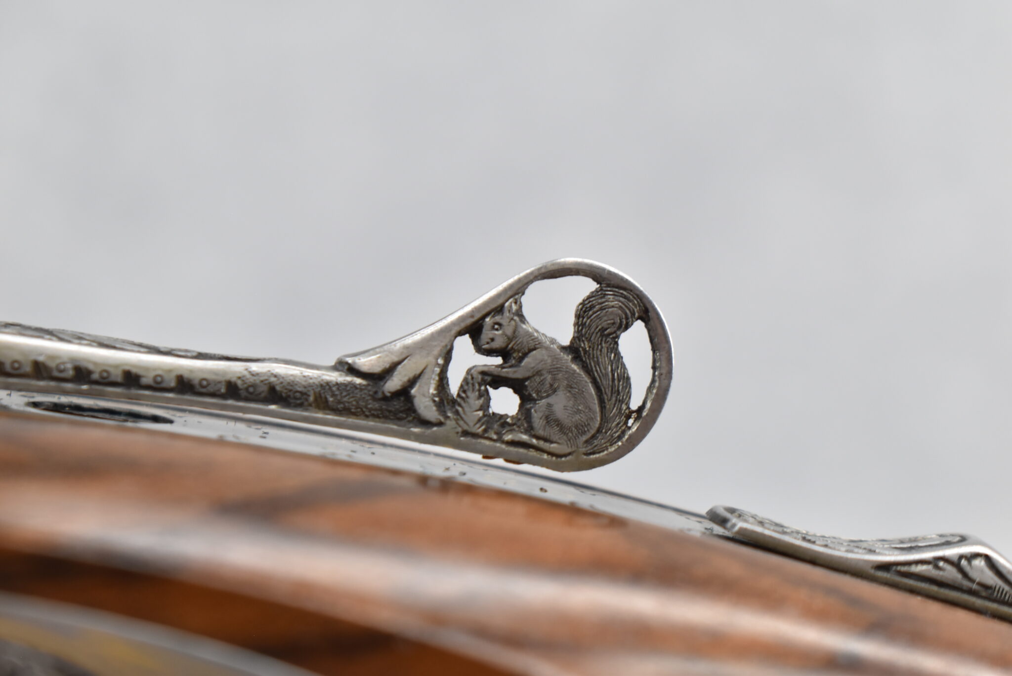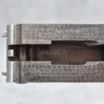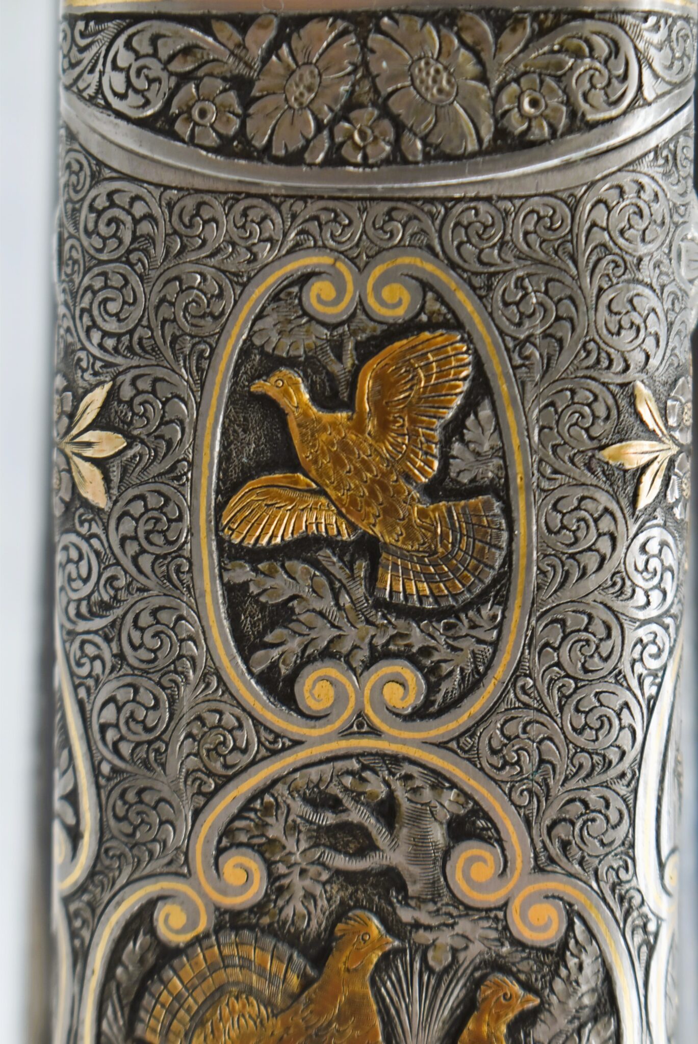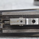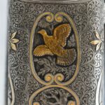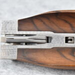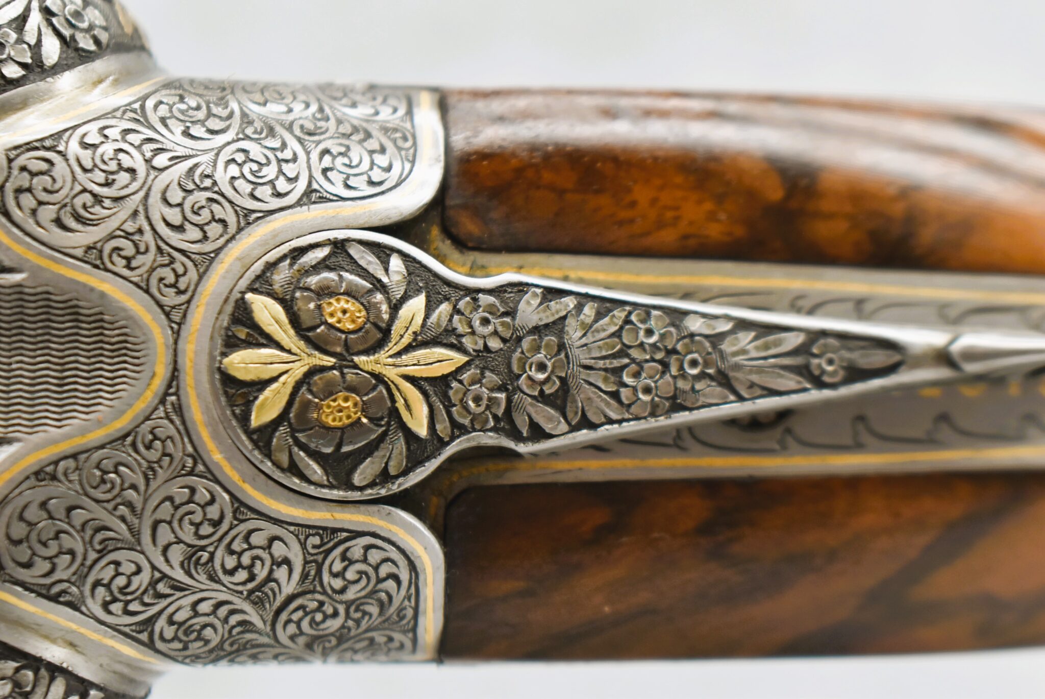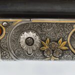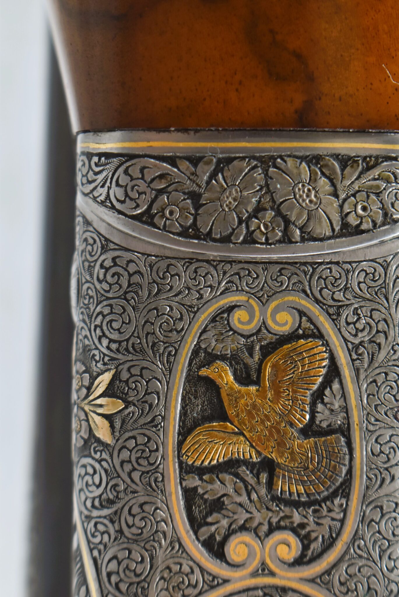 26R. Unbelievable! Custom Signed & Engraved Angelo Bee Winchester 21 Skeet Grade 12ga. Side By Side Shotgun – Serial Number 13786 – Gun is Fitted w/The Original Set of 26” Solid Rib, WS-1 & WS-2 Choked Winchester Barrels w/Dual Ivory Bead Sights – Barrels Retain a Strong Amount of Blued Finish, While the Receiver is a Silver Finish – Gun Has Been Custom Stocked by Top American Master Stock Maker Michael Yee w/A Highly Figured Fine Checkered Straight Grip Select Walnut Butt Stock w/Pachmayr Recoil Pad & Matching Highly Figured, Fine Checkered Beavertail Forearm – Masterfully Engraved & Signed by Renowned Master Engraver Angelo Bee w/100% Coverage of Fine Scroll Work & Isolated Bird Dog & Waterfowl Scene Medallions on the Right, Left & Underside of Receiver – Between All Sides of the Receiver There Are 6 Gold Wire Inlay Bordered Scene Medallions – The Breech & Muzzle Ends of the Barrels Are Also Intricately Engraved w/Fine Scrolling as Well as Their Own Gold Wire Inlaid Bordered Waterfowl Scene Medallions – Bee Was Even Able to Squeeze in a Masterfully Engraved Gold Inlay Rabbit w/Scroll Work on the Long Tang Trigger Guard – The Rear of the Break Open Lever is Relief Engraved w/A Squirrel – In Total, There Are 11 Gold Bordered Scene Medallions on This Gun – Angelo Bee’s Signature Can Be Seen on the Left Side of the Receiver in Front of The Bird Dogs Hind Leg! All the Animal Inlays Were Done w/Yellow, Rose & White Gold – w/Single Selective Trigger – Gun’s LOP is 14 ½” – Minimum Wall Thickness .034 on the Right Barrel, .035 on the Left Barrel – Gun Comes in a Leather Take Down Case w/Maroon Felt Interior & Canvas Zip-Up Outer w/2pc. Cleaning Rod, Brush, Swab, Oiler, Set of Winchester Metal Snap Cap, Turn Screw Handle & Winchester Label – This Gun is Without a Doubt a Museum Quality, Masterful Display of Angelo Bee’s Skill & Artistry & Would Complement, If Not be the Centerpiece of Anyone’s Collection!!